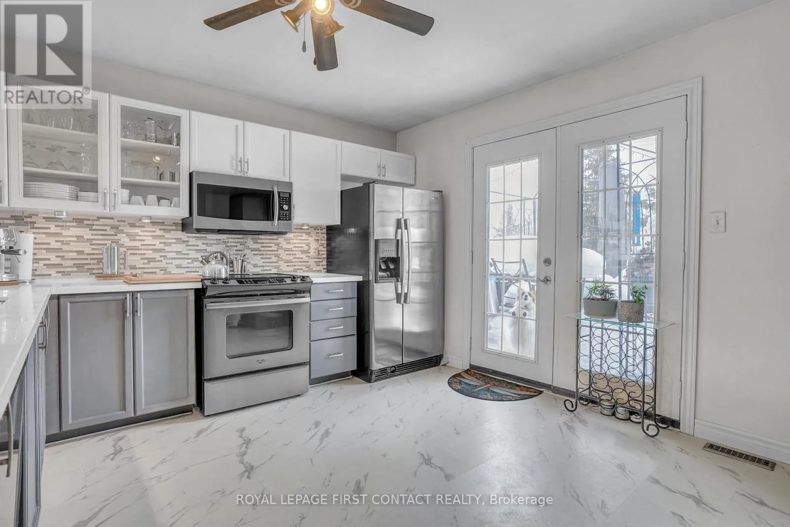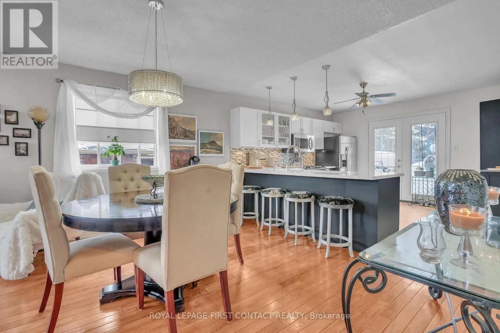 Cross Streets: Georgian Drive / Penetanguishene. ** Directions: Georgian Drive To Larkin To Hewitt Place. 1897 sqft beautifully maintained home in a sought-after north end neighbourhood close to schools, amenities, and convenient commuter routes. This carpet free home features hardwood flooring in the main living area and laminate throughout the bedrooms and lower level. The main floor showcases a striking stone accent wall and elegant coffered ceiling, creating a warm and inviting atmosphere. The kitchen offers an oversized quartz countertop with bar seating, stainless steel fridge and stove, over the range convection microwave, and dishwasher. French doors lead to the expanded deck with black aluminum railings, glass panels, and low maintenance composite flooring, ideal for entertaining or enjoying quiet evenings outdoors. The bathrooms feature porcelain flooring and clean, functional finishes. The front foyer makes a great first impression with natural limestone flooring and an upgraded window and door insert. Updated light fixtures and newer door hardware add a fresh touch throughout the home. The fully finished lower level includes a self-contained two bedroom in law-suite with a shared entry, complete with its own kitchen featuring an island, stove, fridge, dishwasher, and a full bathroom. Shared laundry. Major updates include a new roof in 2017, furnace in 2019, and driveway in 2020 with parking for four cars plus two in the garage. Additional features include central air, central vacuum, garage door openers, a newer water softener and reverse osmosis system. Electric fireplaces on both levels. The property is fully landscaped and fully fenced, with mature trees and a perennial gardens, creating a private and peaceful outdoor setting. Ideally located close to Georgian College and RVH Health Centre, on a quiet cul-the-sac, with easy access to two major hwy for commuting. Enjoy nearby golf courses, ski resorts, local wineries, and year round recreational opportunities. (id:27476)