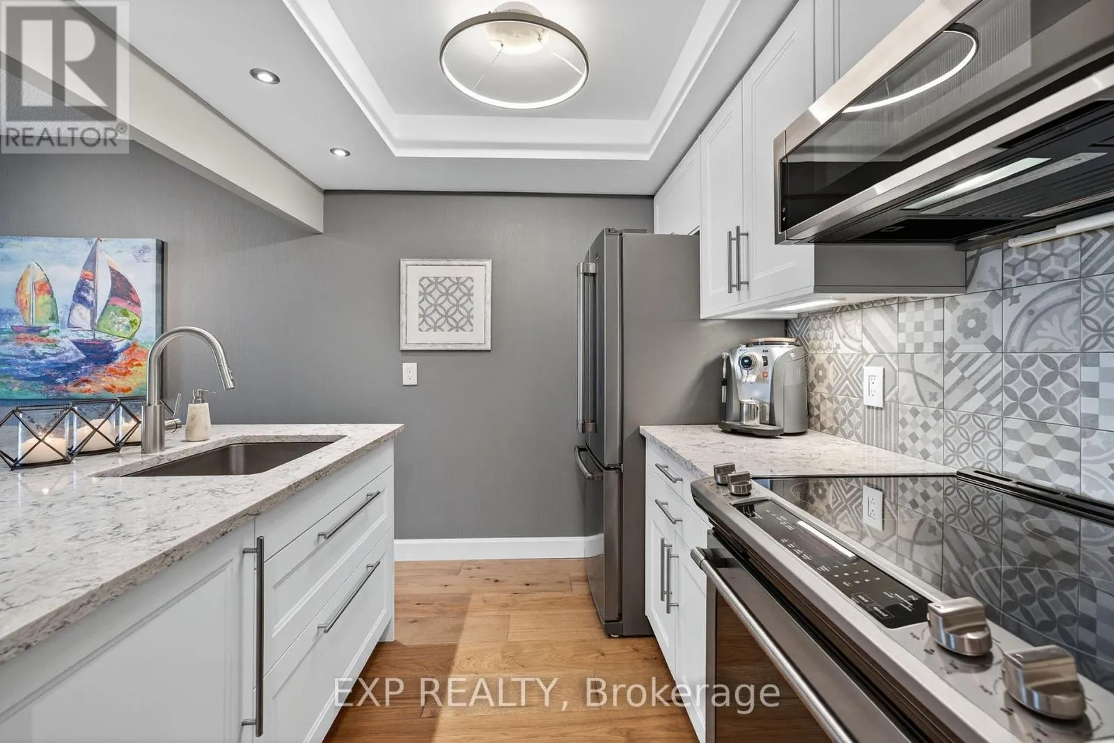 Cross Streets: Victoria St. ** Directions: Bradford or Lakeshore to Victoria to Ellen. This is truly a lifestyle! Custom Design and Stunning Views. Make your dream of living on the waterfront a reality. The Regatta and the Marina Bay towers are established on the largest property right across from Barrie's Centennial Beach. This gated enclave is offering plenty of green space with beautifully landscaped grounds and an abundance of PARKING for your visitors, features that you will hardly find at any downtown condo buildings. FULLY RENOVATED unit with quality finishes and functionality, you will feel at home the moment you cross the door step! From the warmth and richness of its hickory wide plank flooring to the elegant "Silestone" quartz counter tops, you will enjoy the flow and feel of the space. All appliances are FULL SIZE for your convenience and enjoyment. Be the witness of marvellous sunrises over Kempenfelt Bay and take advantage of the waterfront trails for an easy walk to downtown. Steps to GO Train and public transit. New Furnace & A/C installed in 2022. Napoleon fireplace 2021. All appliances replaced in 2020. Water and Hot Water are included in Condo fees. Low electricity bill (including heating/cooling) averaging approx. $75/month, no gas. Unit size is 640 sqft. (id:27476)