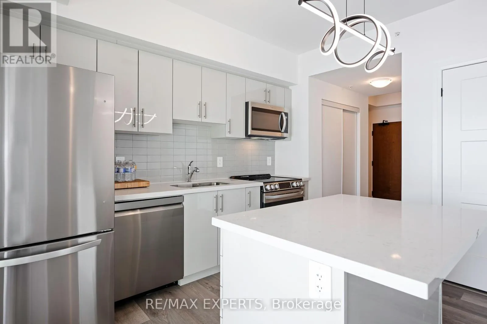 Cross Streets: Yonge & Mapleview. ** Directions: Google Maps. Welcome to elements condo development in one of the best areas in Barrie. Presenting stunning One bedroom plus den CORNER UNIT offering modern design and sophisticated living. This beautifully designed space features open-concept living with an abundance of natural light, high-end finishes, and stylish details throughout. The spacious living area seamlessly connects to a gourmet kitchen, complete with stainless steel appliances, sleek cabinetry, and a breakfast Island. Open concept living room with enough space for a dining room. The bright and airy bedroom offers double closet space and large windows while the versatile den is perfect for a home office, guest room. The condo includes elegant flooring, designer lighting, and a contemporary bathroom with spa like premium fixtures. Approximately 940 sqf of useful living space, other luxurious features include convenient in-suite laundry, Engineered wood flooring, and enclosed South facing solarium to enjoy through the entire year. One Parking spot included outside close to the building. Building amenities include water refill stations, cardio room, waterfall & fire pit areas, EV chargers and outdoor jogging track. Conveniently located just minutes away from shopping, dining, Barrie South Go, schools and so much more- making this condo the ideal place for anyone looking for comfort, style, and convenience. Must see! (id:27476)
