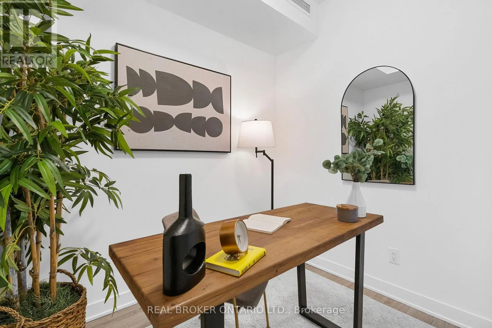 Yonge St/Big Bay Point/Ashford Drive Welcome to unit 206 at South District Condos, where space, functionality, and location come together in one of Barrie's most convenient & sought after communities! This bright and thoughtfully designed 1 bedroom + den condo offers a layout that truly works for real life. The fully enclosed den includes a full-sized closet and is large enough to comfortably accommodate a full-size/double bed, making it an amazing second bedroom option... a rare feature in today's condo market! Freshly painted throughout, this turn-key unit features over $18,000 in builder upgrades: vinyl flooring, smooth ceilings, roller blinds, quartz countertops & backsplash, and a kitchen island with quartz counter. The thoughtful finishes and upgrades make the space feel polished & contemporary. The primary bedroom is spacious, flooded with natural light and has a large walk-in closet providing ample storage! Floor-to-ceiling windows combined with a functional layout with zero wasted space make this approximately 730 square feet condo feel even bigger than it is. Enjoy your private balcony, upgraded with wood deck tiles, along with the added convenience of a locker and one underground parking space. The building offers impressive amenities, including a fully equipped fitness centre, co-working space, and a gorgeous rooftop terrace with BBQs, perfect for entertaining or unwinding during the summer months. Located minutes from Barrie South GO Station and Highway 400, this move-in ready condo is ideal for commuters. With shopping, restaurants, parks, golf courses, beaches, trails, and everyday conveniences all a short drive away, unit 206 at South District Condos offers the perfect balance of convenience and lifestyle. This is your opportunity to own in one of Barrie's most accessible neighbourhood - Book your private showing today! (id:27476)