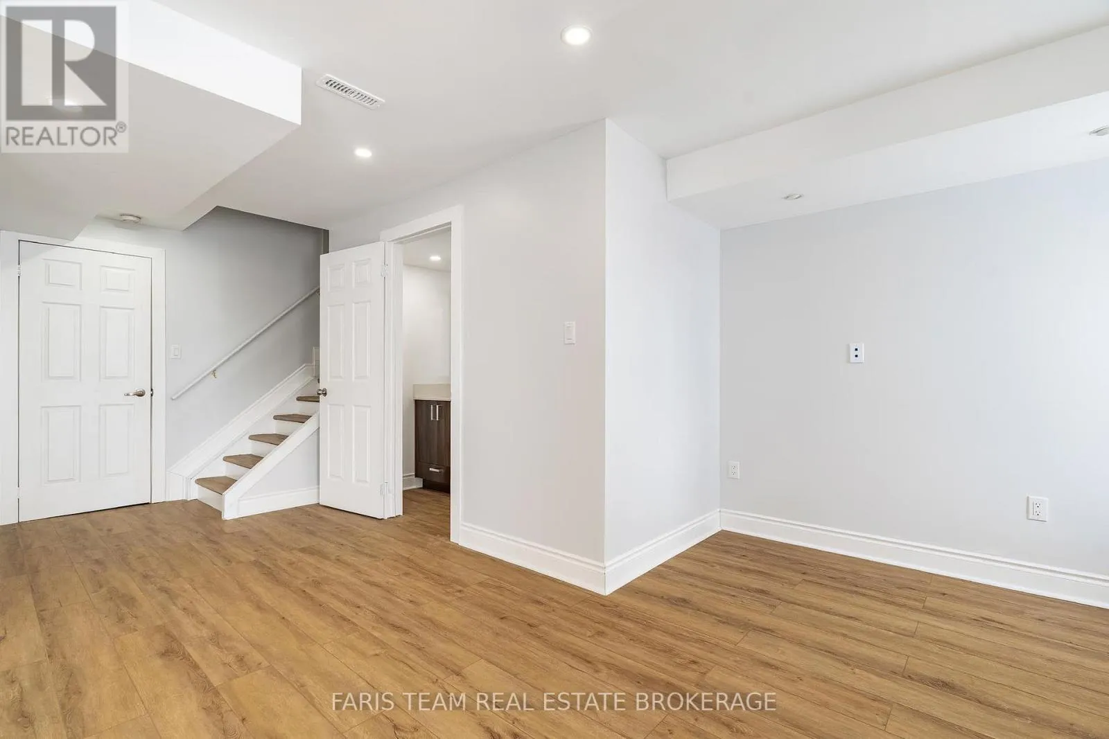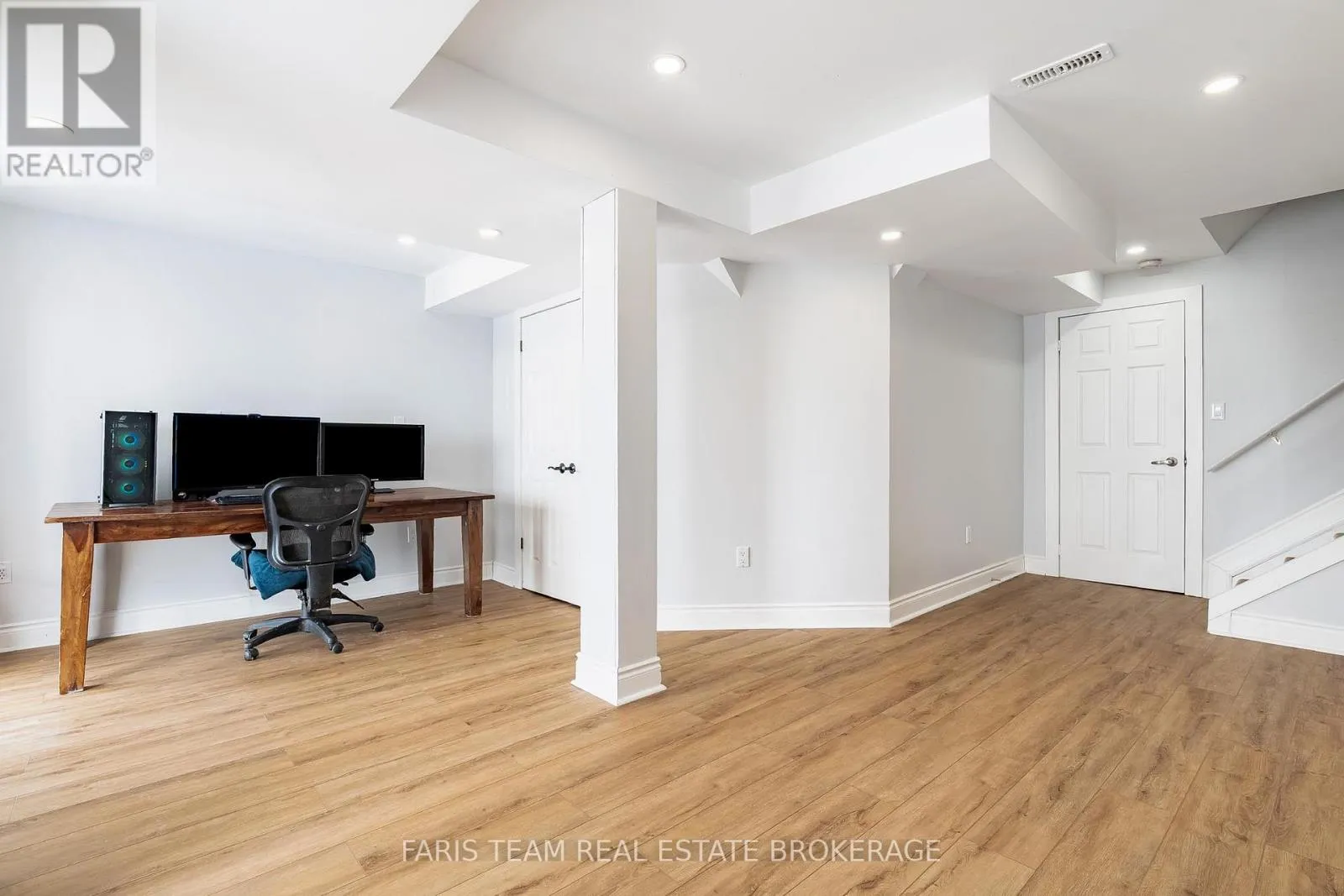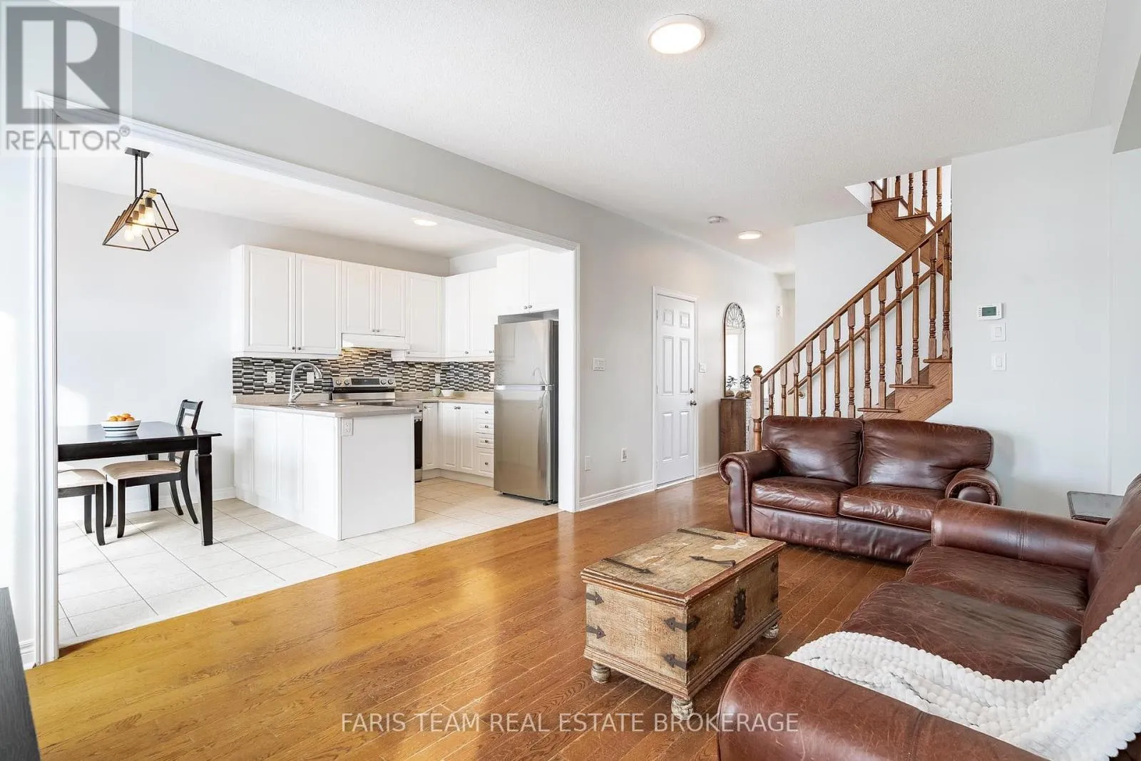 Hammer St W/Forsyth Cres Top 5 Reasons You Will Love This Home: 1) Beautifully maintained link home offering three well-sized bedrooms, ideally located in Barrie's sought-after North End with convenient highway access and peaceful views over open fields, all set on a private pie-shaped lot complete with a desirable walkout basement 2) Inside, the welcoming open-concept main level features rich hardwood floors that extend seamlessly through the living spaces, up the staircase, and across the landing, complemented by a walkout to a private main level balcony, ideal for indoor-outdoor living and quiet relaxation 3) Convenient inside entry from the garage thoughtfully paired with an additional two-piece bathroom for added functionality and everyday comfort 4) Well-appointed and generously sized bedrooms provide comfort and versatility for family or guests, including a relaxing primary retreat highlighted by a spa-inspired private ensuite featuring a sleek walk-in glass shower 5) Descent to the finished basement enhanced by a newly installed bathroom offering added living space and versatility, alongside a convenient walkout that leads directly to the backyard. 1,333 above grade sq.ft. plus a finished basement. (id:27476)