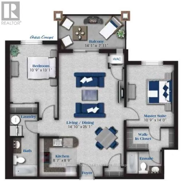 Cross Streets: Highway 400 & Dunlop St W. ** Directions: Tiffin St to Ferndale Dr S. Bright and well-appointed 2 bedroom, 2 bathroom condo in a highly desirable location. Featuring 9-foot ceilings and a functional open-concept layout that offers comfortable and practical living.The kitchen includes stainless steel appliances, granite countertops, a modern backsplash, and plenty of cabinetry for storage. Step out onto the spacious balcony backing onto mature trees and Bear Creek Eco-Park, creating a natural setting to relax or entertain.The primary bedroom features a large walk-in closet and a private 4-piece ensuite. Additional highlights include in-suite laundry, two parking spaces, and a dedicated storage locker for added convenience.Just minutes to the waterfront and Main Street, where you can enjoy local restaurants, cafés, shops, and scenic trails. Quick access to Hwy 400 and Hwy 27 makes commuting easy.Gas BBQ permitted. (id:27476)