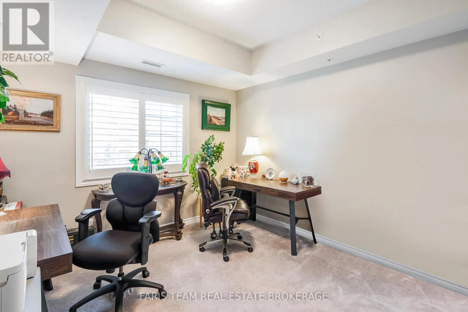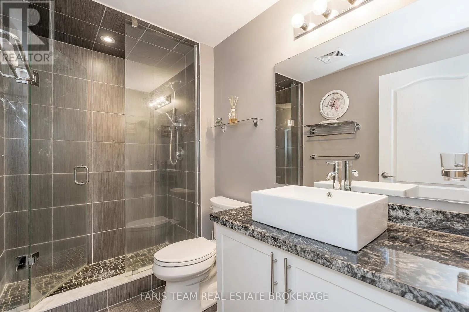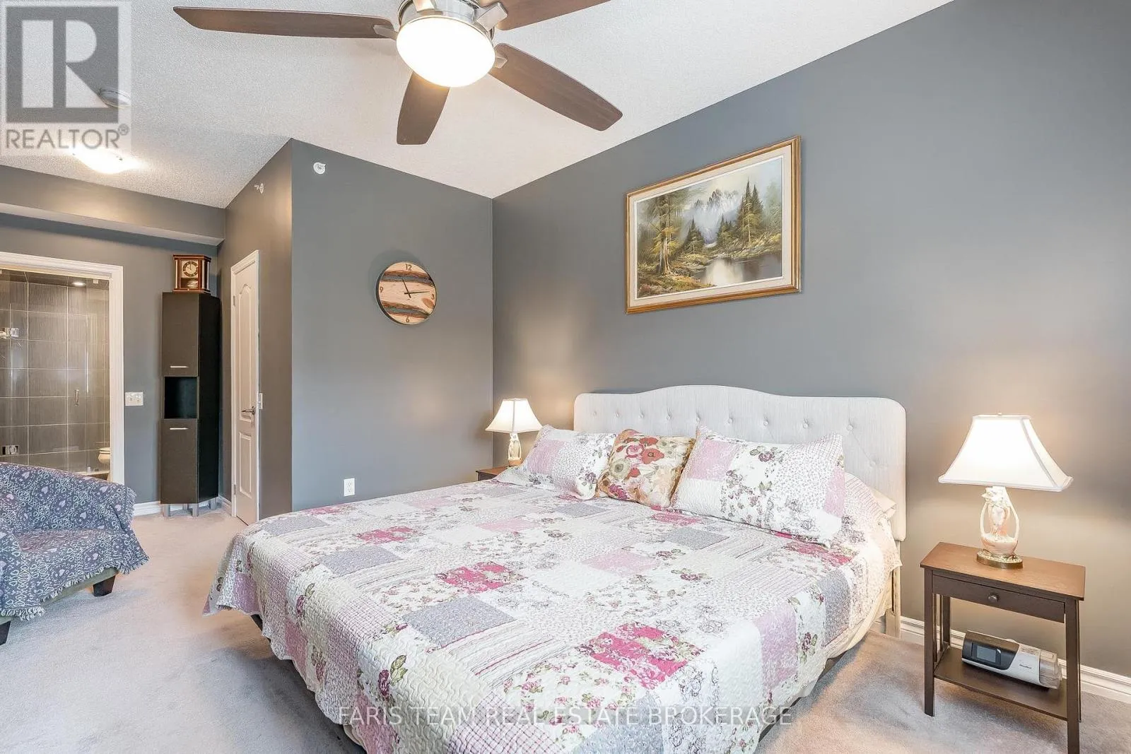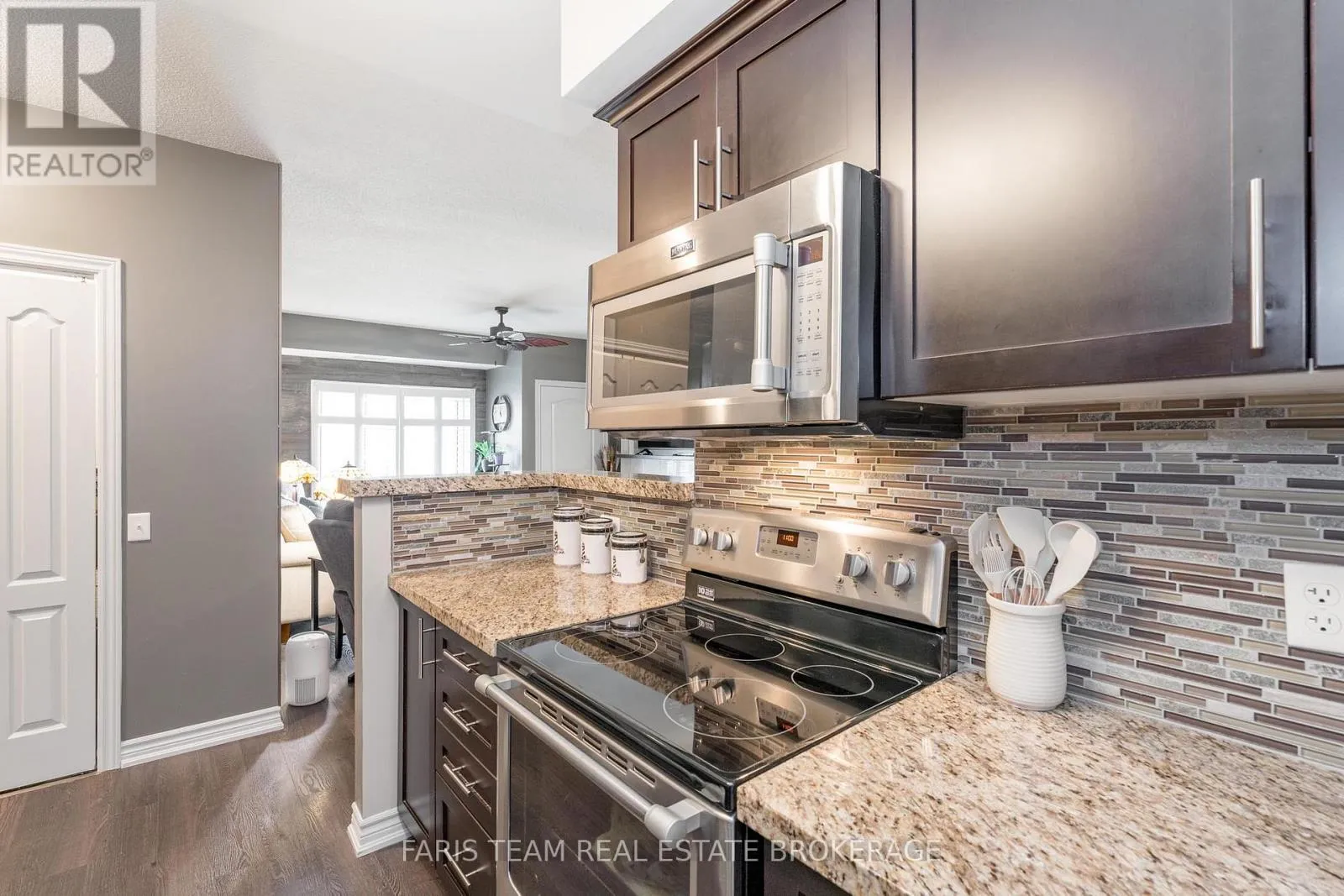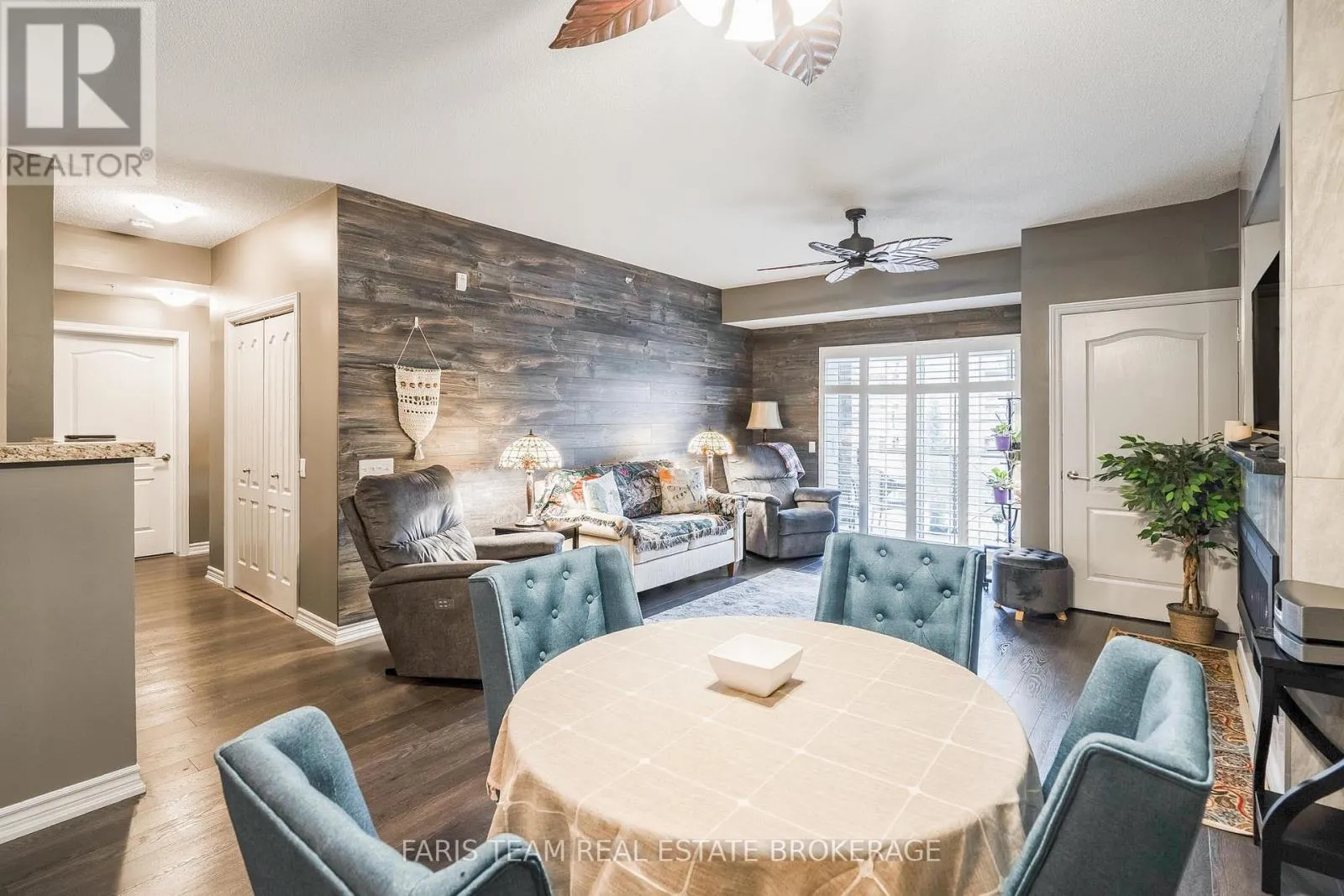 Tiffin St/Ferndale Dr S Top 5 Reasons You Will Love This Condo: 1) Experience effortless everyday living in this beautifully spacious 1,110 square foot condo, featuring two generously sized bedrooms and two full bathrooms, and the ability to accommodate a quick closing, tailored for those who value space, simplicity, and seamless flow 2) Beautifully finished with granite countertops in the kitchen and bathrooms, high-end Maytag appliances, a Whirlpool water softener, an Energy Star-certified Ecobee smart thermostat, designer palm leaf ceiling fans, California shutters, stunning wood accent walls, a gorgeous tiled entertainment wall with TV wall mount and a cozy Napoleon 60" electric fireplace with a remote in the living room 3) The open-concept layout includes a modern kitchen and spacious bedrooms, including a primary suite with its own ensuite bathroom 4) Enjoy outdoor living on the large private balcony in a pet-friendly building with a gas furnace, central air conditioning, indoor parking, and a personal storage locker 5) Conveniently located close to trails, Bear Creek Eco Park, schools, shopping, restaurants, community centres and seniors centres, Highway 400 access, Barrie's downtown core and beaches, and features an outdoor gym area, playground, patio pergola with seating and plenty of visitor parking for guests. 1,110 above grade sq.ft. (id:27476)