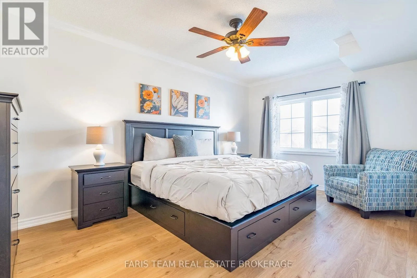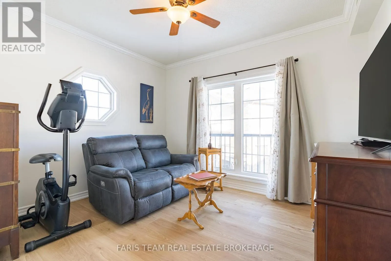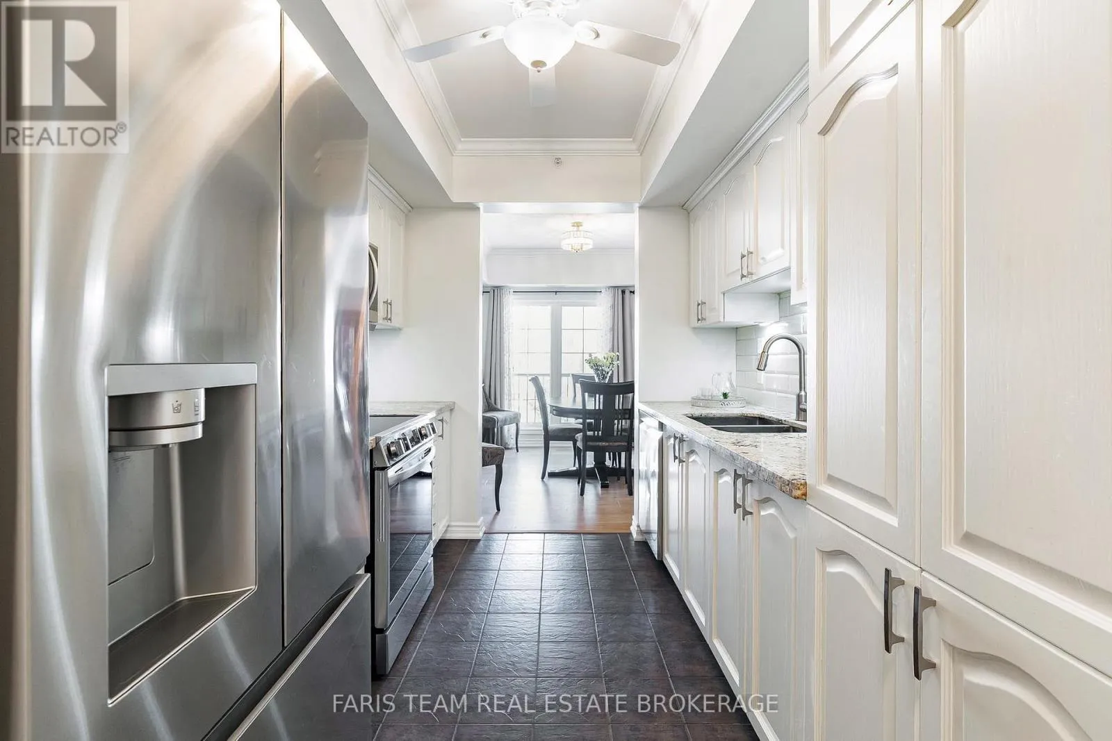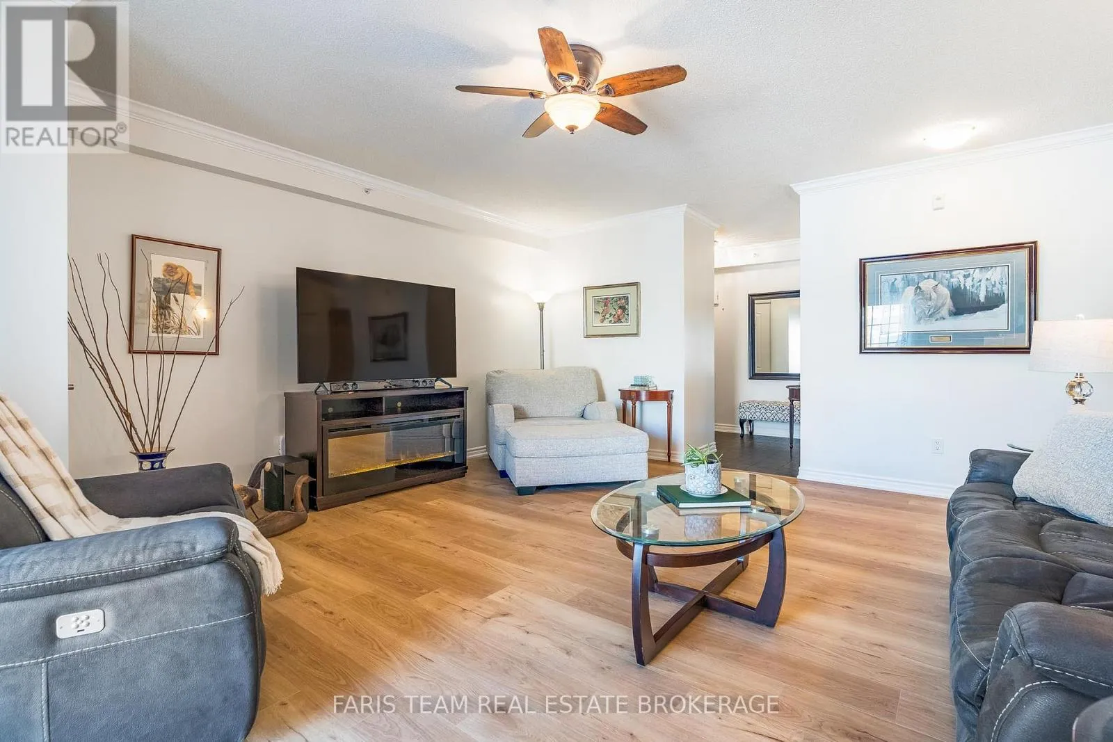 Tiffin St/Ferndale Dr S Top 5 Reasons You Will Love This Condo: 1) Welcoming corner-unit condo featuring a large private balcony overlooking the courtyard and beautifully landscaped gardens, perfect for unwinding with a book, barbequing, or savouring your morning coffee 2) Move-in with confidence knowing key updates have been completed, including newer flooring throughout the living spaces and bedrooms, an upgraded kitchen, crown moulding, fresh paint, and newer appliances 3) Parking includes one underground parking space, alongside a locker for extra storage, with the option to continue renting an additional above-ground spot for a monthly fee 4) Perfectly positioned to offer a seamless mix of privacy and accessibility, providing convenient access to Highway 400, scenic trails at Bear Creek Eco Park, and just moments from shopping, dining, and everyday amenities 5) Spacious three bedroom layout filled with natural light, with the primary bedroom offering a generous walk-in closet and ensuite, while two additional bedrooms provide flexibility for a home office, den, or guest space. 1,442 fin.sq.ft. (id:27476)