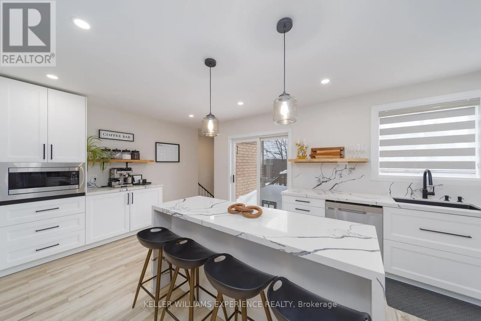 Cross Streets: Mapleton Ave & Silver Maple Cres. ** Directions: Essa Road to Mapleton Ave to Silver Maple Cres. **OPEN HOUSE SATURDAY FEB 21ST 12-2PM**This fully renovated 3-bedroom bungalow sits on a premium pie-shaped lot in one of Barrie's most sought-after neighbourhoods. Updated top to bottom, this turn-key home delivers a clean, modern aesthetic with high-end finishes throughout.The main level showcases luxury vinyl plank flooring, a refined gourmet kitchen with quartz countertops, matching quartz backsplash, stainless steel appliances, and a built-in coffee station. Fresh paint, upgraded hardware, contemporary lighting, and a beautifully renovated main bath featuring double sinks, a tiled shower, and a soaker tub complete the space.The walkout basement is bright and open, offering exceptional flexibility with a full second kitchen, one bedroom, and 3-piece bathroom-ideal for extended family, guests, or in-law potential. Outside, enjoy a private backyard retreat with a hot tub, perfect for year-round relaxation.Located minutes from top-rated schools, neighbourhood parks, shopping and dining along Mapleview Drive, Park Place, and major commuter routes including Highway 400, this home offers both convenience and lifestyle in a highly desirable Barrie location. Move in and enjoy. (id:27476)