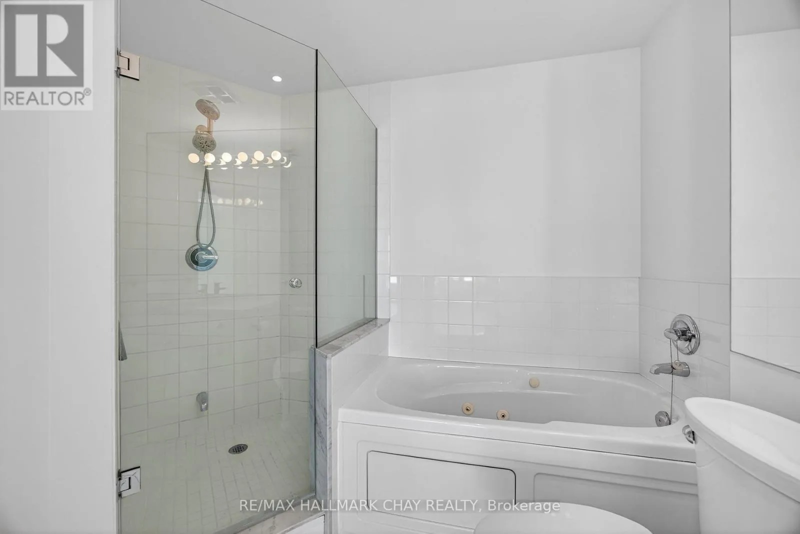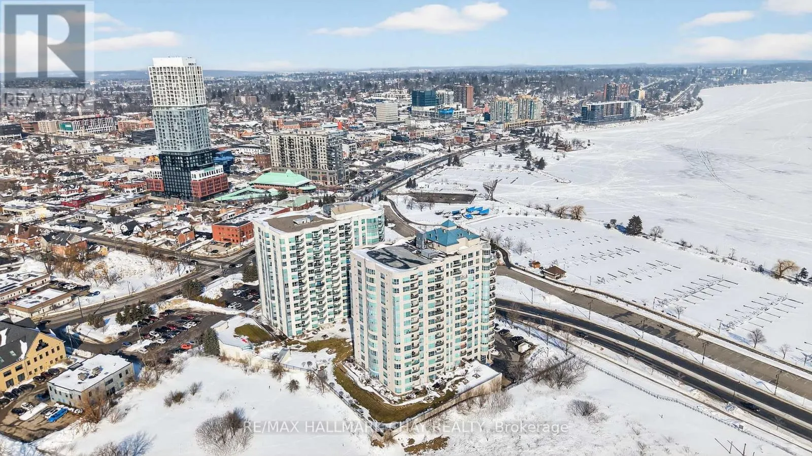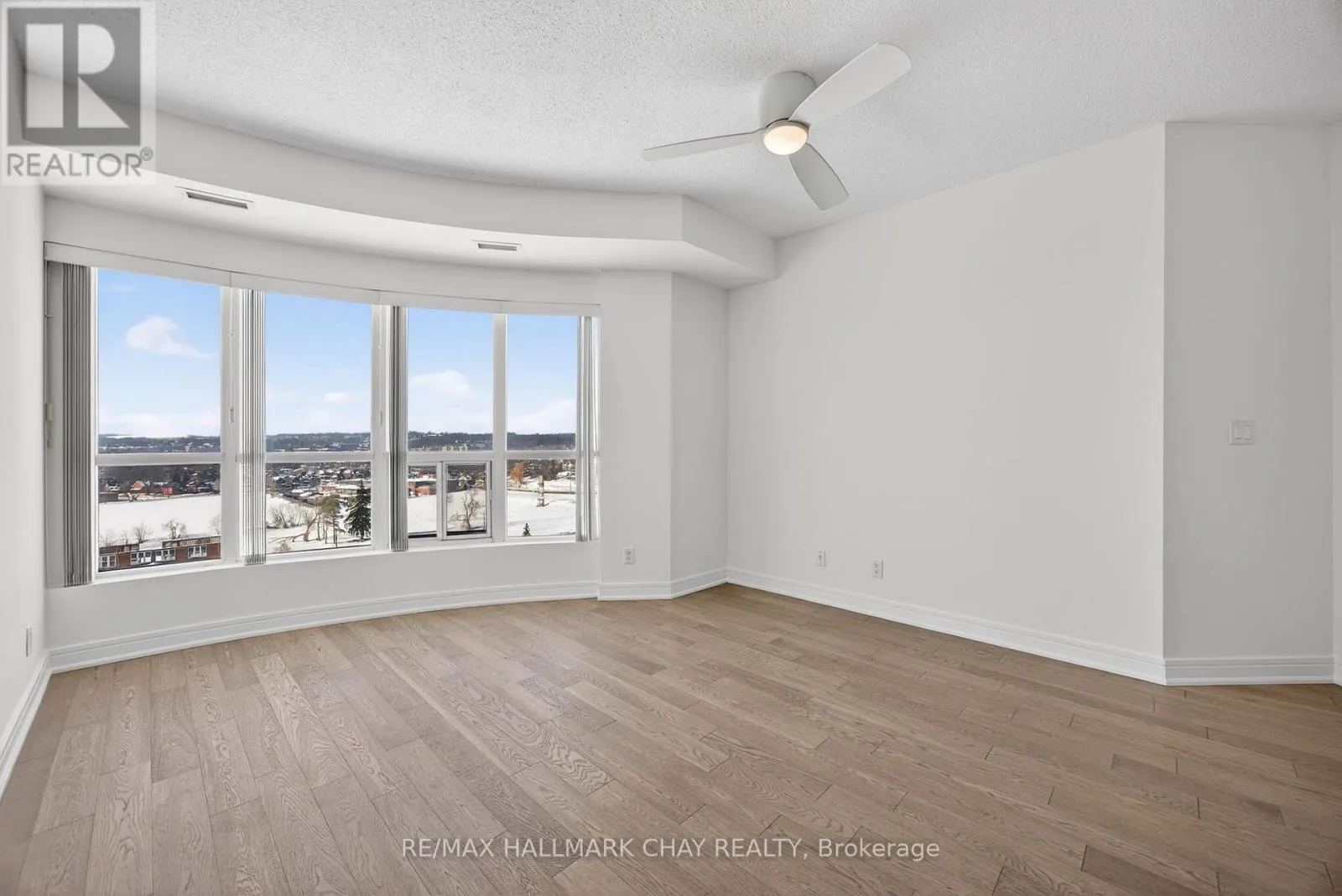 Cross Streets: Simcoe St and Toronto St. ** Directions: Lakeshore Dr to Toronto St. Barrie Condo Corner presents an incredible opportunity at the coveted Grand Harbour Condominiums, right on Barrie's waterfront. This bright and spacious 1342 square foot, 2-bedroom plus den suite is move-in ready and has been thoughtfully upgraded for modern living. The refreshed kitchen features stainless steel appliances, tiled backsplash, new counters, and a deep double sink with a new faucet, setting the tone for style and functionality. A sparkling new dining room chandelier, updated vanities, and engineered hardwood floors add elegance and comfort throughout the home. Sunlight floods the unit, which features wrap-around west, north and east views through the large windows giving it a nice open and airy feel. The rare natural gas fireplace is a beautiful attribute in this unit making it a cozy focal point. Step out onto the private balcony and take in the stunning views of Kempenfelt Bay, Barrie Marina and downtown Barrie. The spacious primary bedroom is a peaceful retreat featuring a walk-in closet with built-in organizers and an ensuite bathroom that features a jetted tub and a separate tiled shower. In-suite laundry, one owned underground parking space, and a storage locker complete this unit. Residents enjoy resort-style amenities including an indoor pool, hot tub, sauna, exercise room, party room, and games room. All of this is just steps from waterfront trails, downtown Barrie, and everything the city has to offer. This is more than a condo. It is a waterfront lifestyle, combining comfort, style, and the best of Barrie living. (id:27476)