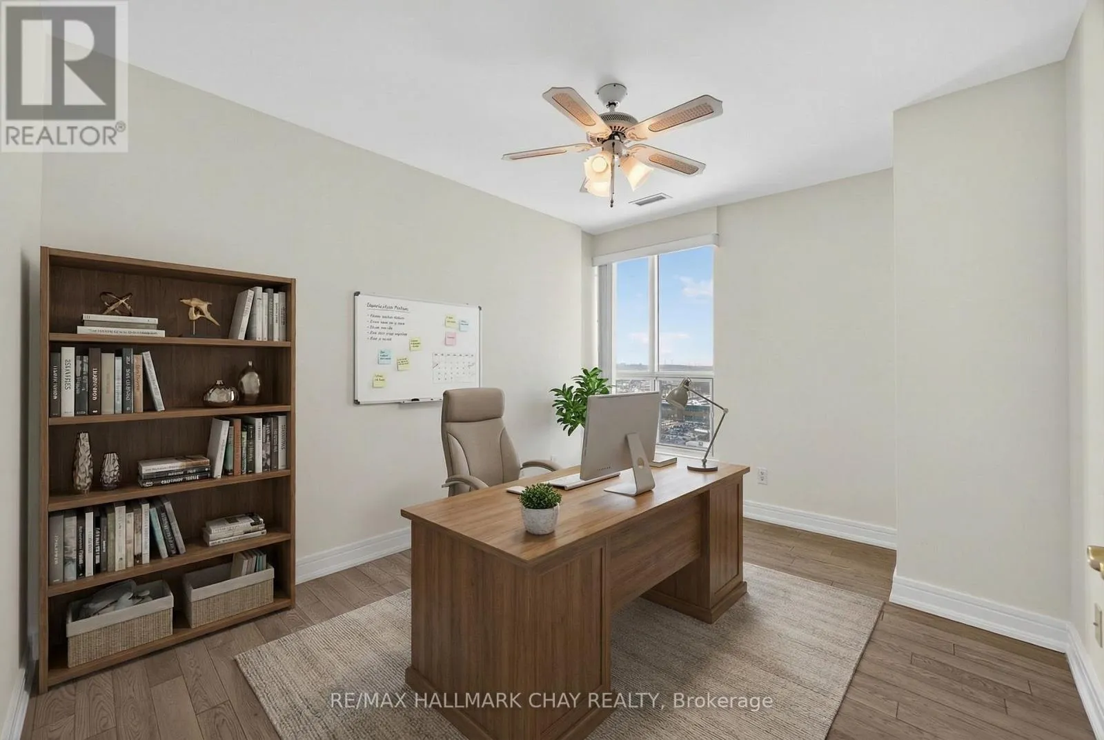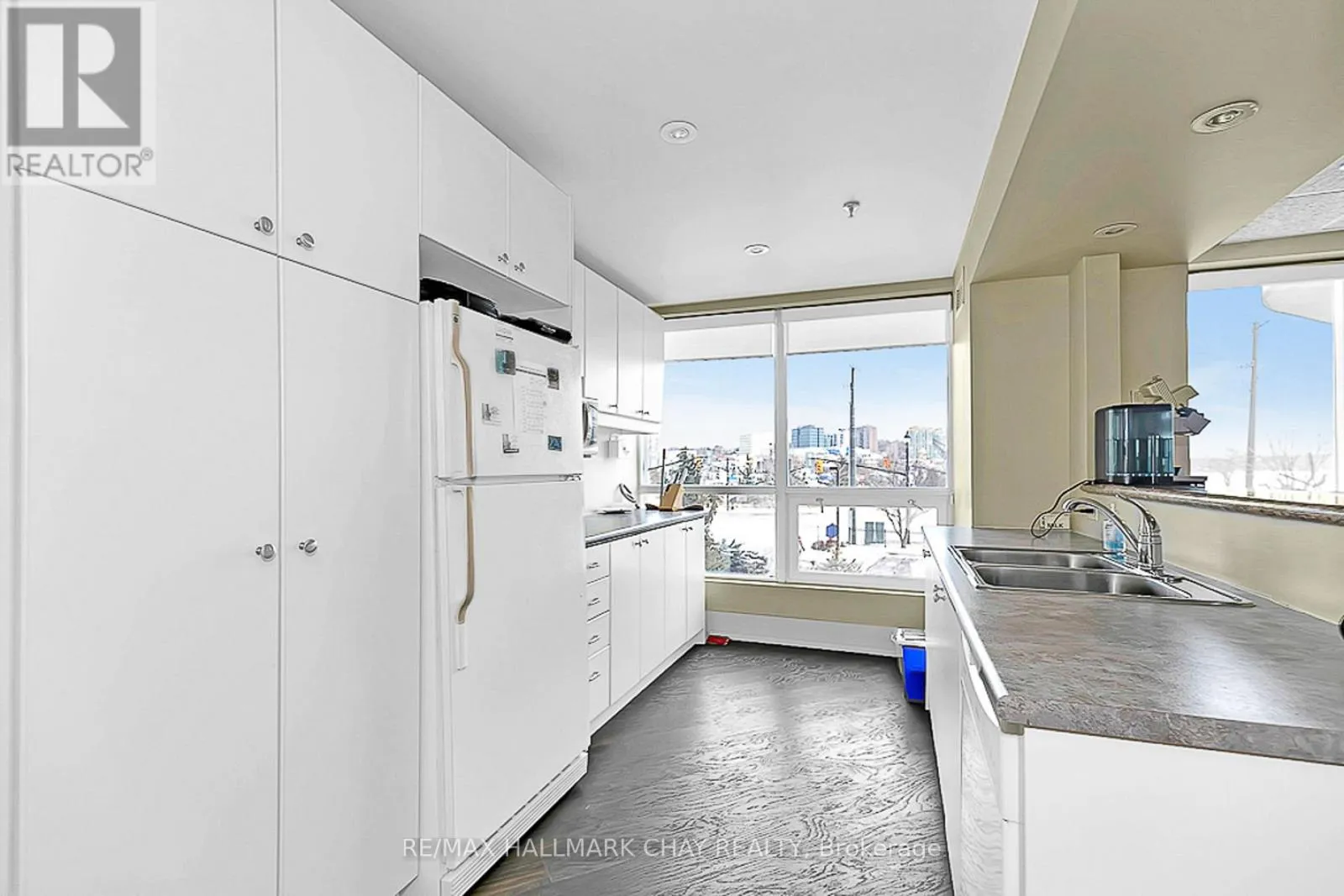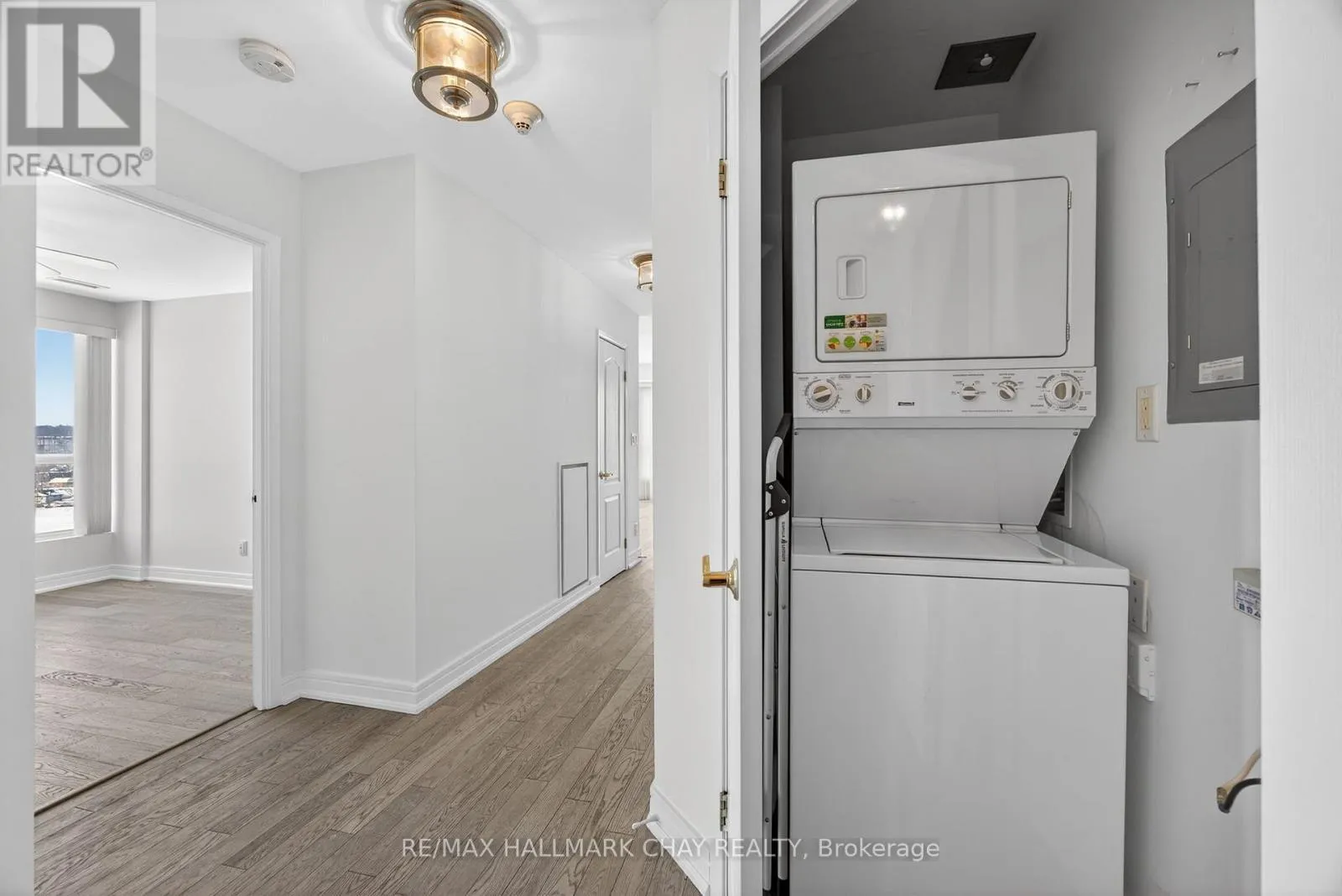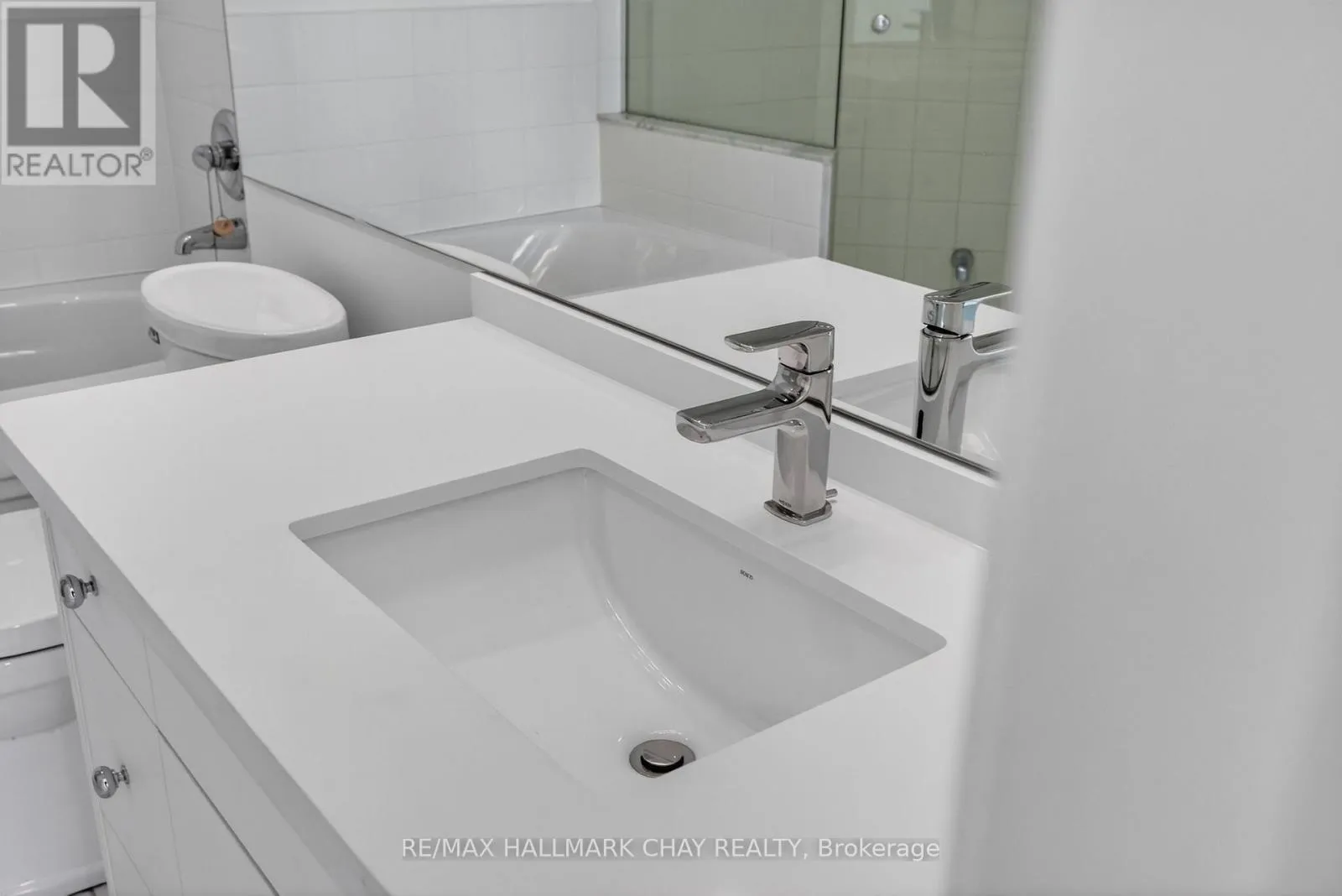 Cross Streets: Simcoe St and Toronto St. ** Directions: Lakeshore Dr to Toronto St. Barrie Condo Corner presents an incredible opportunity at the coveted Grand Harbour Condominiums, right on Barrie's waterfront. This bright and spacious 1342 square foot, 2-bedroom plus den suite is move-in ready and has been thoughtfully upgraded for modern living. The refreshed kitchen features stainless steel appliances, tiled backsplash, new counters, and a deep double sink with a new faucet, setting the tone for style and functionality. A sparkling new dining room chandelier, updated vanities, and engineered hardwood floors add elegance and comfort throughout the home. Sunlight floods the unit, which features wrap-around west, north and east views through the large windows giving it a nice open and airy feel. The rare natural gas fireplace is a beautiful attribute in this unit making it a cozy focal point. Step out onto the private balcony and take in the stunning views of Kempenfelt Bay, Barrie Marina and downtown Barrie. The spacious primary bedroom is a peaceful retreat featuring a walk-in closet with built-in organizers and an ensuite bathroom that features a jetted tub and a separate tiled shower. In-suite laundry, one owned underground parking space, and a storage locker complete this unit. Residents enjoy resort-style amenities including an indoor pool, hot tub, sauna, exercise room, party room, and games room. All of this is just steps from waterfront trails, downtown Barrie, and everything the city has to offer. This is more than a condo. It is a waterfront lifestyle, combining comfort, style, and the best of Barrie living. (id:27476)