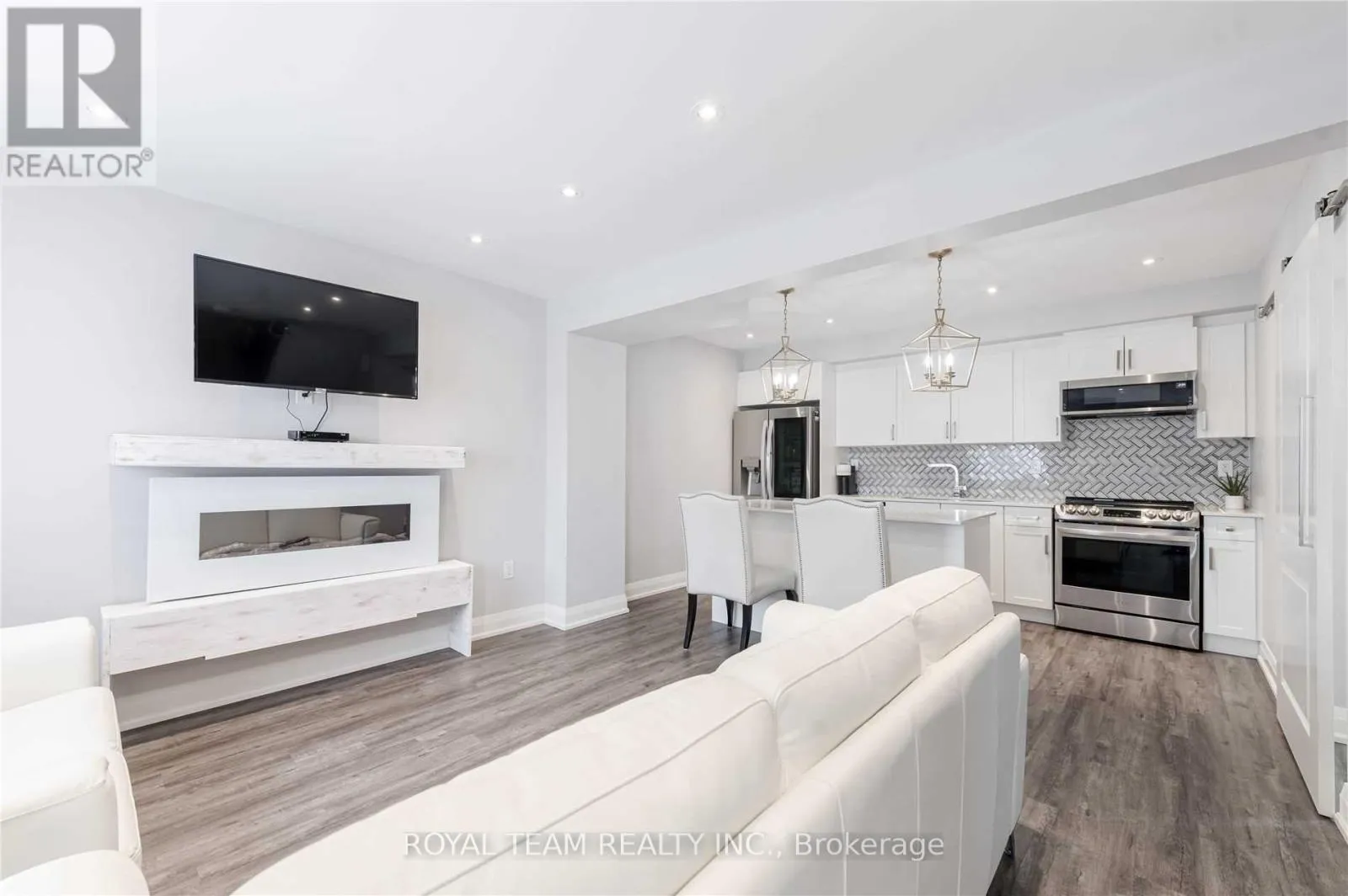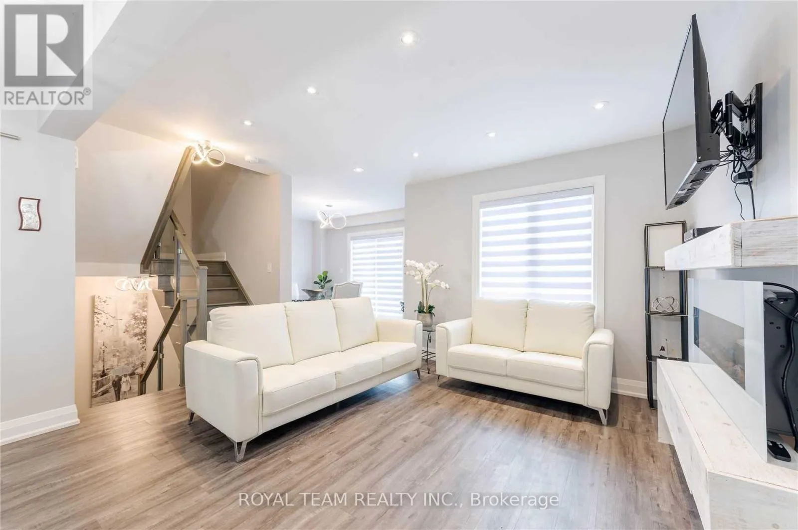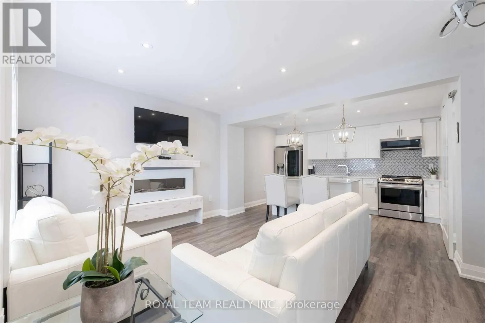 ESSA RD TO KODA ST TO KODIAK Stunning End-Unit 3-Storey Townhome Offering Exceptional Natural Light And A Bright, Spacious Layout Throughout! This Beautifully Upgraded 3+1 Bedroom, 3 Bathroom Home Features High-Grade Plank Flooring, Pot Lights, Upgraded Interior Fixtures, Modern Zebra Blinds, And An Elegant Electric Fireplace In The Family Room. Thoughtfully Designed With Functionality In Mind, The Home Offers A Versatile Layout Ideal For Families Or Professionals Alike. Enjoy Direct Garage Access To The Main Level For Added Convenience, Full-Size Laundry, And Quality Appliances. Walk Out To A Large Private Balcony - Perfect For Relaxing Or Entertaining. Located Just Minutes To Highway 400, Schools, Parks, Shopping, And Everyday Amenities. A True Turn-Key Opportunity You Don't Want To Miss! (id:27476)