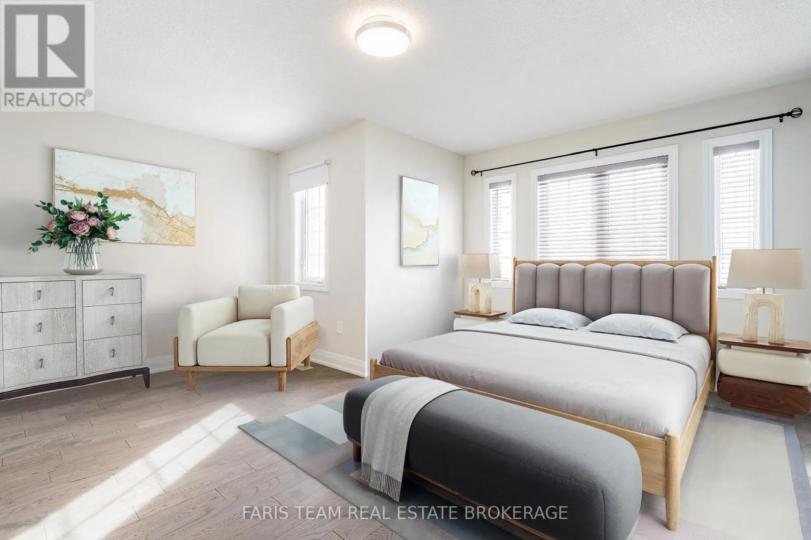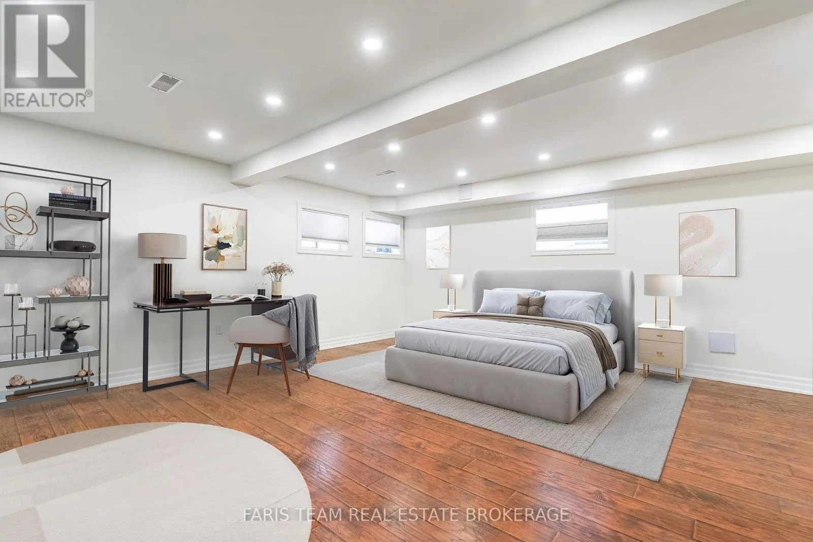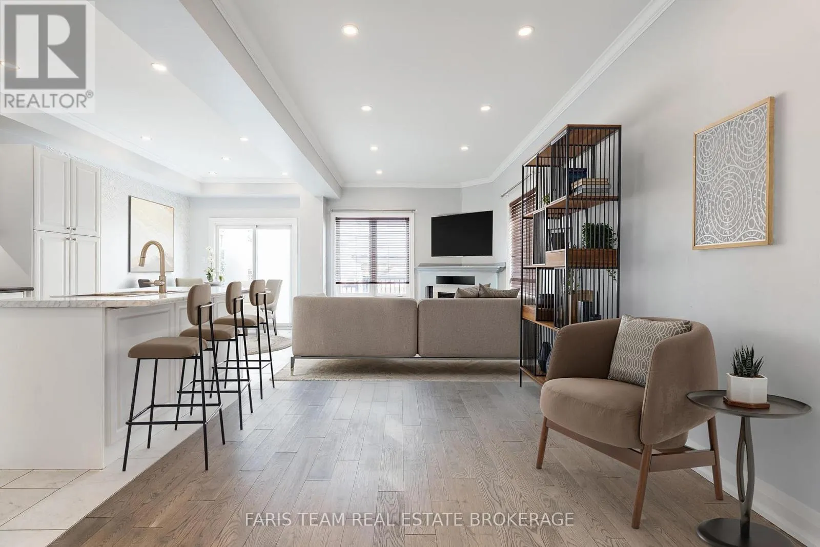 Livingstone St E/Stanley St Top 5 Reasons You Will Love This Home: 1) Desirably positioned end-unit townhouse nestled within a highly regarded school district, just moments from Georgian Mall, shopping, dining, parks, and everyday conveniences 2) Spacious four bedroom layout providing ample room for a growing or young family, with flexible living spaces ideal for home offices, guest accommodations, or play areas 3) Attractive full brick exterior complemented by an expanded driveway for additional parking, enhancing both functionality and curb appeal from the moment you arrive 4) Retreat to the fully finished basement featuring an additional bedroom complete with its own ensuite, creating a private retreat for guests, multi-generational living, or older children 5) Beautifully maintained and manicured fenced yard highlighted by a newly built deck, ideal for outdoor entertaining, summer barbeques, or simply relaxing in your own private space. 1,658 above grade sq.ft. plus a finished basement. *Please note some images have been virtually staged to show the potential of the home. (id:27476)