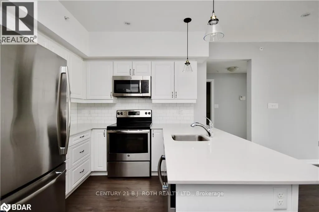 Essa/ Ardagh Beautiful 2 bedroom 2 full bathroom Penthouse suite in "The MacLaren" in the art inspired Gallery Condominiums backing onto 14 acres of forest and trails. Only 7 years old - open concept 9' ceilings with quartz countertops, great location - 5 min. drive to 400, 6 min drive to Allandale Waterfront GO train. Includes in-suite laundry, stainless fridge, stove and dishwasher, central a/c, large balcony - BBQs are permitted. 1 underground parking with 1 storage locker. All utilities included in $2550.00 monthly rent. Life at the MacLaren condominiums includes access to the 11,000 sq. ft. roof top patio overlooking the City of Barrie and offering picturesque views of Kempenfelt Bay. Perfect for a professional who is a non-smoker. Live and enjoy a maintenance free lifestyle. (id:27476)