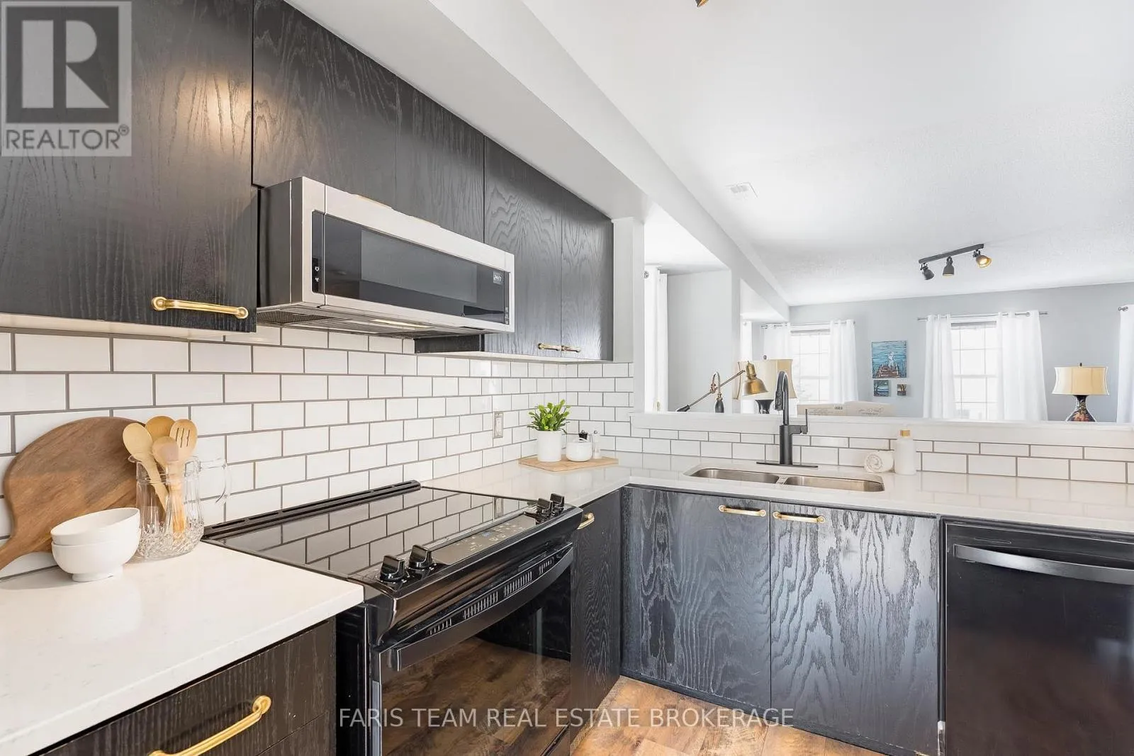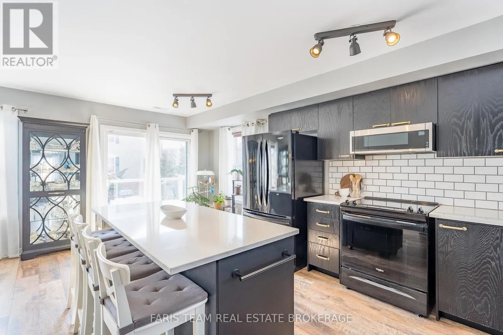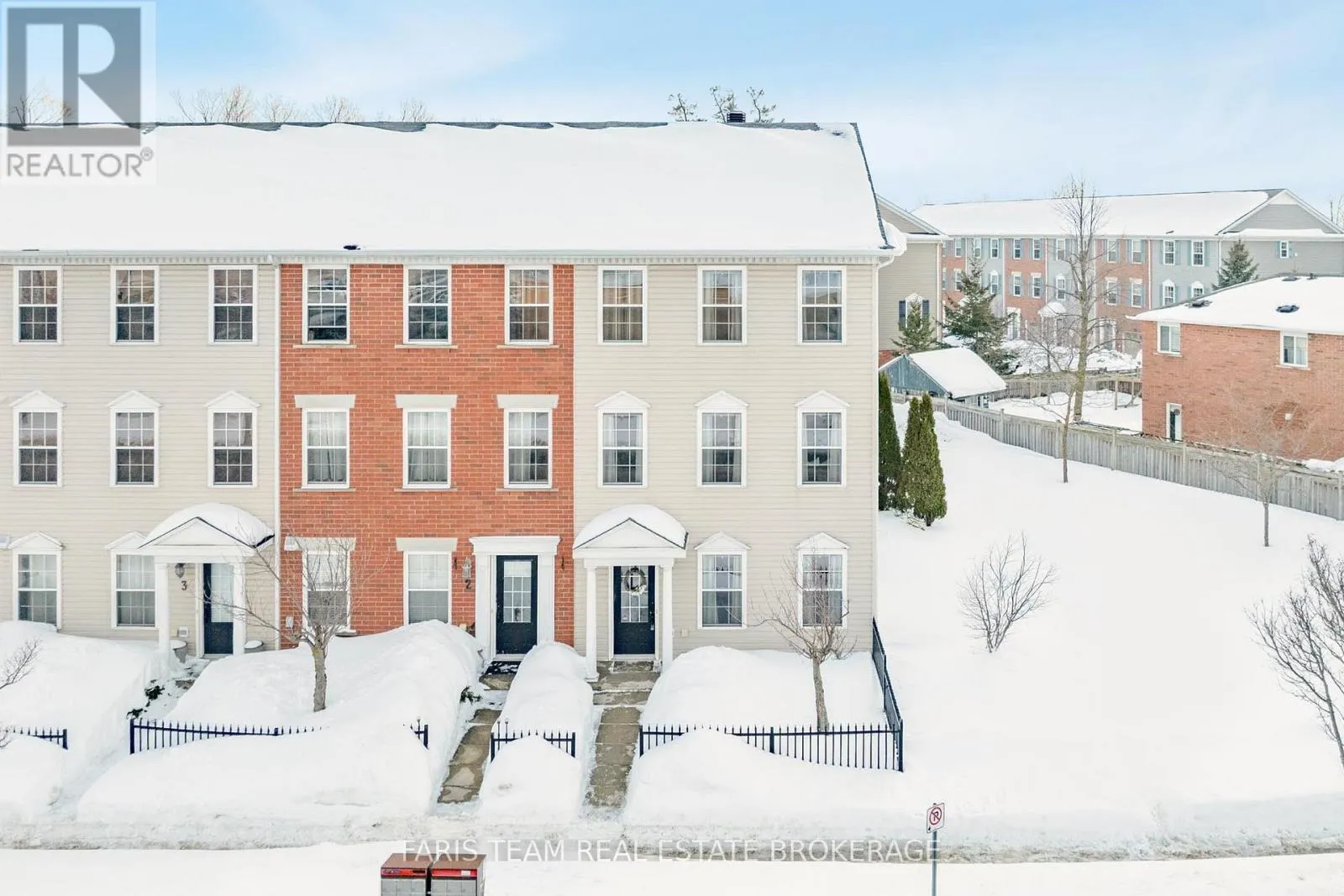 Essa Rd/Coughlin Rd Top 5 Reasons You Will Love This Home: 1) Impeccably maintained and move-in-ready, this three bedroom end-unit townhome offers effortless transitions, starting with a large main level boasting a den complete with a rough-in for a powder room and convenient inside entry from the two-car garage, alongside stunning curb appeal with a covered front door portico and mature hydrangea garden 2) Large windows at the front, back, and side of the home, with north, south, and west-facing exposures, fill the open-concept second level with an abundance of natural light, showcasing a stunning eat-in kitchen complete with quartz countertops, a spacious centre island with pot drawers, newer appliances including a fridge, stove, and dishwasher, plus a dedicated dining area and a walkout leading to a private balcony creating a seamless flow from indoor comfort to outdoor living 3) Everyday chores are made easy with a highly functional third level laundry room situated near the bedrooms, along with a primary suite that serves as a true retreat with its own private ensuite bathroom 4) Curated with stylish touches throughout the home, including newer carpeting on the staircase and upgraded fixtures in the bathrooms, ensuring a modern and polished feel in every room 5) Appreciate low maintenance fees covering grass cutting and snow removal, along with access to a nicely sized parkette within the community featuring a covered playground, all gracefully set in the heart of the sought-after Holly neighbourhood within walking distance to local schools, the library, recreation centres, parks, restaurants, shopping, and convenient access to Highways 400 and 27. 1,863 fin.sq.ft. (id:27476)
