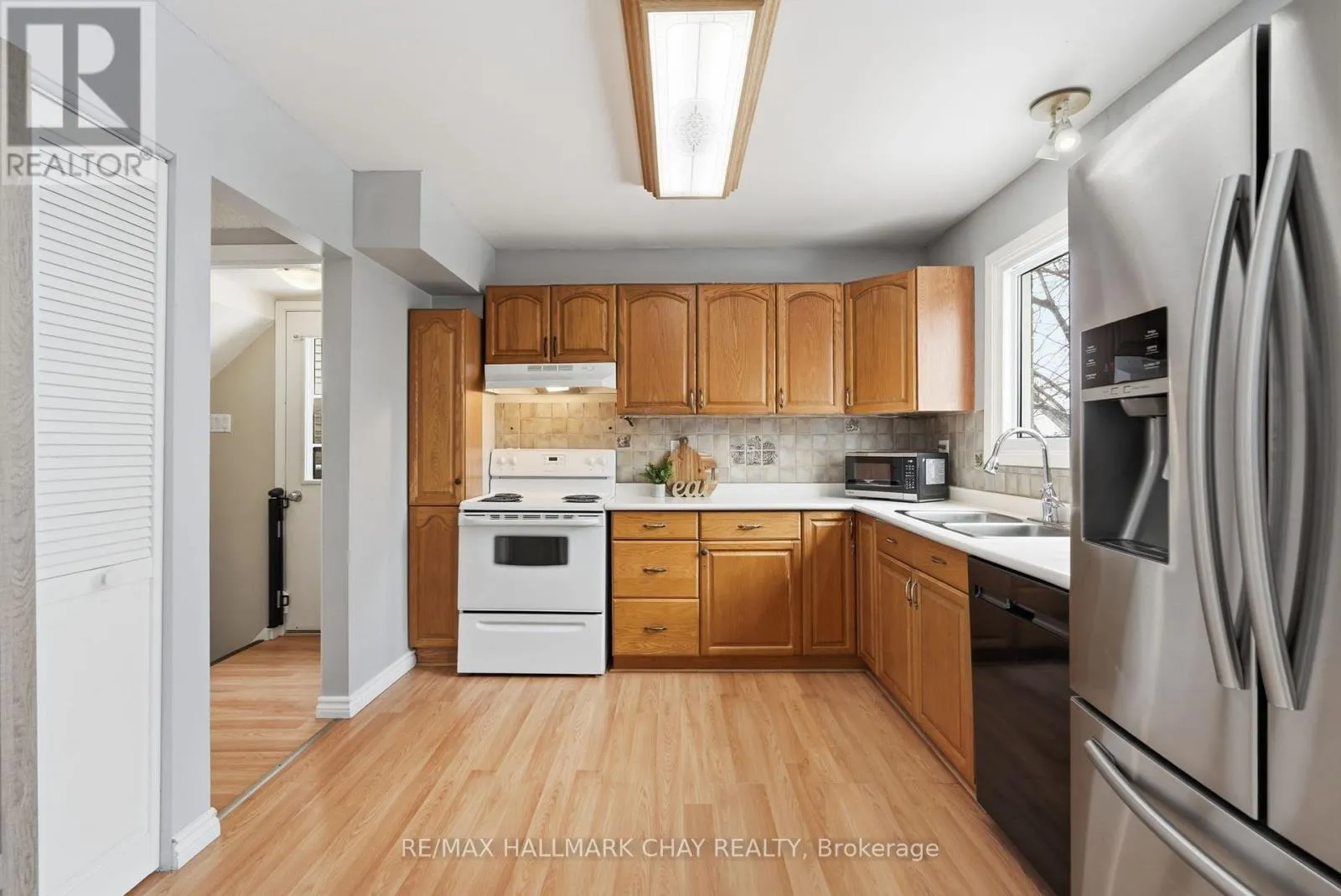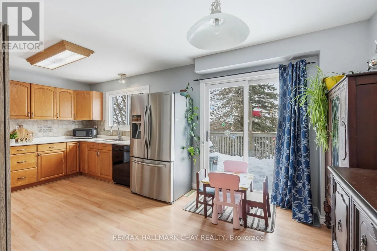Cross Streets: EDGEHILL DR & FOX RUN. ** Directions: ANNE ST TO EDGEHILL TO FOX RUN. Welcome to 24 Fox Run - a well-loved family home offering space to grow, inside and out.Set on an almost 200-ft deep, fully fenced lot backing onto green space, this detached 2-storey home provides the kind of yard families truly appreciate. There's plenty of room for kids to play, space for gatherings, and even a nearby tobogganing hill to enjoy in the winter months.Step through the double-door entry into a bright foyer that flows into comfortable family and dining areas designed for everyday living. The eat-in kitchen features a pantry and walk-out to a deck with treed views and city sightlines - a great spot for morning coffee or summer BBQs.Upstairs, you'll find three generously sized bedrooms with laminate and hardwood flooring. The primary bedroom includes a walk-in closet. Bathroom flooring was updated this year, and low water-usage toilets add efficiency. A convenient 2-piece bathroom on the main floor keeps things practical for busy households.The separate side entrance offers flexibility for multi-generational living or future in-law potential. The fully finished walk-out basement includes a large rec room, 3-piece bathroom, laundry area, storage, and wet bar - ideal for movie nights, play space, or entertaining.Major updates include main floor and upper windows replaced in 2020, basement window and patio door replaced in 2019, roof replaced in 2020, and furnace and A/C updated in 2016.Located close to Highway 400, transit on the street, schools, parks, grocery stores, pharmacy, RVH, and just minutes from Kempenfelt Bay with waterfront trails and beaches.A comfortable, cared-for home ready for its next chapter. (id:27476)