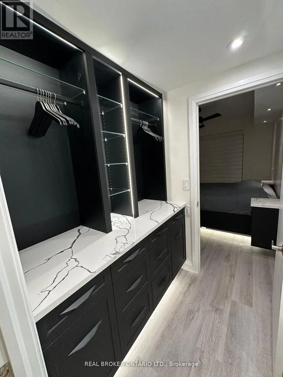 Cross Streets: Cundles & J.C. Massie Way. ** Directions: Across from Georgian College & Hospital. Welcome to this stunning, partially furnished 2-bedroom, 2-bathroom luxury condo offering 830 sq. ft. of fully upgraded living space in one of Barrie's most sought-after communities. Designed with both style and function in mind, this unit features high-end finishes throughout and a massive private, non-shared balcony with a partial view of Little Lake-perfect for relaxing or entertaining. The modern open-concept layout includes quartz countertops throughout, custom vanities, LED pot lights, motion-sensor lighting, and two sleek ceiling fans. The thoughtfully curated furnishings include a custom built-in bed with matching night tables (tenant to supply mattress), two wall-mounted TVs, a sectional couch, a custom work-from-home desk, and a luxury walk-in closet with quartz counters and LED lighting. The kitchen is equipped with stainless steel appliances, and in-suite laundry adds everyday convenience. Additional features include extra-wide underground parking (1 space), offering truly stress-free living. Enjoy resort-style building amenities such as a fitness centre, rooftop patio, party room, games room with pool table, dog wash station, and security/concierge service. Located minutes to Royal Victoria Hospital, seconds to Highway 400, Little Lake, Georgian College, and Cundles Plaza with shopping, dining, LCBO, and cinema nearby. This is a rare opportunity to lease a truly turn-key, luxury condo in an unbeatable location. (id:27476)