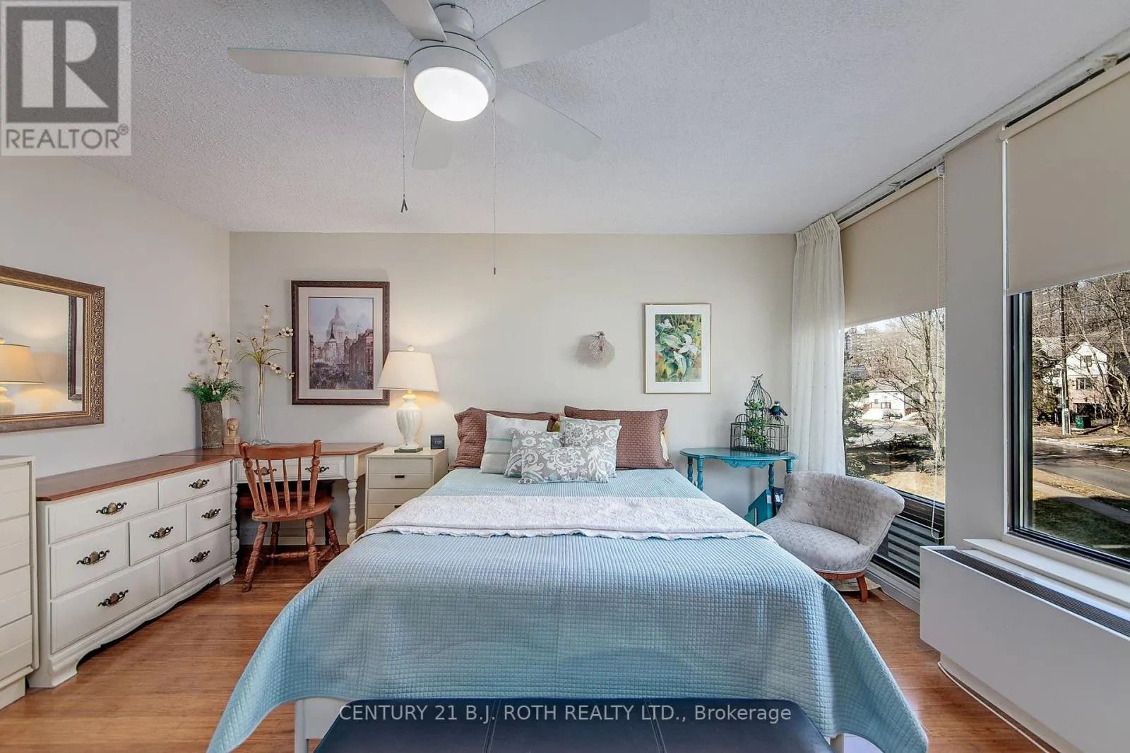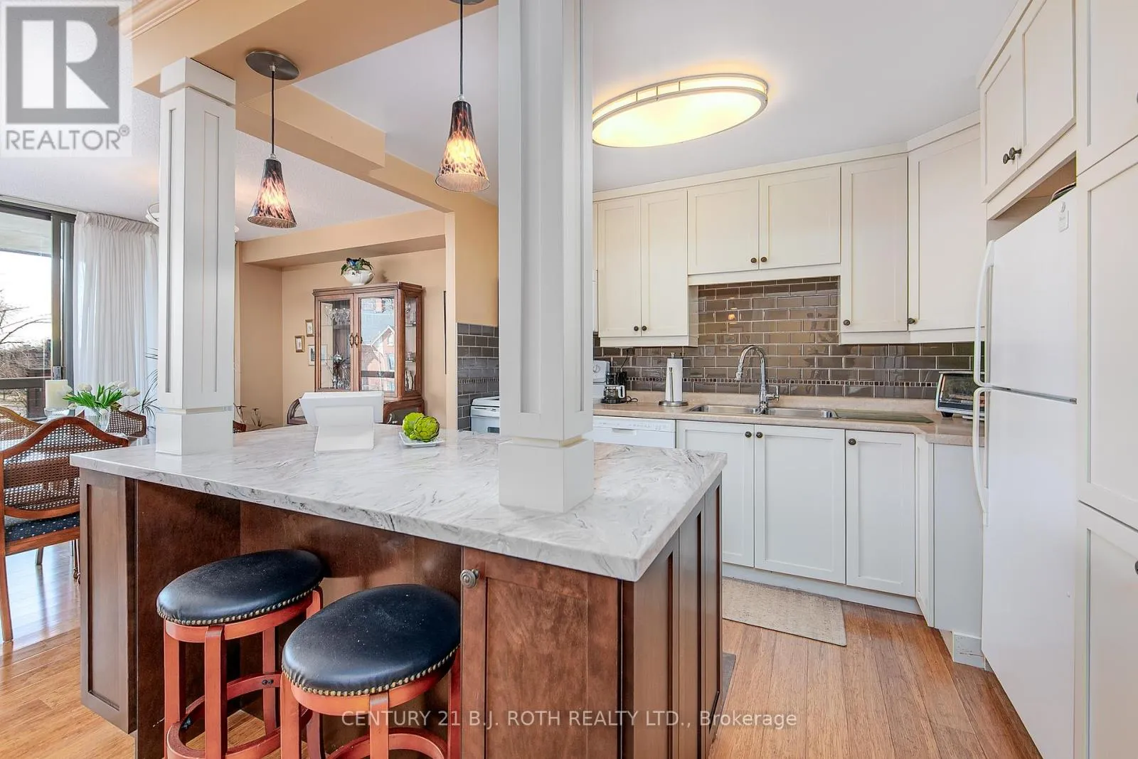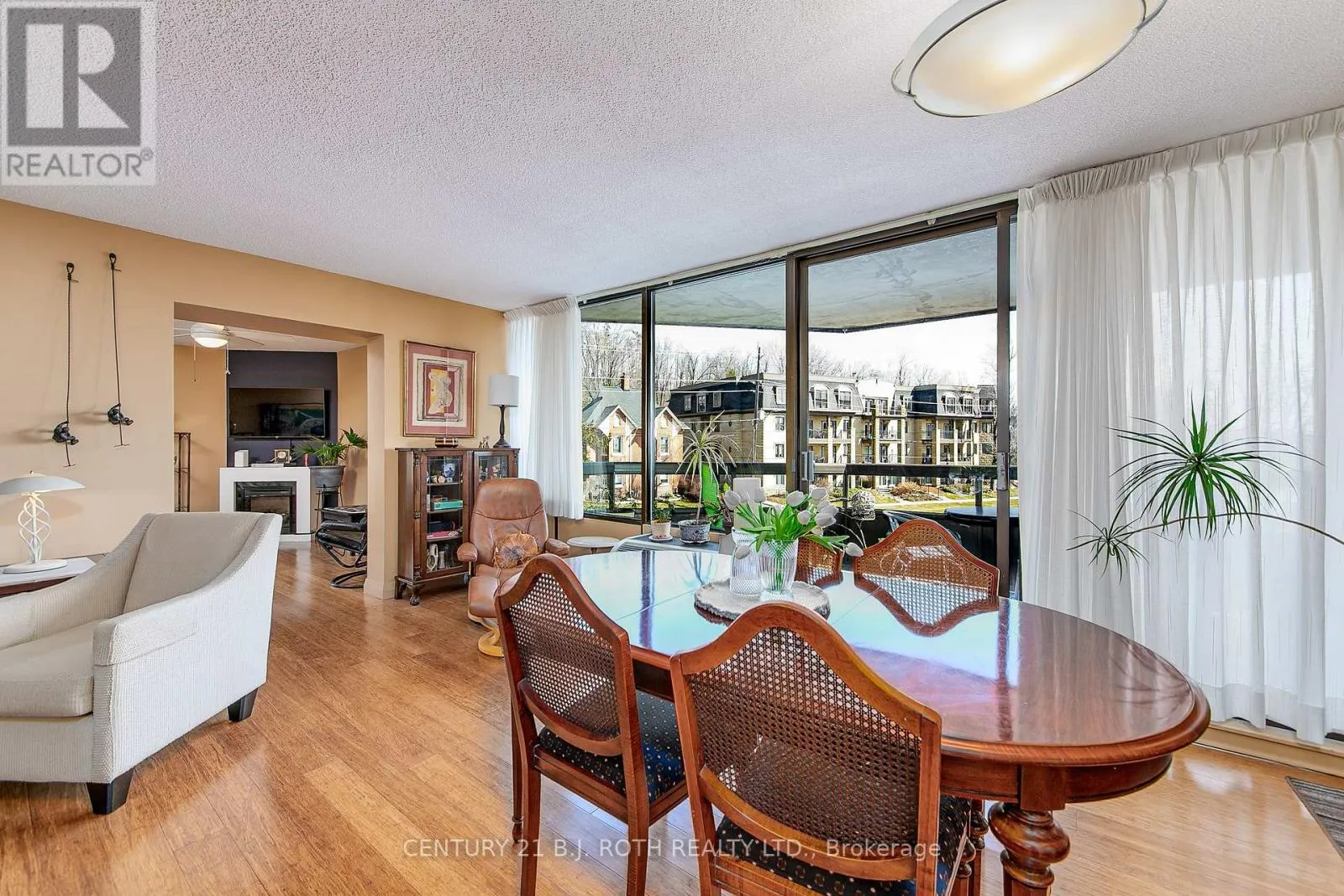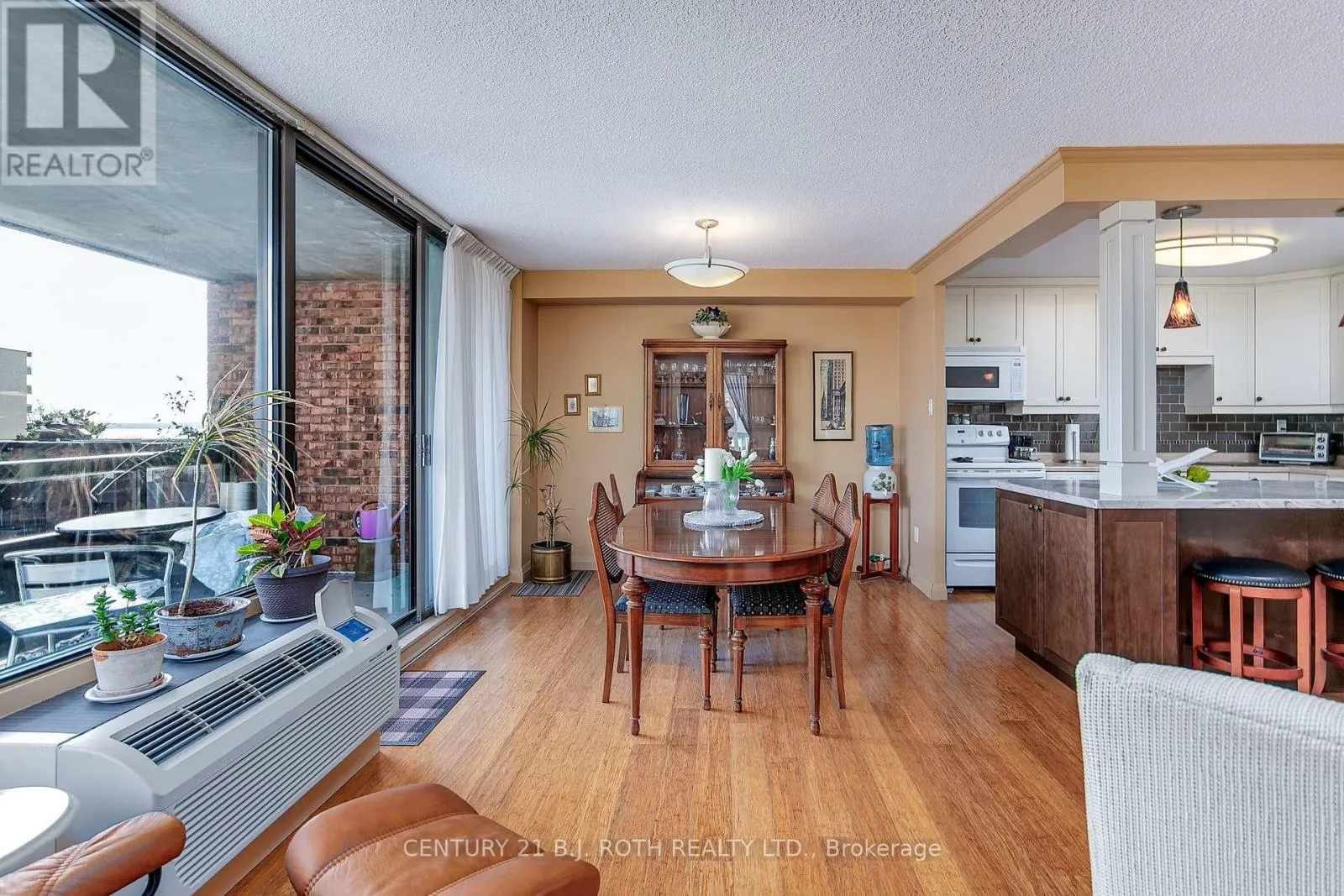Cross Streets: Dunlop and Collier. ** Directions: Dunlop St to Collier. Welcome to an attractively priced opportunity at The Bay Club, known for its incredible amenities and location. This professionally updated home has an open concept layout with expansive windows. The eastern exposure provides morning sun and afternoon shade which makes the open air balcony pleasant all day. This bright and cheerful unit offers 1,324 square feet of living space. This 3 bedroom, 2 bath home is highlighted by bamboo floors and rich ceramics throughout resulting in a seamless flow from one room to the other. The updated kitchen will delight any chef; it has tons of cupboards and counter space and offers a huge island which works well as a breakfast bar or servery and is complimented by additional storage. The living room, dining room, kitchen and den are open concept making it a breeze to entertain. The bedrooms are generous size with large closets. One bedroom has been opened up and is a sitting room however, it could easily be reversed should the third bedroom be required. The two bathrooms are updated and lovely. There is ensuite laundry and a really handy utility room with shelves. This unit has 3 heat pumps which provides warmth in the winter and cooling in the summer. They are economical to run and keep the expenses down. To complete this package, there is an exclusive underground parking space and locker. The incredible facilities include an indoor pool, sauna, hot tub, fitness center, party room, billiards room, tennis/pickleball court, squash/ping pong room, woodworking shop, potting room where you can leave your plants when you are away, puzzle room, library, and to top it off, a wonderful guest suite with kitchenette. The Club is located just outside the downtown core; it is a short walk to restaurants, groceries, art gallery, churches, shops, public transportation and the waterfront walking trails. Condo fees covers hot and cold water, parking, cable, internet, common elements, and management fees. Hydro costs are approximately $74 per month (id:27476)