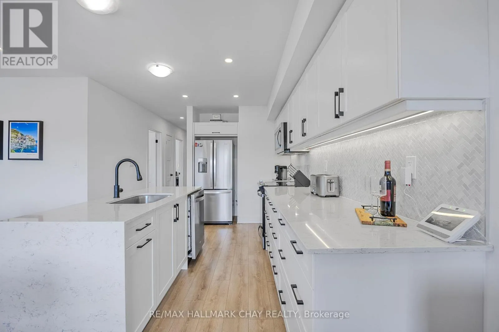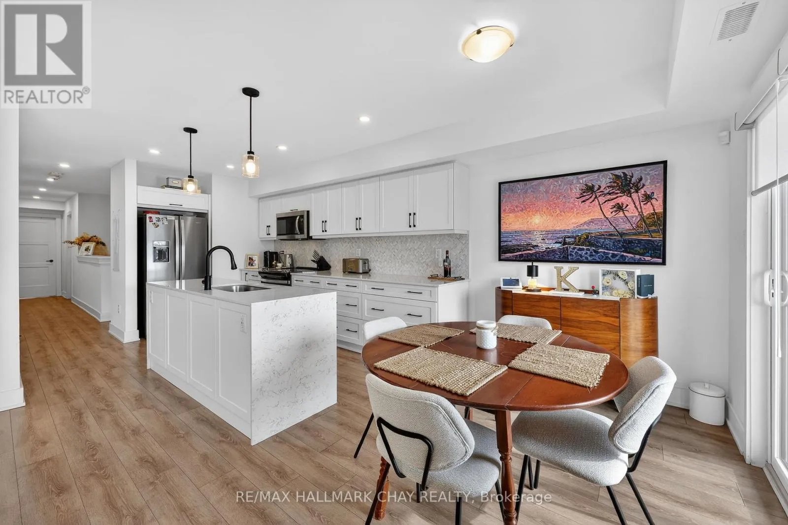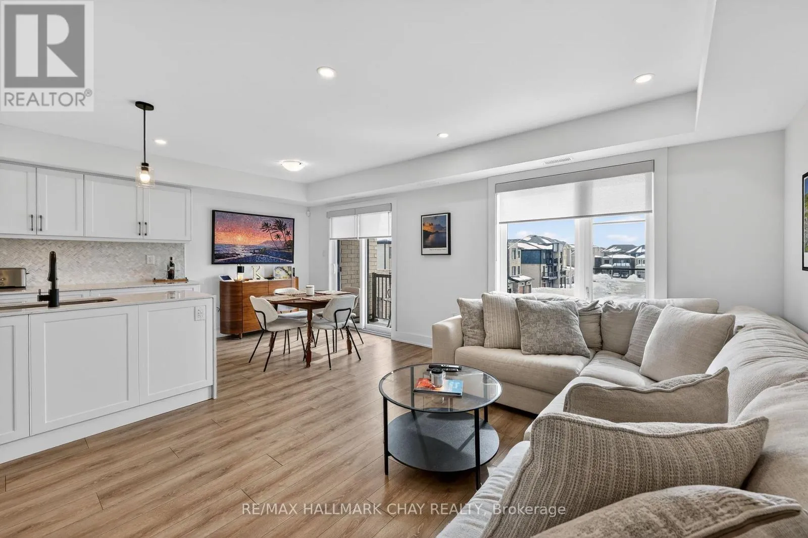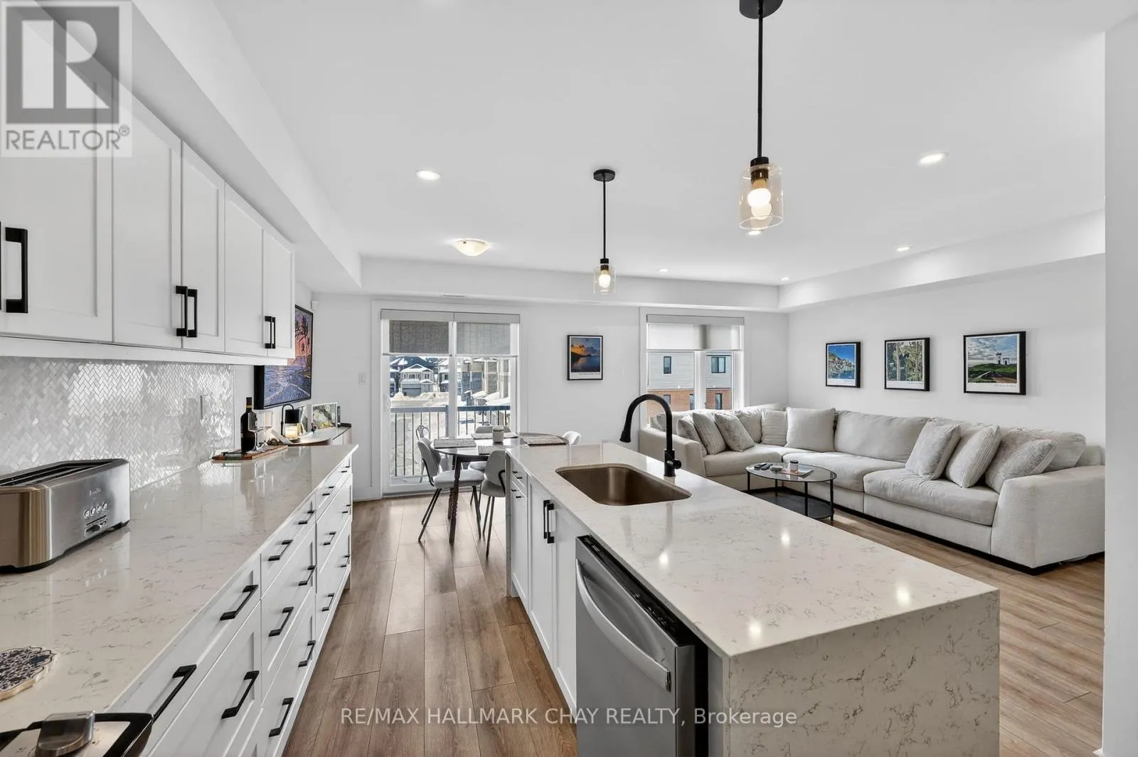 Mapleview Dr E / Prince William Way Stylishly Upgraded Condo Townhome In Barrie's Desirable Southeast End. Step Into This Beautifully Upgraded Condo-Townhome That Seamlessly Blends Modern Design With Practical Living. No Detail Was Overlooked & No Expense Sparred Featuring An Oversized Kitchen Outfitted With White Shaker-Style Cabinetry, Soft-Close Doors, Sleek Black Hardware, Upgraded Black Faucets, Under-Cabinet Lighting, And A Premium Stainless Steel Appliance Package. The Show stopping Oversized Island Boasts Quartz Waterfall Countertops, Perfect For Entertaining. Enjoy Open-Concept Living With Pot Lights And High-End Vinyl Flooring Throughout. The Spacious Living Room Is Flooded With Natural Light From Large South-Facing Windows, Complemented By 'Hunter-Douglas' Automatic Blinds And A Generous Balcony Ideal For BBQs And Soaking In The Sunshine. You'll Find Three Spacious Bedrooms, All With Upgraded Closet Doors, Black Hardware, And Continued Vinyl Flooring. The Primary Retreat Includes A Walk-In Closet And A Beautifully Finished 3-Piece Ensuite With A Glass Walk-In Shower And Quartz Vanity. The Two Additional Bedrooms Share A Modern 4-Piece Bathroom, Also With Quartz Countertops. Additional Highlights Include A 1-Car Garage With Inside Entry And An Automatic Door Opener, A Dedicated Outdoor Area With Potential For A Private Fenced Yard, And Visitor Parking For Guests. Conveniently Located Near Park Place, Friday Harbour, Beaches, Top-Rated Schools, Golf Courses, And Everyday Amenities. Also Easy Access To Go-Train & Highway 400 For Commuters Or Going To The GTA For More Entertainment. (id:27476)