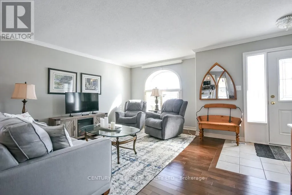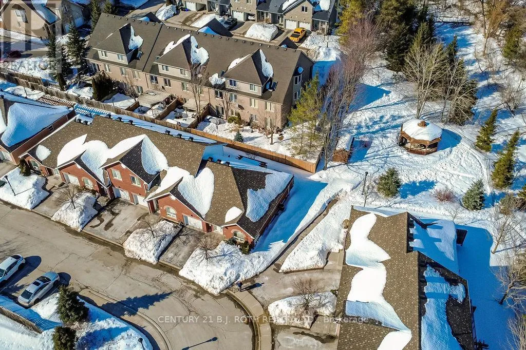 Yonge St & Little Ave West Downsize into this stunningly upgraded and beautifully maintained end-unit bungalow beside the park in a quiet, well-managed adult-oriented community called Allandale Villas. This fully finished bungalow offers everything you need on the main level including main floor laundry. The open-concept floor plan is very desirable. Living room / dining area is bright and inviting with hardwood floors which leads into an upgraded kitchen that is sure to impress. Kitchen has upgraded countertops, plumbing fixtures, tile backsplash and the owner added additional cabinetry for added storage. Main level has lovely 2pc bathroom and a spacious primary suite with lrg closet and 4pc ensuite bath with easy access into the tub. Main floor has crown mouldings, pot lights and beautiful upgraded light fixtures. Easy access from single car garage with inside entry into the main floor space. Fully finished basement offers large rec room with gas fireplace and extra large windows providing ample of light into the space. You can also enjoy a bedroom & updated 3pc bathroom in the basement if you have guest over. Basement also has tons of storage space. Quality construction with ICF foundation in basement. Additional selling features include: Professionally painted 2 years ago, Extended rear deck & pergola (2017) along with beautiful gardens around the property, California shutters, water softener, c/air. Condo fees include all exterior maintenance: grass cutting, snow removal, and building repairs, offering truly worry-free living. Pets are welcome. Residents enjoy a friendly, social atmosphere with organized community events, plus amenities including a gazebo and community garden shed. Ideally located near walking paths to restaurants, the Allandale Recreation Centre, schools, and the waterfront. All appliances are included in the sale. Shows to perfection. (id:27476)
