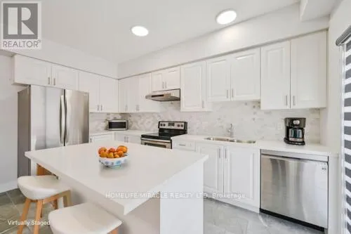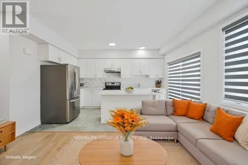 Yonge and Mapleview Beautifully maintained Stunning 2022-built townhouse located in the highly desirable south-east Barrie community. This bright and modern 2-storey home offers 3 bedrooms and 3 bathrooms, thoughtfully designed with stylish neutral décor and functional living spaces throughout. The main floor features 9-foot ceilings, large windows, and an open, airy layout that fills the home with natural light. The contemporary white kitchen is equipped with elegant cabinetry, quartz countertops, backsplash, and four stainless-steel appliances, creating the perfect space for everyday living and entertaining. An upgraded oak staircase adds a refined touch and connects the home's living spaces seamlessly. The upper level provides a private and comfortable retreat, highlighted by a spacious primary bedroom that easily accommodates a king-size bed along with space for a reading nook or home office area, and includes a 3-piece ensuite bathroom. Two additional bedrooms and a full bathroom complete the level, along with the convenience of second-floor laundry. Ideally situated close to excellent schools, parks, playgrounds, shopping, services, entertainment, and year-round recreation. Public transit and GO Transit are just steps away, with quick access to major commuter routes to the GTA and close proximity to the Barrie waterfront. Bright, modern, and truly move-in ready - a fantastic opportunity in one of Barrie's most desirable locations. (id:27476)
