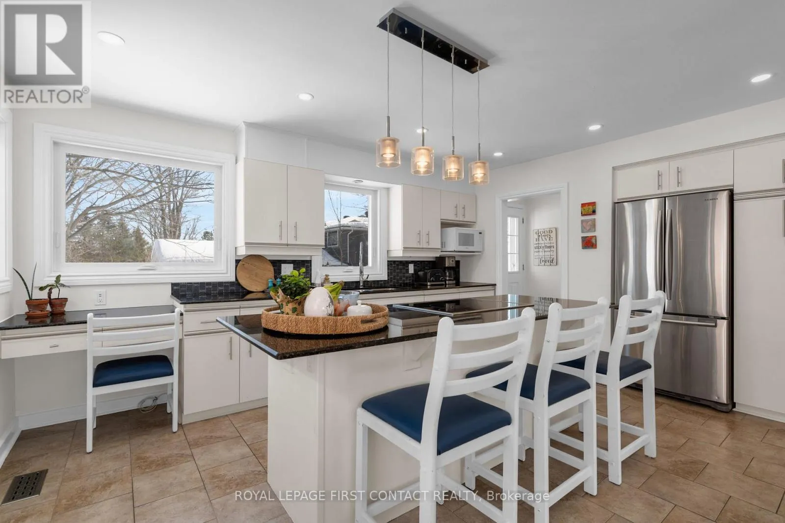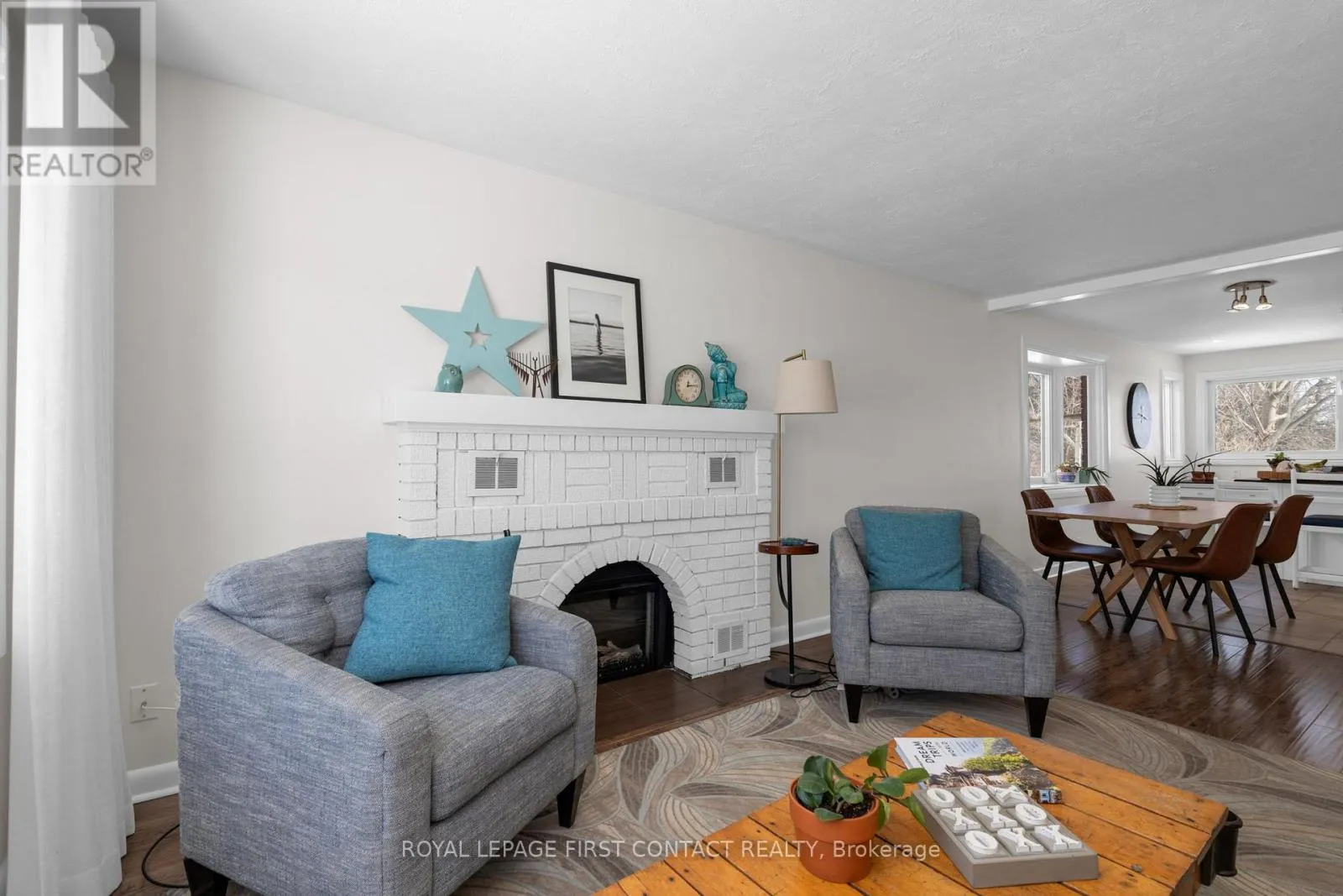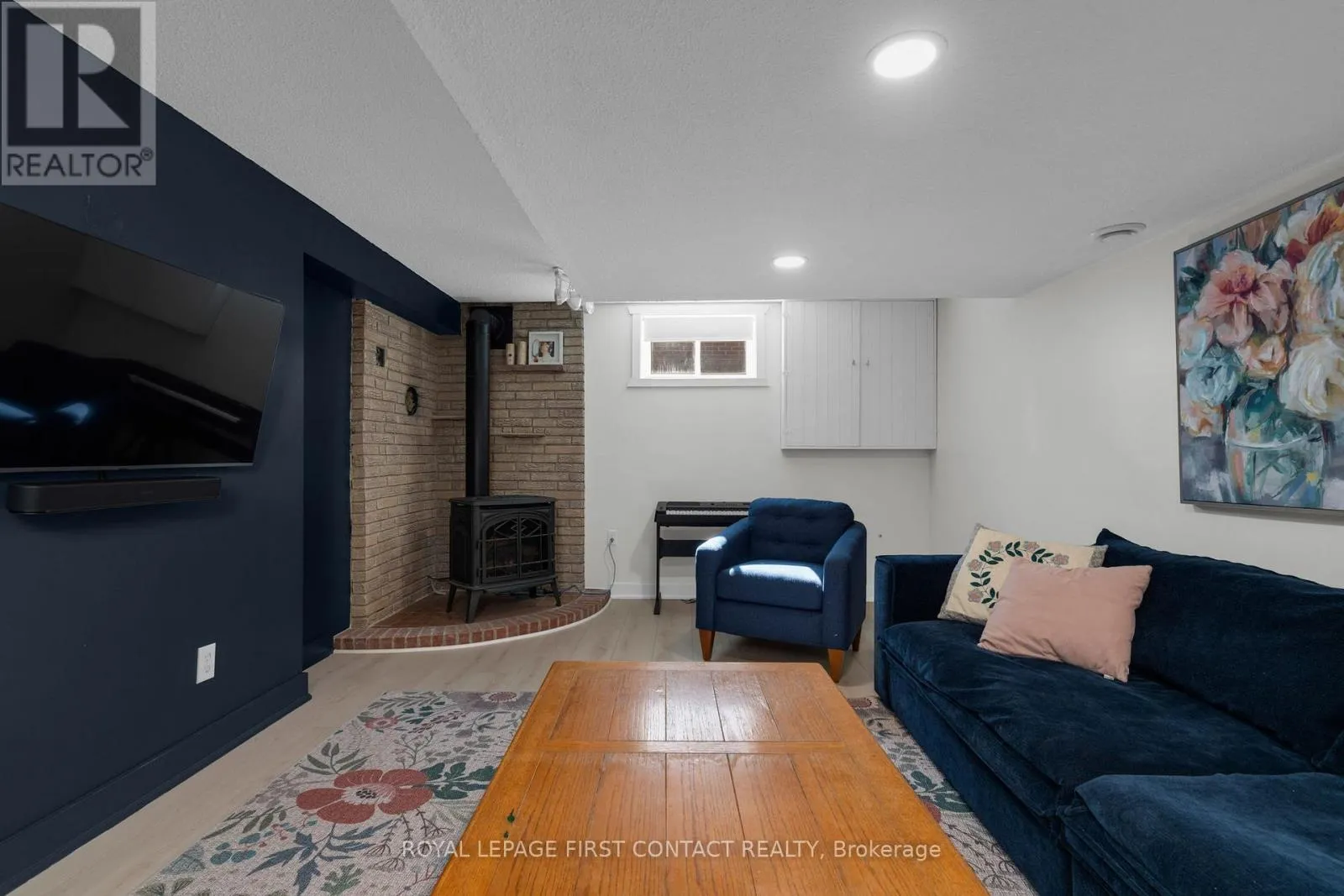 Cross Streets: Codrington St / Rodney St / Napier St. ** Directions: Codrington St, N on Rodney St. Welcome to this charming mid-century red brick bungalow tucked away on a quiet, tree-lined street in Barrie's beloved Codrington neighbourhood. Known for its mature trees, friendly community feel, and easy access to schools, parks, and the waterfront, this east-end pocket is one of the city's most desirable places to call home. From the moment you step onto the covered front porch, you'll feel the warmth this home offers. Inside, the bright open-concept main floor is filled with natural light from large windows, creating an easy, comfortable flow for everyday living. The living and dining area features a cozy electric fireplace and a charming built-in cabinet that adds character and function.Three main-floor bedrooms are served by a full bath with double sinks-perfect for busy family mornings. The modern kitchen is truly the heart of the home, with a large island for gathering, cooking, and connecting, plus direct access to the backyard deck for effortless indoor-outdoor living. Downstairs, the high ceilings and oversized windows make the lower level feel welcoming and bright. A spacious family room with a gas Franklin stove creates the perfect setting for movie nights or relaxed evenings in. An additional large bedroom with an oversized closet and semi-ensuite access offers flexible space for guests, teens, or extended family.The fully fenced backyard is ready for summer-featuring a two-tier deck for barbecues, plenty of room for kids to play, and space to unwind. A carport and garden shed add everyday convenience. With recent updates including new upper windows (2025) and a new front door (2026), this is a home that blends timeless charm with modern comfort - all in a neighbourhood you'll love being part of. (id:27476)