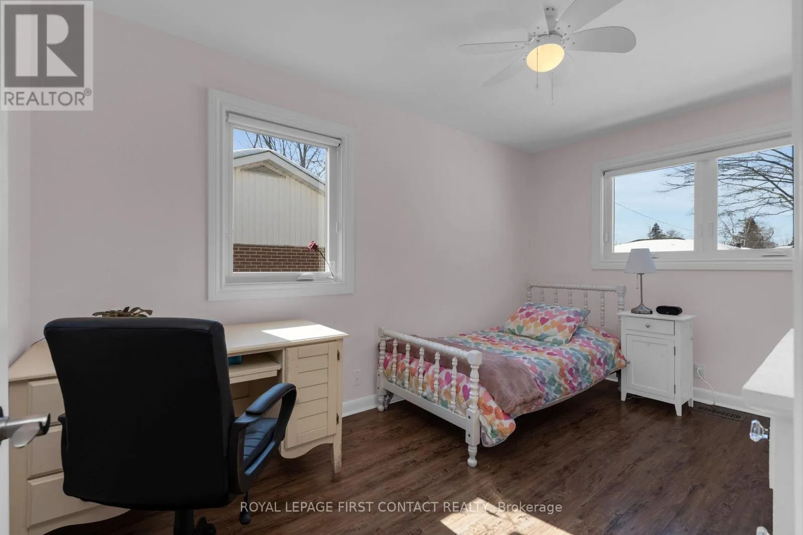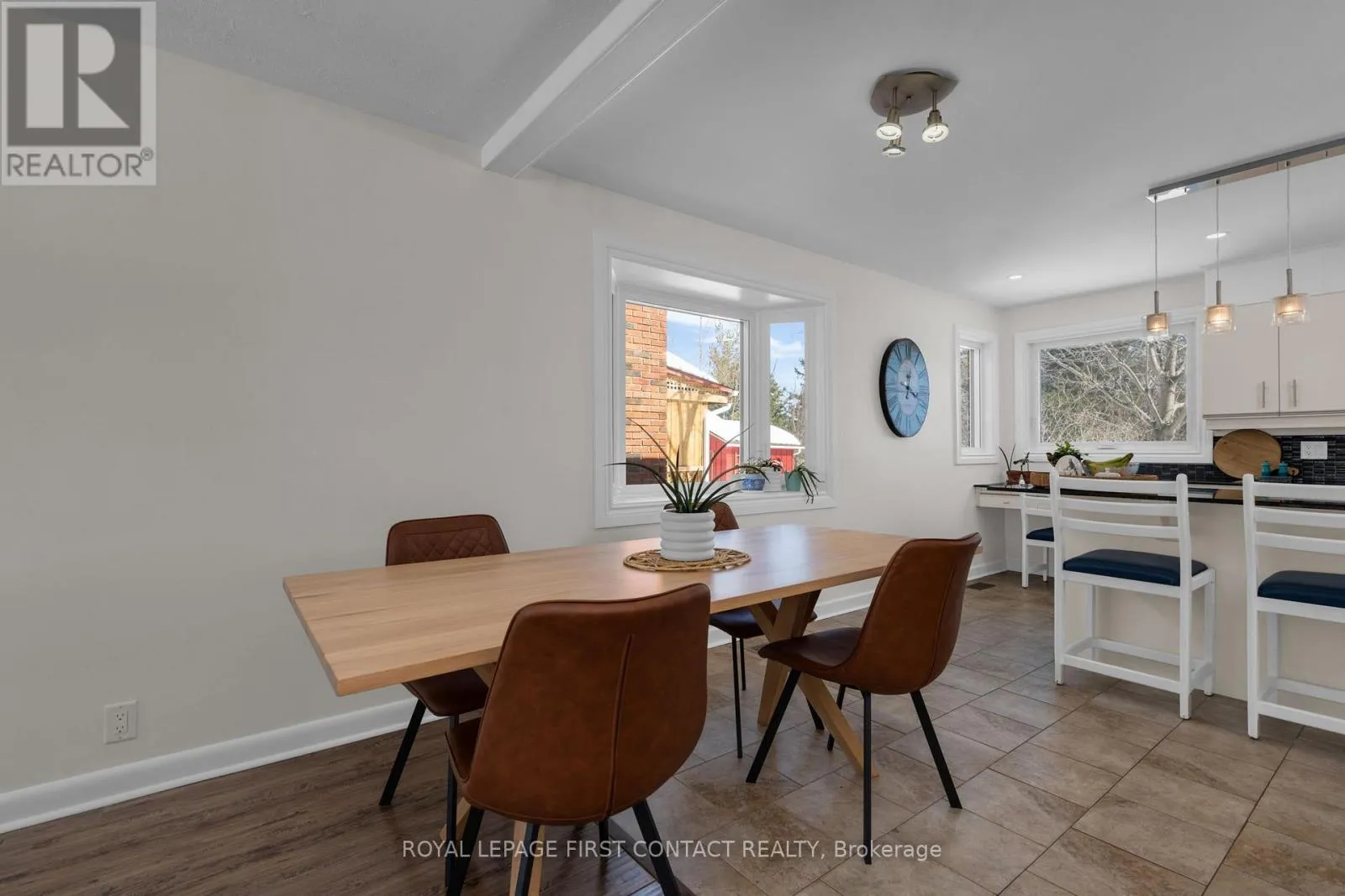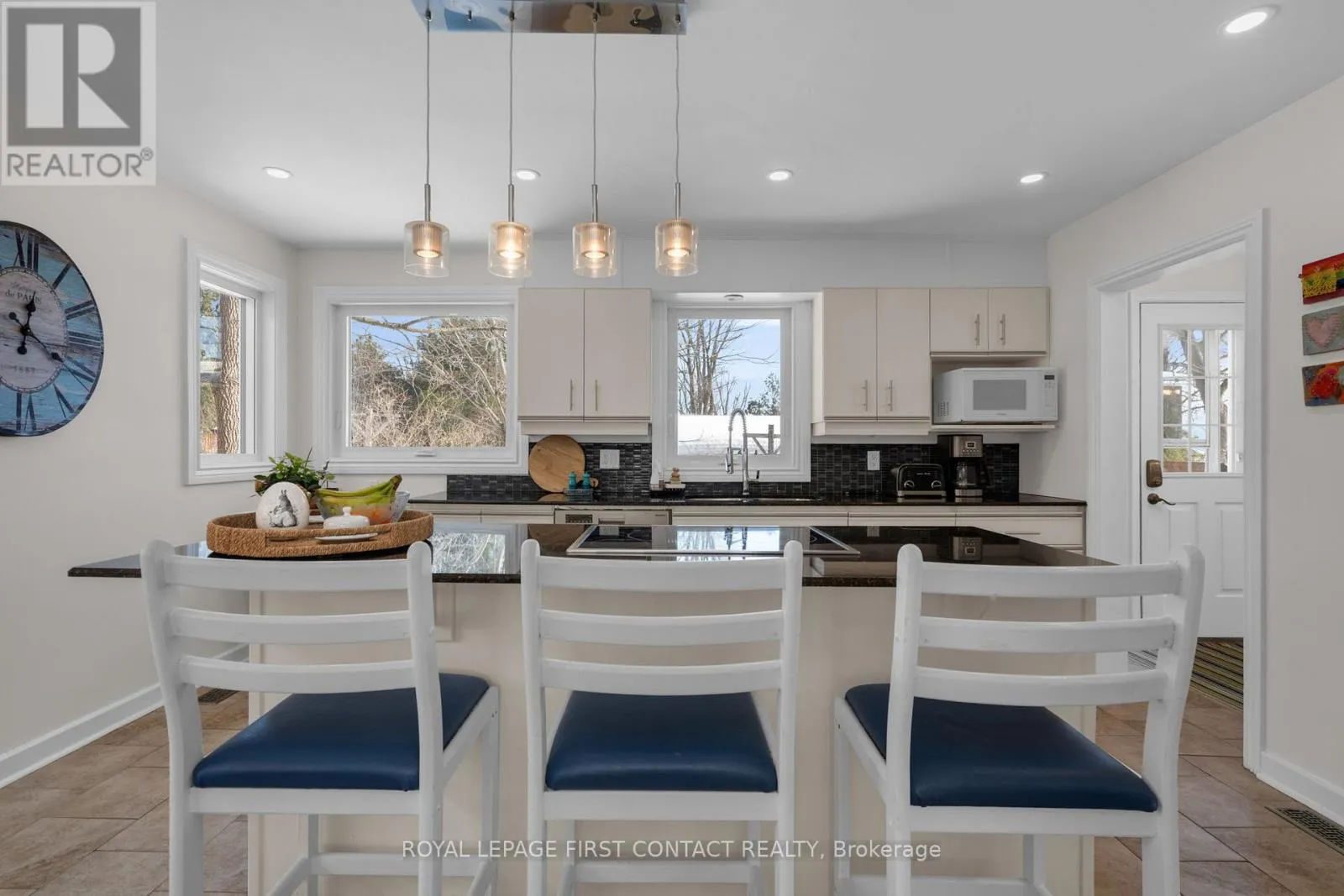 Cross Streets: Codrington St / Rodney St / Napier St. ** Directions: Codrington St, N on Rodney St. Welcome to this charming mid-century red brick bungalow tucked away on a quiet, tree-lined street in Barrie's beloved Codrington neighbourhood. Known for its mature trees, friendly community feel, and easy access to schools, parks, and the waterfront, this east-end pocket is one of the city's most desirable places to call home. From the moment you step onto the covered front porch, you'll feel the warmth this home offers. Inside, the bright open-concept main floor is filled with natural light from large windows, creating an easy, comfortable flow for everyday living. The living and dining area features a cozy electric fireplace and a charming built-in cabinet that adds character and function.Three main-floor bedrooms are served by a full bath with double sinks-perfect for busy family mornings. The modern kitchen is truly the heart of the home, with a large island for gathering, cooking, and connecting, plus direct access to the backyard deck for effortless indoor-outdoor living. Downstairs, the high ceilings and oversized windows make the lower level feel welcoming and bright. A spacious family room with a gas Franklin stove creates the perfect setting for movie nights or relaxed evenings in. An additional large bedroom with an oversized closet and semi-ensuite access offers flexible space for guests, teens, or extended family.The fully fenced backyard is ready for summer-featuring a two-tier deck for barbecues, plenty of room for kids to play, and space to unwind. A carport and garden shed add everyday convenience. With recent updates including new upper windows (2025) and a new front door (2026), this is a home that blends timeless charm with modern comfort - all in a neighbourhood you'll love being part of. (id:27476)