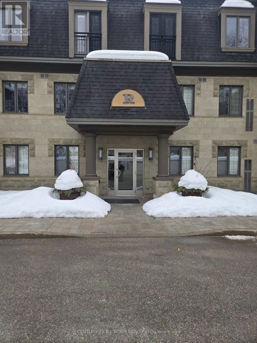 Cross Streets: Collier X Dunlop. ** Directions: Dunlop St E to Collier. Discover the epitome of luxury living at "The Roxborough" Condos in Downtown Barrie! One of Barrie's most stunning works of architecture. This elegant 3-story stone building is surrounded by lush gardens, a private gazebo, and an outdoor dining space. Inside this 2-bedroom second floor unit, you'll find a balcony overlooking the gardens, an open-concept kitchen, dining, and living area, as well as in-suite laundry. This sun filled unit offers great space with an open concept kitchen/living room combo. A large master with two closets and a work space looking out over the gardens. Other features include hardwood floors (no carpet), crown mouldings and a fire place. The building features underground parking, a party room, a guest suite, and visitor parking. Enjoy a hassle-free lifestyle just steps from the Waterfront and Downtown Barrie's vibrant amenities restaurants, shopping, theatres, art galleries, festivals, and the renowned Farmers' Market. Units in this quiet, highly sought-after building are rarely available don't miss your chance! Recent updates include a new roof (2023), a new patio, and a new gazebo. (id:27476)
