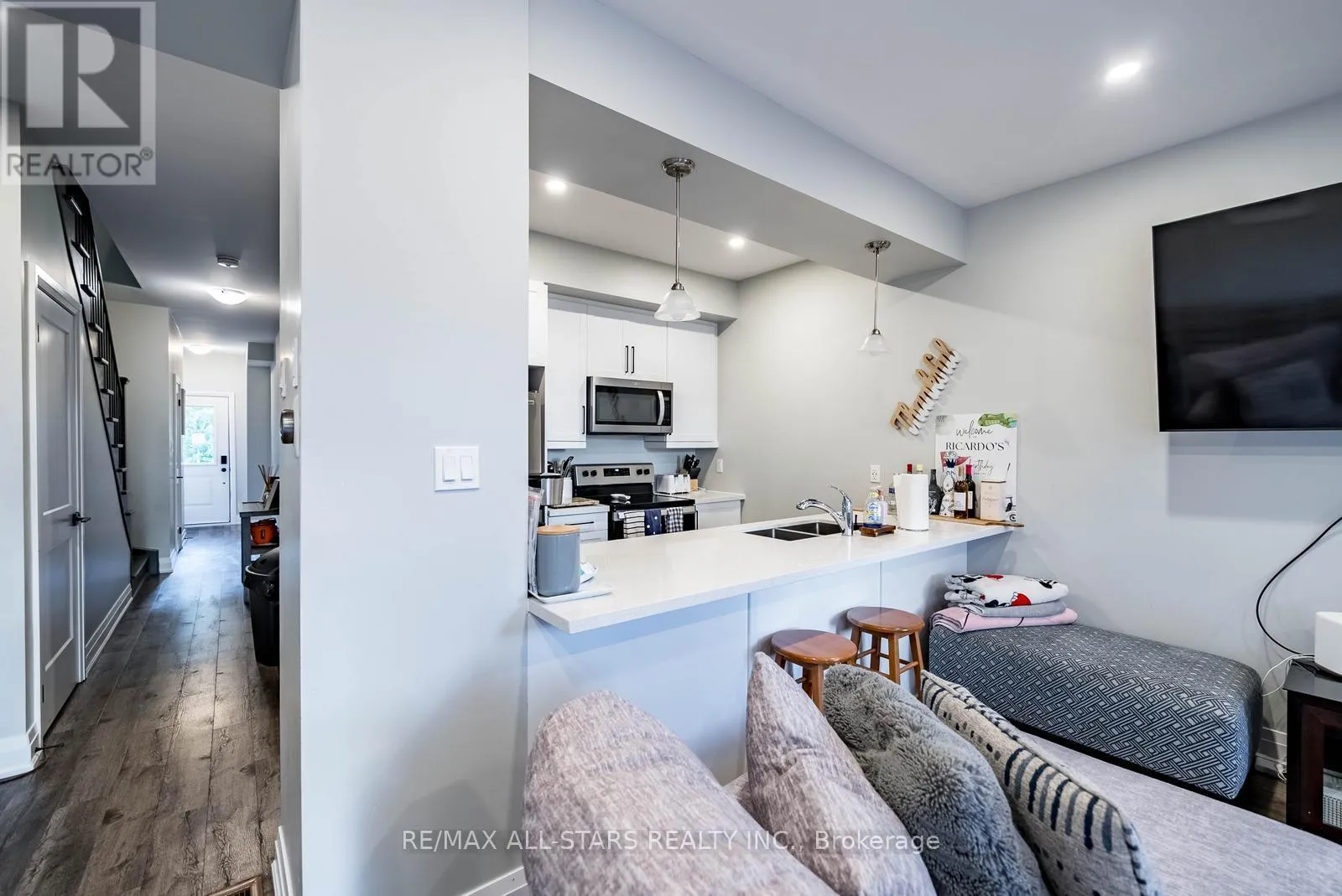 Cross Streets: Livingstone/St Vincent. ** Directions: As per google maps. Look No Further! Luxurious and spacious Executive Townhouse featuring 3 Bedrooms, 3 Bathrooms, in a fantastic complex. Inside you are greeted with many modern finishes and upgrades. Open concept level on the main floor. Stylish powder room with garage access from main floor hallway. 9ft smooth ceilings with pot lights throughout. The kitchen is bright and open with a large centre island and features upgraded white cabinets, Stainless steel appliances, Quartz Counter Tops throughout and a large eat in area. The open living room has a walkout to a fully fenced yard. Upstairs you will find the desired second Floor Laundry. The primary bedroom has a large walk in closet with an Upgraded primary ensuite bathroom featuring Tile & seamless Glass Shower.The basement is Unspoiled For Storage Needs and is waiting for your finishing touches With Large Bright Windows to let in natural light. Min To Georgian Mall, The nearby rec centre, 5 Schools & many more shopping, restaurants and other amenities. There is also easy and constant Transit & Commuter Access. (id:27476)