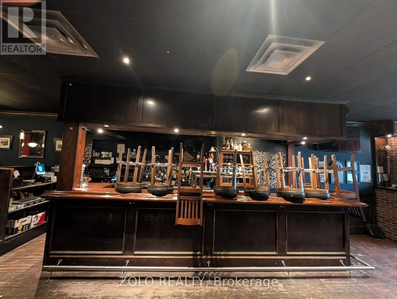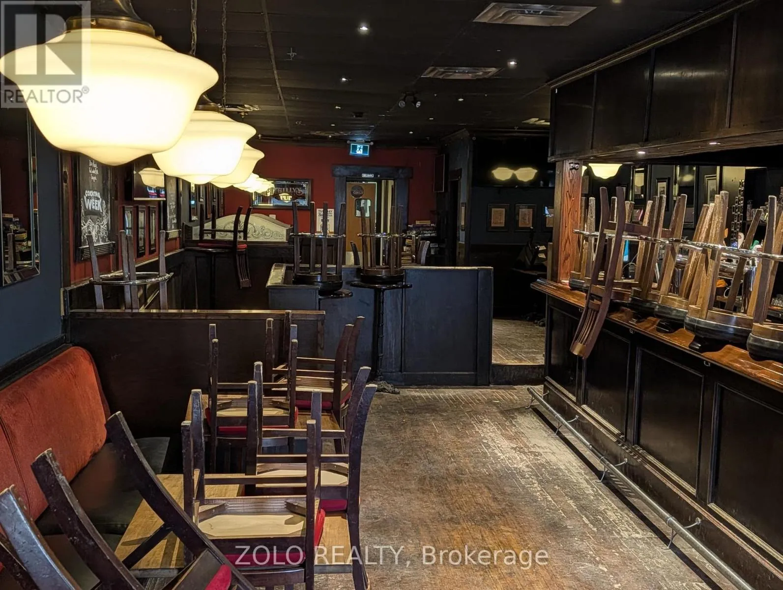Cross Streets: Dunlop and Mulcaster. ** Directions: 0. Rare opportunity to acquire an iconic Barrie Pub, located in the heart of downtown Barrie at 82 Dunlop Street East, with 80 indoor seats and a 20-seat front patio. Liquor licence permits 88 patrons indoors and 20 outdoors. The Pub is situated in Barrie's vibrant downtown entertainment district, an area known for its concentration of restaurants, pubs, nightlife, and waterfront tourism near Kempenfelt Bay, attracting both local patrons and visitors year-round. Current rent is $5,100 per month inclusive of TMI and HST, with a lease in place until September 2027 plus two five-year renewal options, providing long-term operating stability. Sale includes all equipment and chattels, featuring a fully equipped commercial kitchen, bar infrastructure, wonderful millwork and furniture, and stage, allowing continued operation without additional capital investment. This is a rare chance to own a recognized pub brand with a loyal customer base in one of Barrie's busiest hospitality corridors. The business is independent (not franchised), offering flexibility while retaining the benefit of an established clientele. The current owner is willing to provide comprehensive training and transitional support, and may remain involved after closing if desired by the purchaser. (id:27476)