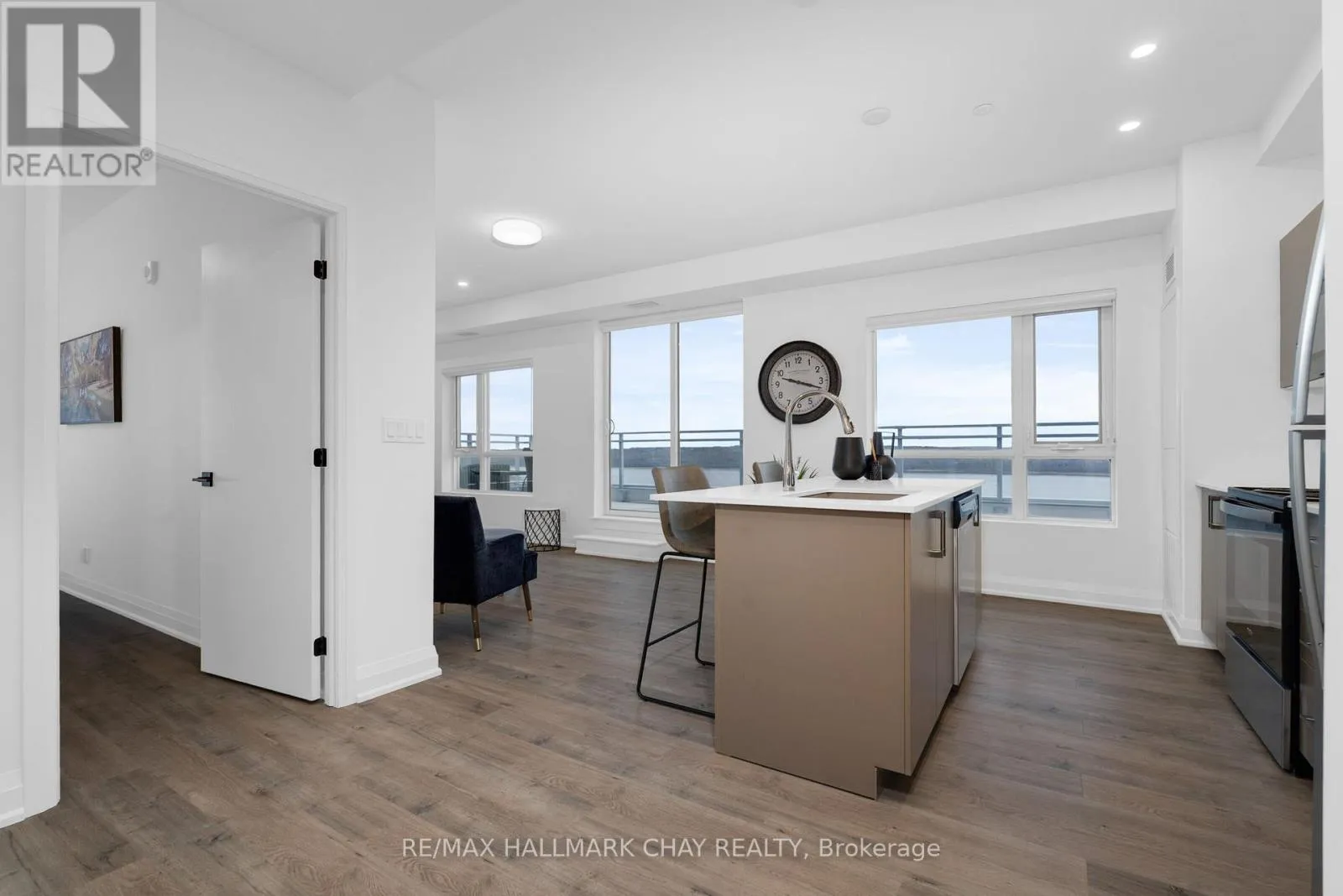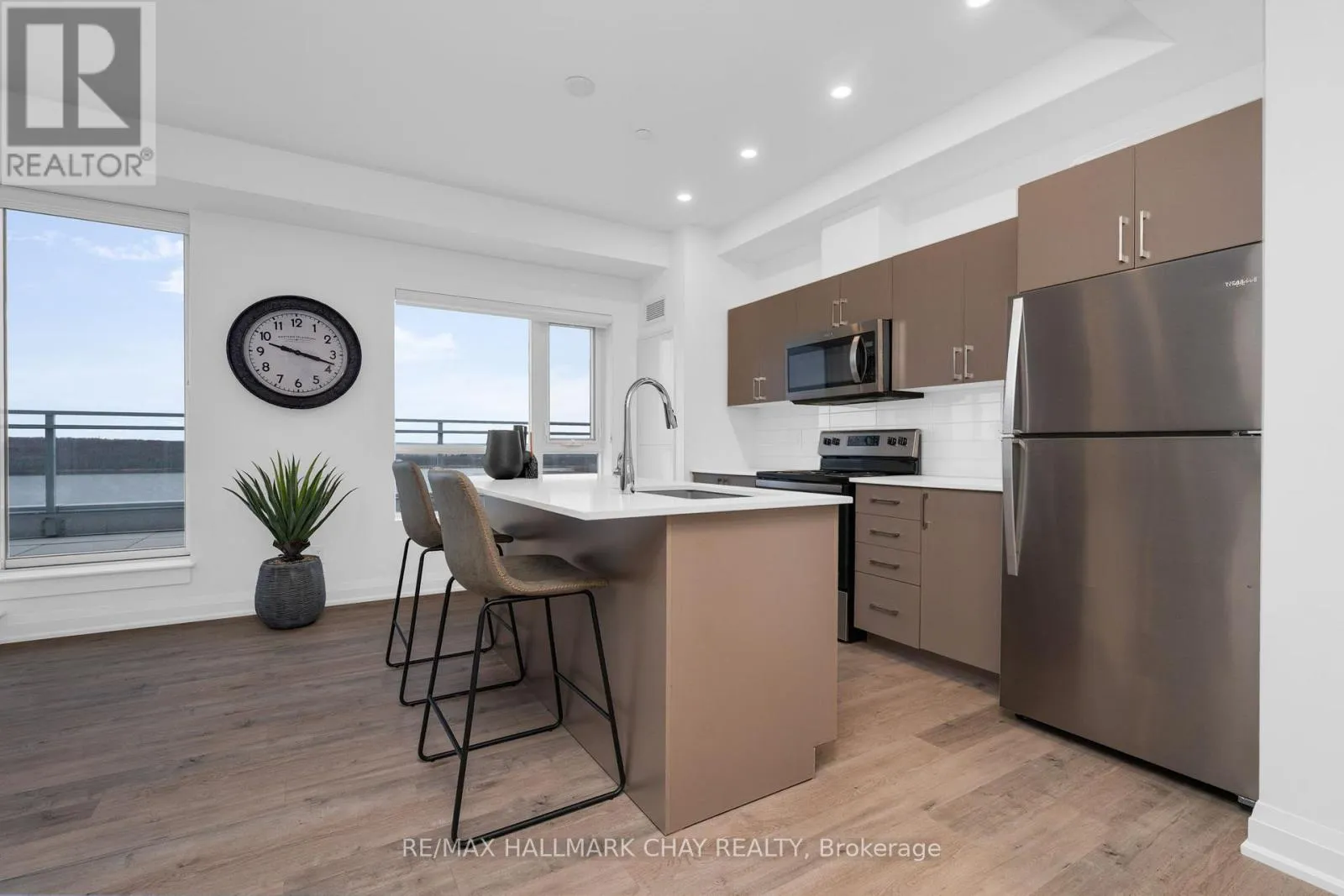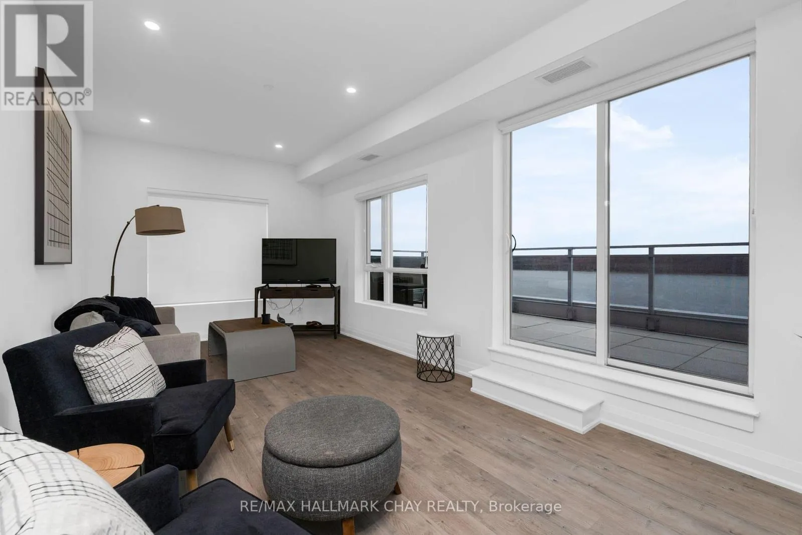 Duckworth / Cundles Rd E PRESENTING LUXURIOUS PENTHOUSE CONDO LIFESTYLE AT 58 Lakeside Terrace. Spacious 1398 sq.ft. penthouse with breathtaking views of Little Lake from 500 sq.ft. terrace. Unique suite with open concept layout, three bedrooms, two baths, ensuite laundry (stacked), two parking spaces and exclusive storage. Tasteful neutral decor throughout with large windows that frame a stunning view, and bathe the space in natural light! Modern chef's kitchen features oversized island, quartz countertops and a walkout to expansive terrace, making indoor-outdoor living effortless. Remote-controlled blinds for added convenience. Huge terrace, accessed from kitchen / living room and primary bedroom, with panoramic views overlooking beautiful Little Lake. The primary suite features lake views, 2 walk in closets, ensuite 5pc bath, and direct access to the terrace. Extend your living space outdoors onto your private oversized balcony - a perfect zone for family time, entertaining, dining alfresco, or simply a private space where you can unwind after a hectic day. Included are 2 underground parking spots. Premium amenities are yours to enjoy - state-of-the-art gym, pet washing station, roof top patio with stunning views, guest suites, games room, visitor parking. Perfectly located with easy access to Hwy 400/11, Georgian College, Royal Victoria Hospital, Allandale Waterfront GO Station, Lake Simcoe's Kempenfelt Bay, shopping, casual and fine dining, services, entertainment, all season recreation and more! Take a look today to appreciate the luxury and convenience of condo life - this upgraded penthouse is truly a move in ready gem! (id:27476)