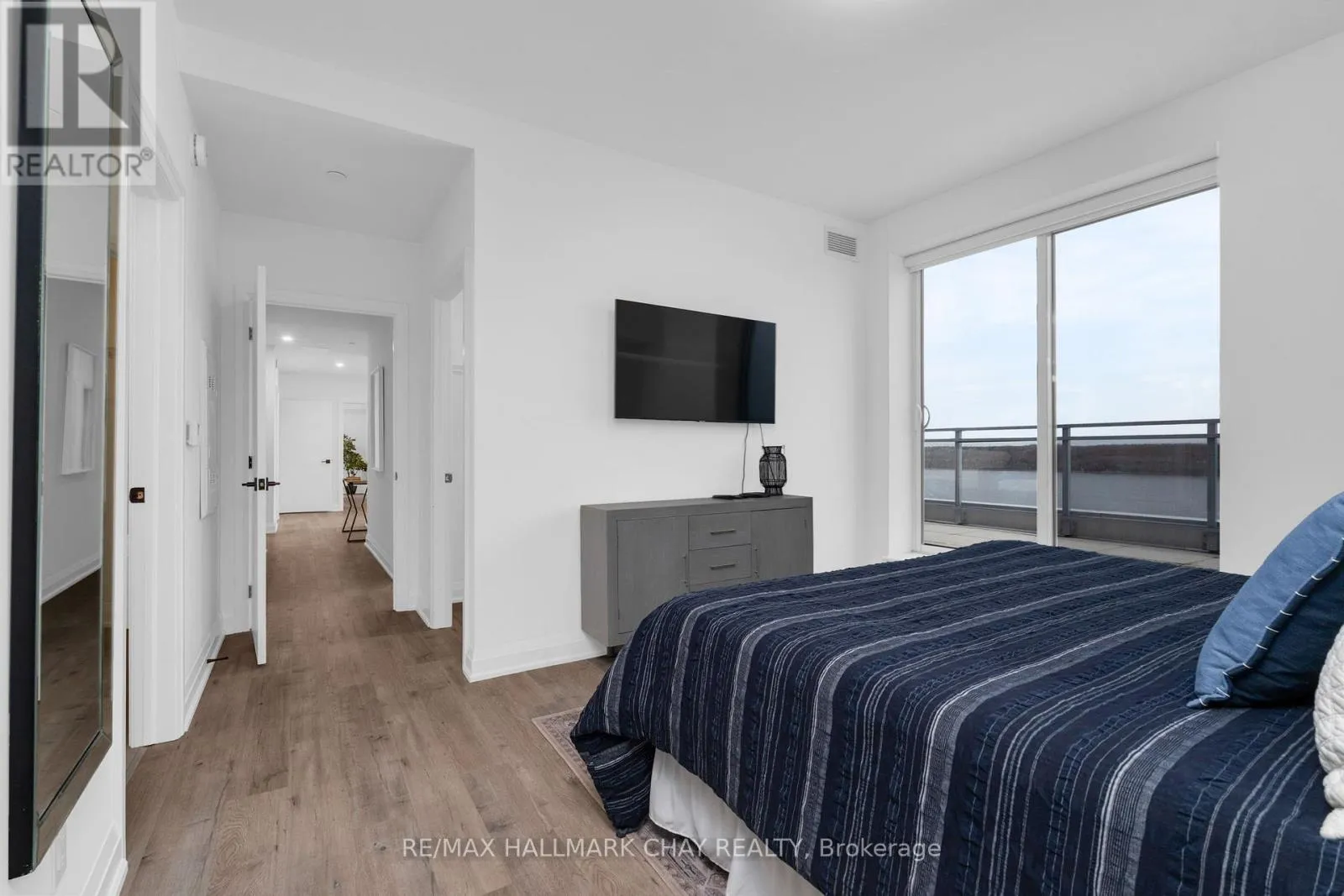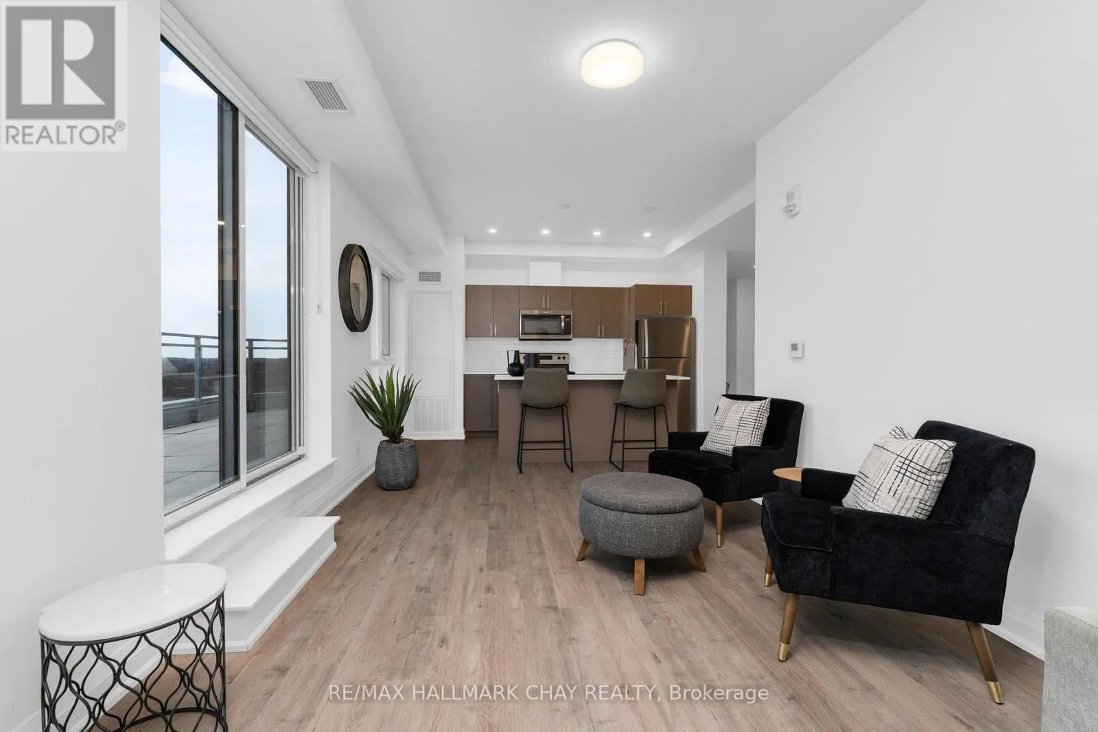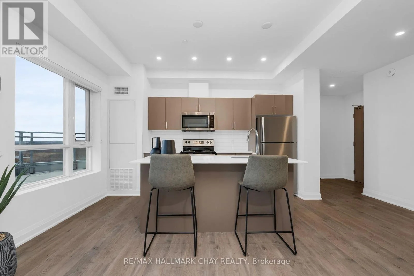 Duckworth / Cundles Rd E PRESENTING LUXURIOUS PENTHOUSE CONDO LIFESTYLE AT 58 Lakeside Terrace. Spacious 1398 sq.ft. penthouse with breathtaking views of Little Lake from 500 sq.ft. terrace. Unique suite with open concept layout, three bedrooms, two baths, ensuite laundry (stacked), two parking spaces and exclusive storage. Tasteful neutral decor throughout with large windows that frame a stunning view, and bathe the space in natural light! Modern chef's kitchen features oversized island, quartz countertops and a walkout to expansive terrace, making indoor-outdoor living effortless. Remote-controlled blinds for added convenience. Huge terrace, accessed from kitchen / living room and primary bedroom, with panoramic views overlooking beautiful Little Lake. The primary suite features lake views, 2 walk in closets, ensuite 5pc bath, and direct access to the terrace. Extend your living space outdoors onto your private oversized balcony - a perfect zone for family time, entertaining, dining alfresco, or simply a private space where you can unwind after a hectic day. Included are 2 underground parking spots. Premium amenities are yours to enjoy - state-of-the-art gym, pet washing station, roof top patio with stunning views, guest suites, games room, visitor parking. Perfectly located with easy access to Hwy 400/11, Georgian College, Royal Victoria Hospital, Allandale Waterfront GO Station, Lake Simcoe's Kempenfelt Bay, shopping, casual and fine dining, services, entertainment, all season recreation and more! Take a look today to appreciate the luxury and convenience of condo life - this upgraded penthouse is truly a move in ready gem! (id:27476)