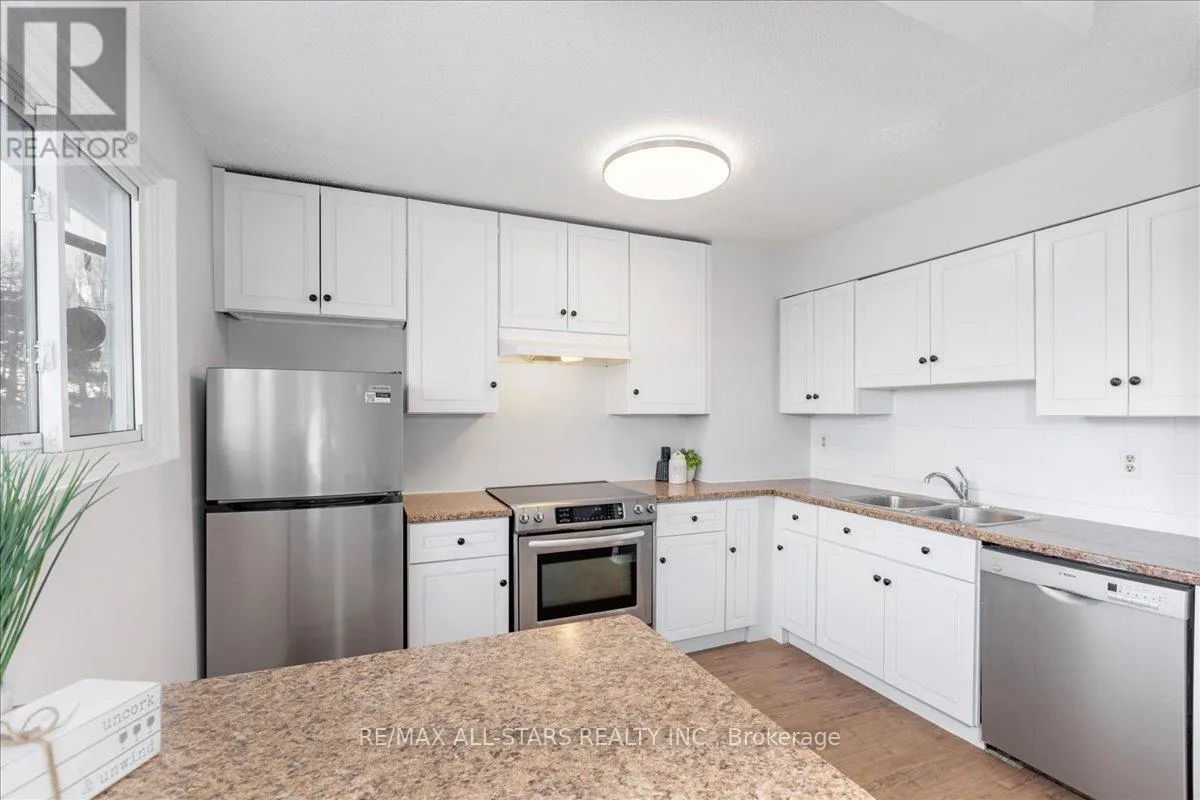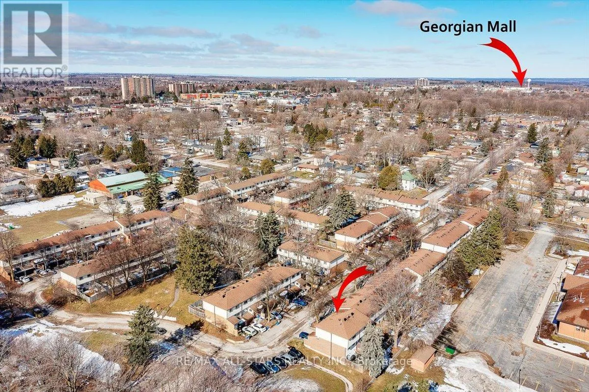 Cross Streets: Bayfield Street/Ferris Lane/B Block. ** Directions: Bayfield to Ferris North. Beautifully renovated 1,216 sq. ft. 3-bedroom townhome with 1.5 baths and a finished walk-out basement, backing onto a private, park-like setting with no rear neighbours.This professionally painted home features a spacious living room with refinished parquet hardwood, new flooring in the entry, kitchen and bathrooms, and new broadloom throughout the basement and stairs. The updated kitchen offers white cabinetry with new hardware and lighting, island, pantry, eat-in area, and sliding doors to a generous 12' x 18' deck.The finished basement includes a powder room with separate shower, walk-out to a fenced yard, and excellent storage. Recent mechanical upgrades include a new furnace and central air (Dec 2025) with transferable 10-year warranties. Roof shingles just replaced. All appliances included: brand new stainless steel fridge (2026, 2-year Costco warranty), stove, dishwasher (as-is), washer and dryer (2025). Recently painted laundry room with full-size appliances and laundry tub.Single-car garage with inside entry, driveway parking for one, and visitor parking steps away.Conveniently located near transit, shopping, restaurants, medical offices, public schools, and Georgian College.Condo fees include exterior maintenance, water, and cable. (id:27476)