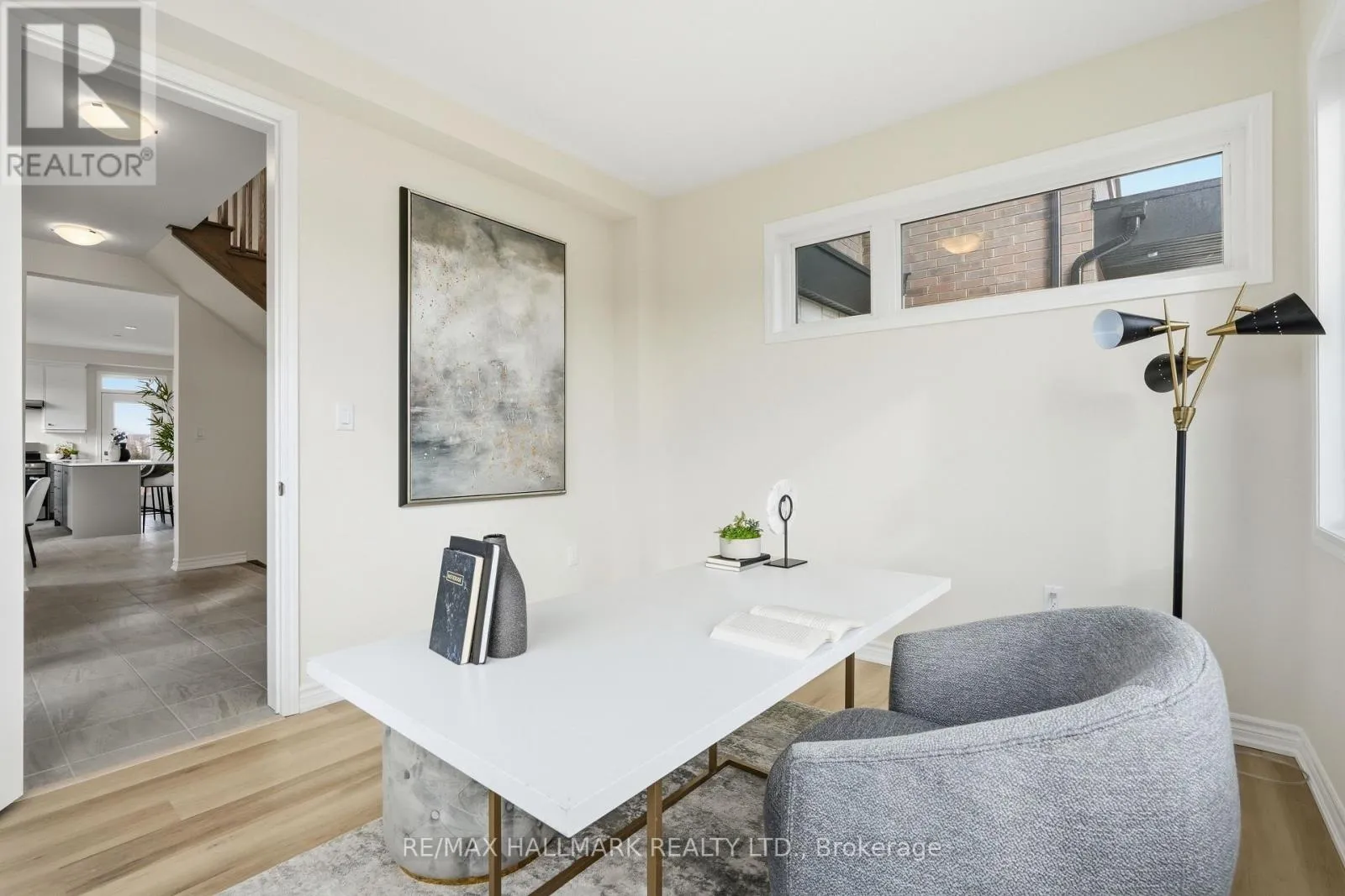 Lockhart and Greer St. Open House Cancelled. Last remaining Corner-Unit freehold townhome backing onto a pond! 1,997 sqft above grade with no POTL or monthly fees. Situated on a generous 35' x 93' lot with no sidewalk, this bright and spacious home offers parking for two on the driveway and beautiful views from nearly every window. The main level is filled with natural light and features an upgraded kitchen with quartz countertops, oversized sink, and stylish two-tone cabinetry, open to a generous living room overlooking the pond and a dedicated dining area. A stunning main-floor office with large windows makes working from home a dream. Upstairs are four spacious bedrooms, including one with massive windows ideal for a second office or creative space. The primary suite enjoys tranquil pond and nature views and features a 4-piece ensuite with double sinks and a beautiful shower. A bright basement with high ceilings and large windows ready for future expansion, this is a rare opportunity to own the last Corner-Unit with pond views in the community. Pre-delivery inspection and Tarion Warranty available. Eligible First-Time Home Buyers may receive up to an additional 13% savings through the proposed Government FTHB Rebate Program (subject to eligibility and program approval). (id:27476)