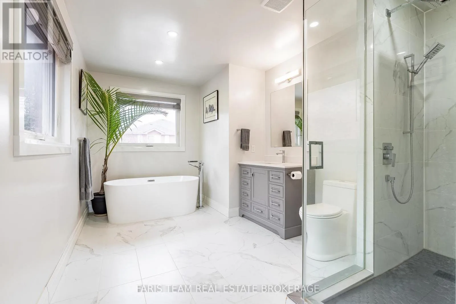 Livingstone St E/Meyer Ave Top 5 Reasons You Will Love This Home: 1) Beautifully updated and move-in ready all-brick home in Barrie's desirable East Bayfield community, offering over 2,200 square feet of finished living space and exceptional curb appeal in a family-friendly neighbourhood 2) Spacious and functional main level featuring a bright eat-in kitchen with upgraded cabinetry, quartz countertops, a stunning tile backsplash, stainless-steel appliances, and a walkout to the backyard with a custom deck, perfect for entertaining or relaxing outdoors, plus enjoy a welcoming family room flaunting a cozy gas fireplace and generous space for everyday living 3) Thoughtfully curated upper level with four generous bedrooms, including a beautiful primary retreat complete with a walk-in closet and a renovated ensuite bathroom with a soaker tub and custom tiled glass shower, creating the perfect space to decompress after a busy day 4) Move in with confidence knowing key updates have been completed, including new flooring, an upgraded kitchen (2024), recessed lighting and smooth ceilings throughout, exterior recessed lighting, new windows (2022), and more, alongside an unfinished basement presenting an incredible opportunity to curate your dream space, already featuring a bathroom rough-in, ample storage space, and a cold room, all awaiting your personal touches 5) A fully fenced backyard, a garage with inside entry through the main level laundry room, and generous family living space further enhance the home's functionality, while the exceptional location places you close to top-rated schools, parks, and the East Bayfield Community Centre, with convenient access to Bayfield Street amenities, Georgian Mall, public transit, and Highway 400. 2,235 above grade sq.ft. plus an unfinished basement. (id:27476)