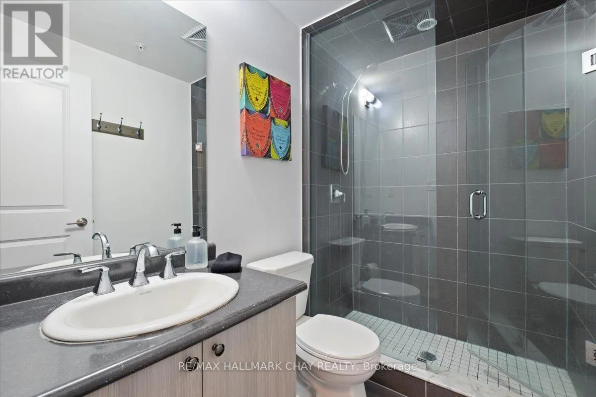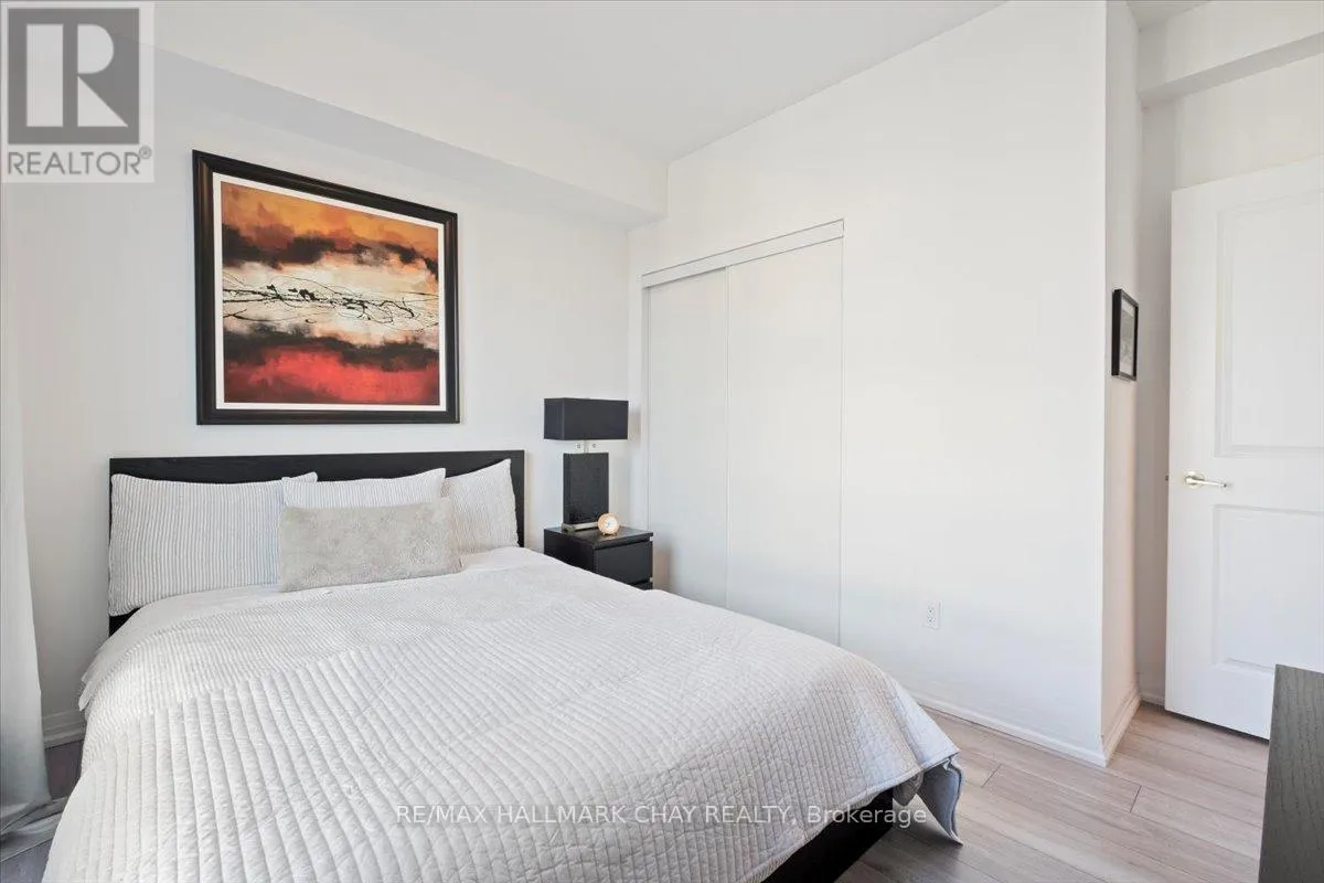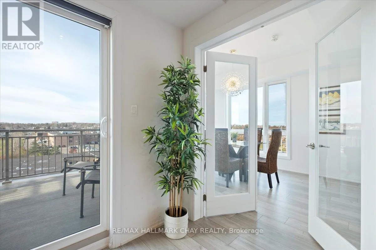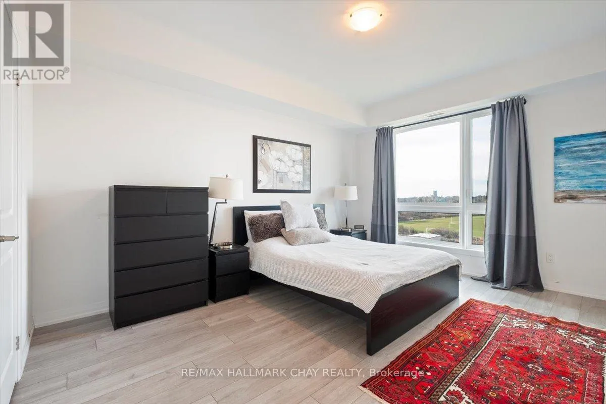 Cross Streets: Livingstone and Cundles Rd E. ** Directions: St Vincent St to Cundles Rd East. Welcome to The Junction in Barrie, where style, space, and convenience come together in this beautifully upgraded corner suite. This spacious 2-bedroom plus den, 2-bathroom condo offers approximately 1,240 sq. ft. of bright, open living space designed for both comfort and entertaining.The gorgeous modern kitchen is the heart of the home, featuring a large centre island with seating, quartz countertops, pot drawers, stainless steel appliances, and pot lights. The open layout flows seamlessly into the generous living room, where large windows fill the space with natural light and a walk-out leads to the covered wrap-around balcony. From this northwest corner vantage point, enjoy quiet skyline views overlooking open fields-truly one of the best locations in the building.The primary bedroom retreat offers plenty of space, complete with a walk-in closet and a private ensuite bath. A versatile den provides the perfect spot for a home office, reading nook, or guest space. Additional features include in-suite laundry with extra storage, quality laminate flooring throughout (carpet-free), 9-foot ceilings, and a water softener.This suite also includes two parking spaces-one underground and one surface-and a storage locker conveniently located with the indoor parking.Ideally situated just steps from the shops and services at North Barrie Crossing, you'll have groceries, restaurants, shopping, theatres, and medical services all within walking distance. Plus, you're just minutes to Highway 400, Royal Victoria Regional Health Centre, Georgian College, and Little Lake, making commuting and daily errands incredibly convenient. (id:27476)
