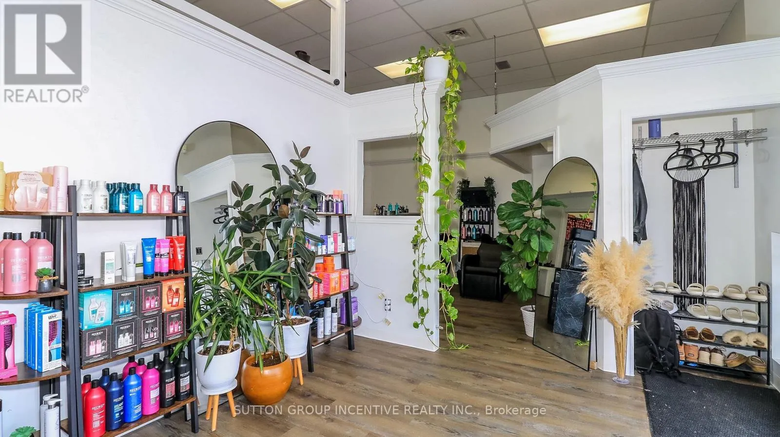 Cross Streets: Dunlop/Cedar Pointe. ** Directions: Dunlop to Cedar Pointe. Beautifully renovated boojie style hair salon, in business at this location for over 3 years. Turn key for a fresh new start, suitable for someone looking to walk in with their own clientele & possibility of keeping current stylists on board w/additional fee in taking over space. Please do not go direct. No walk ins or inquiries during business hours. Discretion is mandatory. (id:27476)
