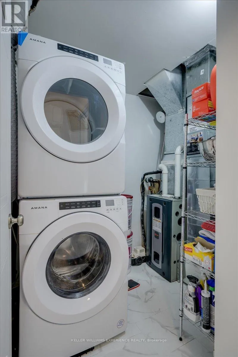 Cross Streets: YONGE STREET. ** Directions: YONGE STREET TO D'AMBROSIO DR. Sun-filled and beautifully updated, this 3-bedroom, 2-bath stacked condo townhome offers stylish, low-maintenance living in a quiet, convenient neighbourhood close to shopping, schools, the GO Train, commuter routes, and the lake. Renovated in 2022 by the current owner, the home features a stunning updated kitchen with quartz countertops and gray shaker cabinets, an undermount double stainless sink, backsplash, stainless steel appliances, and new laminate, vinyl, and broadloom flooring throughout. Both bathrooms have been fully renovated, and the interior has been painted in neutral tones, creating a bright, warm, and modern feel. Large windows bring in abundant natural light from all directions, while each bedroom offers a full-size closet and generous window space. Additional features include in-suite laundry, a gas furnace (2022), central air conditioning (2023), newer vinyl double-hung tilt windows, a new front door with screen door, a spacious deck, dedicated parking, and clear pride of ownership throughout. Spacious and suitable for all ages, this well-maintained property also offers very affordable condo fees ($383.00) that cover all the exterior maintenance and common areas, making for easy, worry-free living. (id:27476)