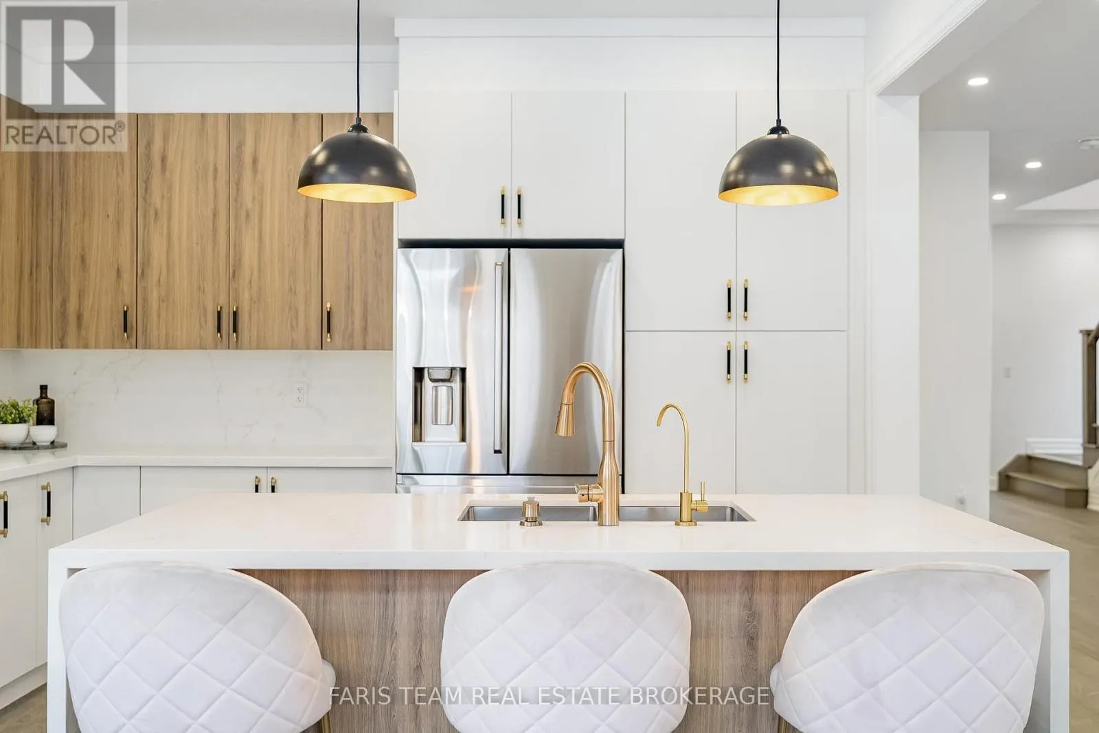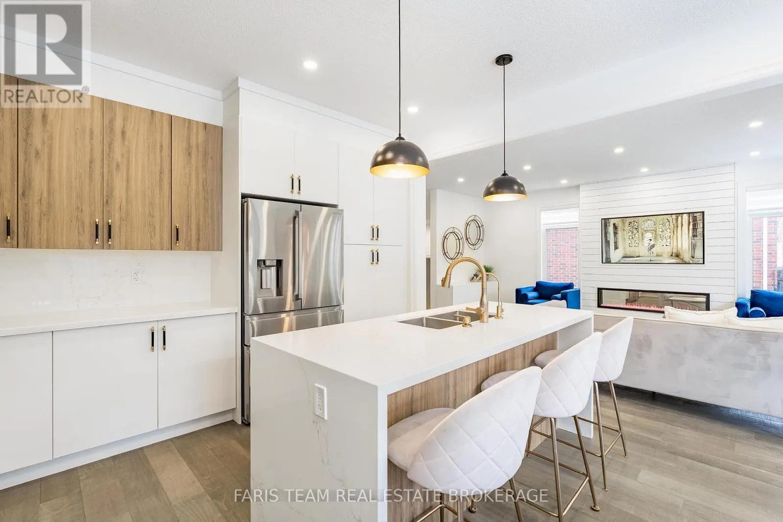 Wright Dr/Auburn Ct Top 5 Reasons You Will Love This Home: 1) Built in 2021, this sophisticated two-storey residence showcases the very best of modern construction, thoughtfully crafted with upscale finishes and refined architectural details throughout, from tall ceilings and rich engineered hardwood flooring on the main level to elegant trim work, wainscoting, and curated accent features, creating a space that feels both luxurious and welcoming 2) The kitchen is a true focal point of the main level, designed for both entertaining and daily family life, flaunting quartz countertops, a striking waterfall island, and an eat-in layout, creating a space that is as functional as it is beautiful 3) Fully finished lower level boasting exceptional versatility, featuring its own separate side entrance, a full bathroom, a wet bar, and an impressive home theatre setup complete with projector, screen, and built-in speakers, perfect for a movie room, a hangout space for family and friends, or an extended living area 4) Upstairs, the home continues to impress with four generously sized bedrooms, two full bathrooms, and the convenience of an upper level laundry room, while the primary bedroom is a standout, offering a fantastic amount of space, a large walk-in closet, and a modern ensuite bathroom 5) Located in the highly sought-after Ardagh neighbourhood, this home is just a short walk to schools, parks, and the Ardagh Bluffs trail system, plus quick access to Highway 400, nearby amenities, and a garage already wired for an electric vehicle charger. 2,457 above grade sq.ft. plus a finished lower level. (id:27476)