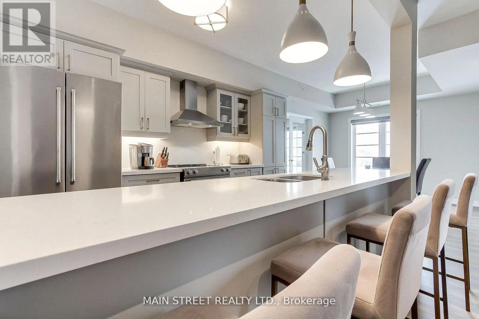 Cross Streets: Mapleview/Essa. ** Directions: Essa to Koda. Welcome to 20 Koda Street, Unit 402, a stunning top-floor condo in the heart of Barrie offering 1,464 sq. ft. of beautifully upgraded living space. This spacious corner unit boasts an open-concept layout with abundant natural light, featuring modern finishes and thoughtful upgrades throughout. The upgraded kitchen showcases quartz countertops, stainless steel appliances, a stylish backsplash, and extended cabinetry-perfect for cooking and entertaining. The living area flows seamlessly to a private balcony with serene views, ideal for relaxing outdoors. With three generous bedrooms with bedroom 3 currently used as an office, upgraded flooring, custom lighting, and two full bathrooms including a luxurious ensuite, this condo combines elegance and comfort. Conveniently located near parks, shopping, schools, and Highway 400, this move-in-ready home is perfect for those seeking upscale condo living in one of Barrie's most desirable communities. (id:27476)