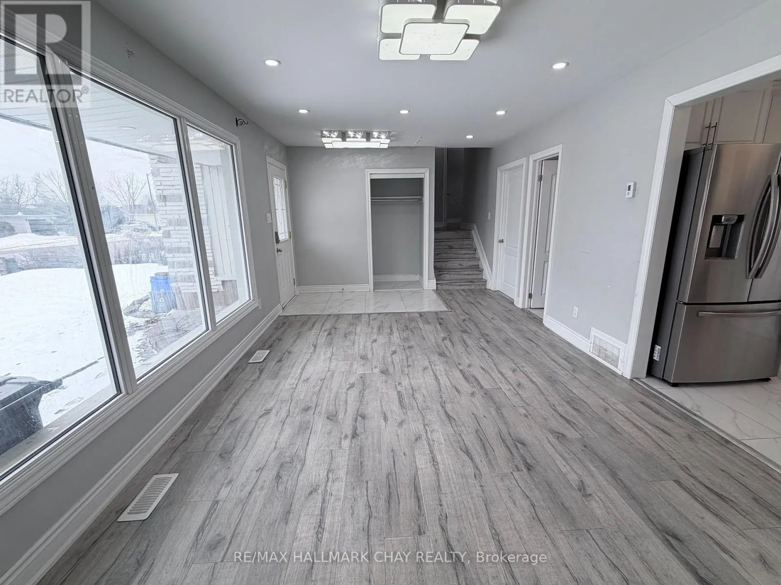 Cross Streets: ST VINCENT & ROSE. ** Directions: HWY 400 NORTH TO BAYFIELD EXIT TO ROSE STREET. Welcome to this bright main-level unit located in the highly sought-after north end of Barrie. This spacious side-split home offers an ideal layout for families or professionals alike, featuring three generous bedrooms and one and a half bathrooms. The interior is finished with modern touches, including sleek flooring and a contemporary kitchen equipped with stainless steel appliances, ample cabinetry, and a stylish backsplash. The living area is bathed in natural light from large windows, creating a warm and inviting atmosphere for relaxation or entertaining. Residents will enjoy the convenience of two dedicated parking spaces and access to shared laundry facilities. The property also boasts a large shared backyard, perfect for enjoying the outdoors. The location of this home is truly exceptional, offering quick access to HWY 400 for commuters and close proximity to essential amenities including Georgian College, the Royal Victoria Regional Health Centre, various schools, and local shopping centres. The tenant is responsible for 2/3 of the total utility costs and the hot water heater rental. (id:27476)