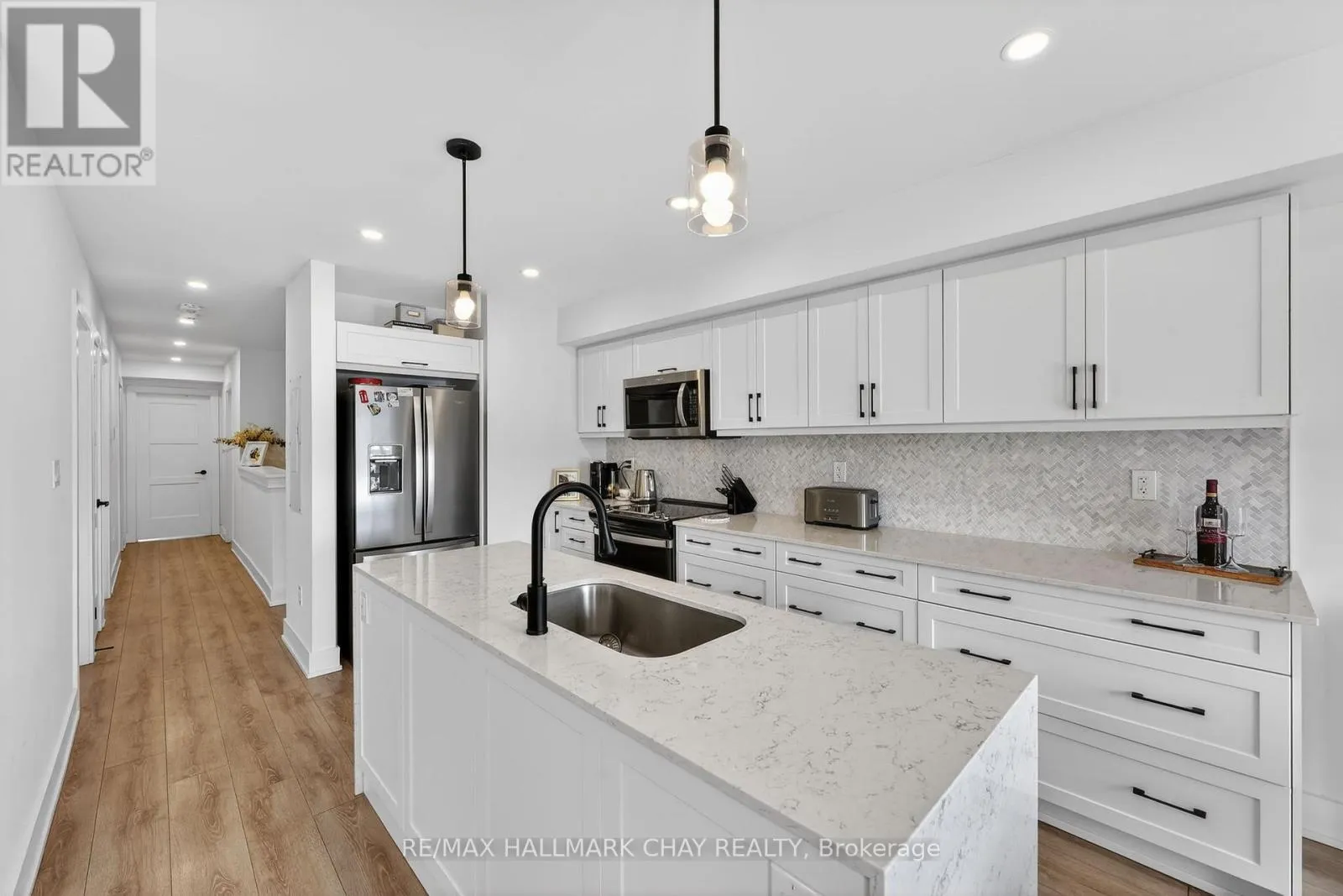 Mapleview Dr E / Prince William Way Stylishly Upgraded Condo Townhome In Barrie's Desirable Southeast End. Step Into This Beautifully Upgraded Condo-Townhome That Seamlessly Blends Modern Design With Practical Living. No Detail Was Overlooked & No Expense Sparred Featuring An Oversized Kitchen Outfitted With White Shaker-Style Cabinetry, Soft-Close Doors, Sleek Black Hardware, Upgraded Black Faucets, Under-Cabinet Lighting, And A Premium Stainless Steel Appliance Package. The Show stopping Oversized Island Boasts Quartz Waterfall Countertops, Perfect For Entertaining. Enjoy Open-Concept Living With Pot Lights And High-End Vinyl Flooring Throughout. The Spacious Living Room Is Flooded With Natural Light From Large South-Facing Windows, Complemented By 'Hunter-Douglas' Automatic Blinds And A Generous Balcony Ideal For BBQs And Soaking In The Sunshine. You'll Find Three Spacious Bedrooms, All With Upgraded Closet Doors, Black Hardware, And Continued Vinyl Flooring. The Primary Retreat Includes A Walk-In Closet And A Beautifully Finished 3-Piece Ensuite With A Glass Walk-In Shower And Quartz Vanity. The Two Additional Bedrooms Share A Modern 4-Piece Bathroom, Also With Quartz Countertops. Additional Highlights Include A 1-Car Garage With Inside Entry And An Automatic Door Opener, A Dedicated Outdoor Area With Potential For A Private Fenced Yard, And Visitor Parking For Guests. Conveniently Located Near Park Place, Friday Harbour, Beaches, Top-Rated Schools, Golf Courses, And Everyday Amenities. Also Easy Access To Go-Train & Highway 400 For Commuters Or Going To The GTA For More Entertainment. (id:27476)