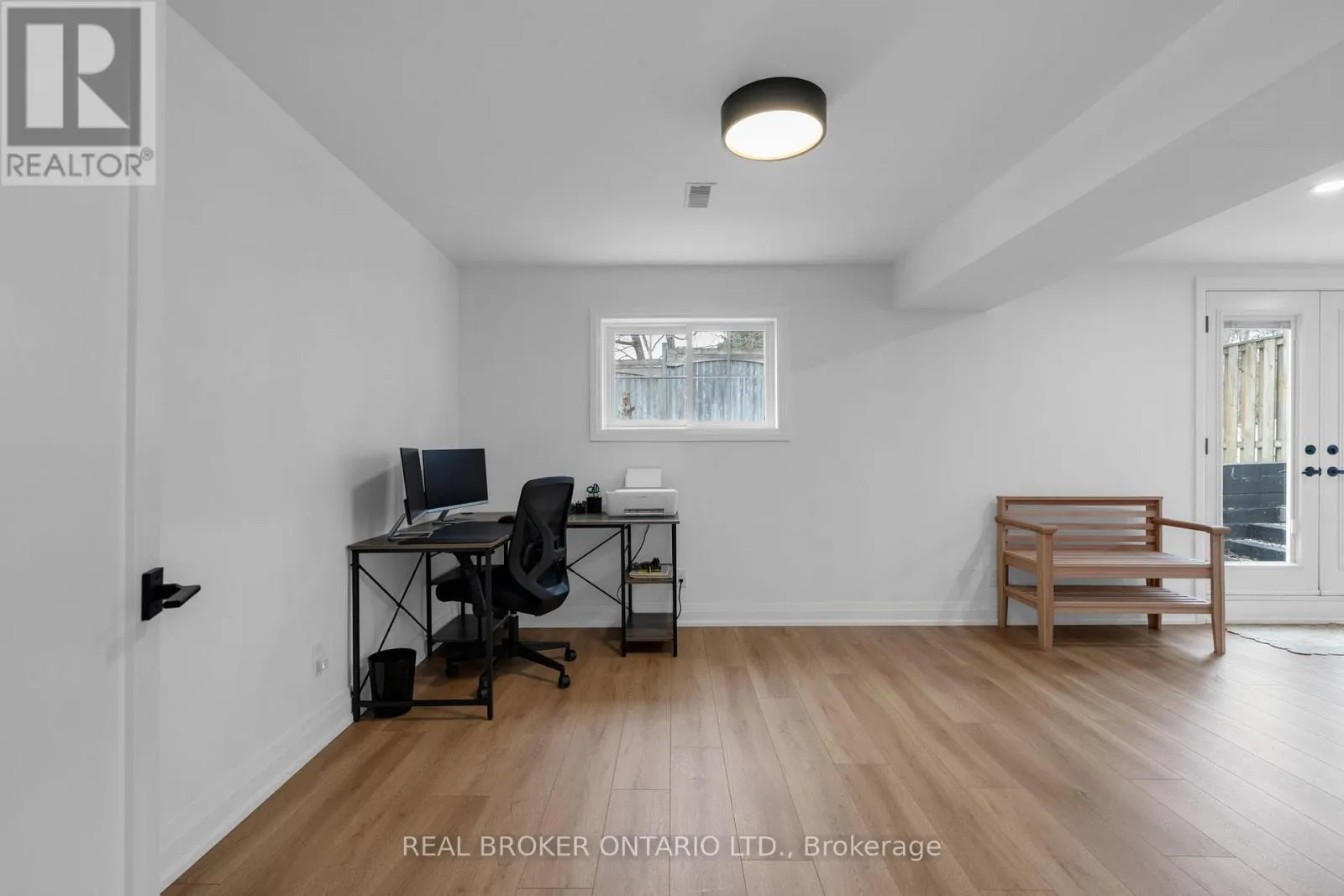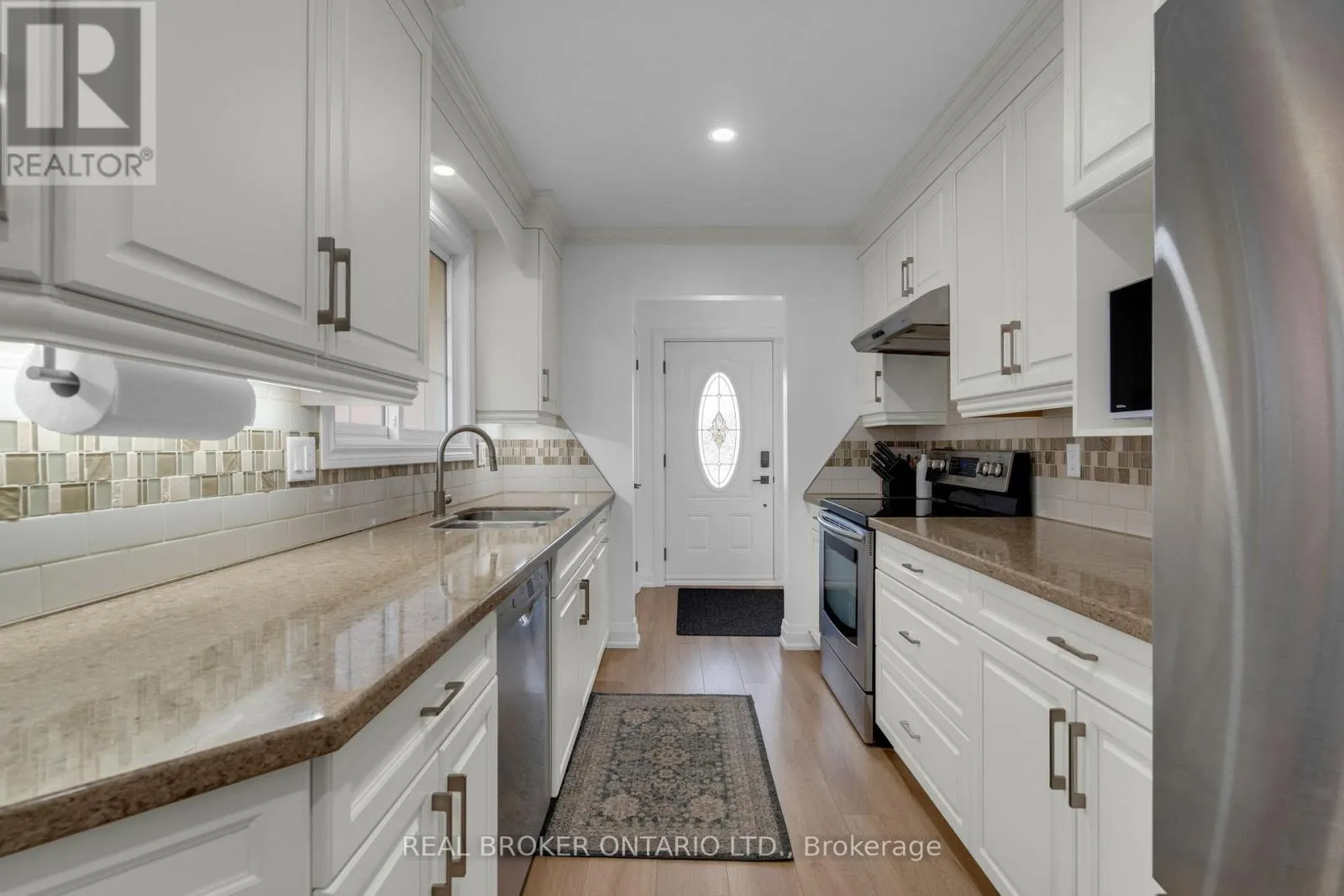 Cross Streets: Steel and Blake Street. ** Directions: Steel to Buchanan. *OVERVIEW* Beautifully maintained backsplit in Barrie's sought-after east end, offering approximately 1,800 sq ft of finished living space just steps to a park. Situated on a quiet street with great neighbours, minutes to the waterfront, schools, and all amenities.*INTERIOR* Bright and updated throughout with engineered hardwood flooring, updated trim, pot lights, California shutters, and fresh paint. Renovated kitchen features stone countertops and stainless steel appliances. Functional layout with 3 bedrooms above grade, spacious living areas, separate dining room, and a large unfinished basement, excellent storage, including a cold room.*EXTERIOR* Private fenced backyard with walkout from the lower level. All brick exterior and ample parking with no sidewalk.*NOTABLE* Updated windows, interior doors and hardware, Napoleon furnace (2018), and A/C (2018) Truly a turnkey home looking for its next owner. (id:27476)