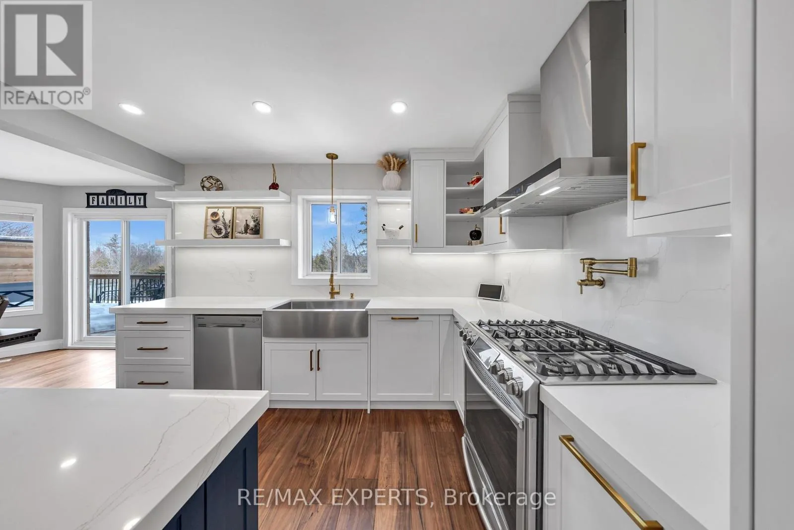 Cross Streets: Ferndale Dr S and Tiffin St. ** Directions: East West. Welcome to 28 Bishop Drive in the heart of beautiful Barrie-an exceptional family home offering 2,462 sq. ft. of thoughtfully designed living space. This well-maintained 4-bedroom, 3-bathroom residence features a stunning, newly renovated kitchen equipped with state-of-the-art appliances, perfect for both everyday living and entertaining. The inviting living area is highlighted by a beautiful stone-faced fireplace-perfect for cozy nights in. Upstairs, you'll find an extra-large primary bedroom complete with a walk-in closet and a private ensuite bath, offering the ideal retreat. Enjoy the convenience of a double-car garage and spacious interiors filled with natural light. What truly sets this home apart is its premium lot, backing onto protected green space with a tranquil pond-offering breathtaking views, ultimate privacy, and a serene connection to nature right in your backyard. Nestled in a desirable, family-friendly neighbourhood close to all amenities, this is a rare opportunity you won't want to miss. (id:27476)