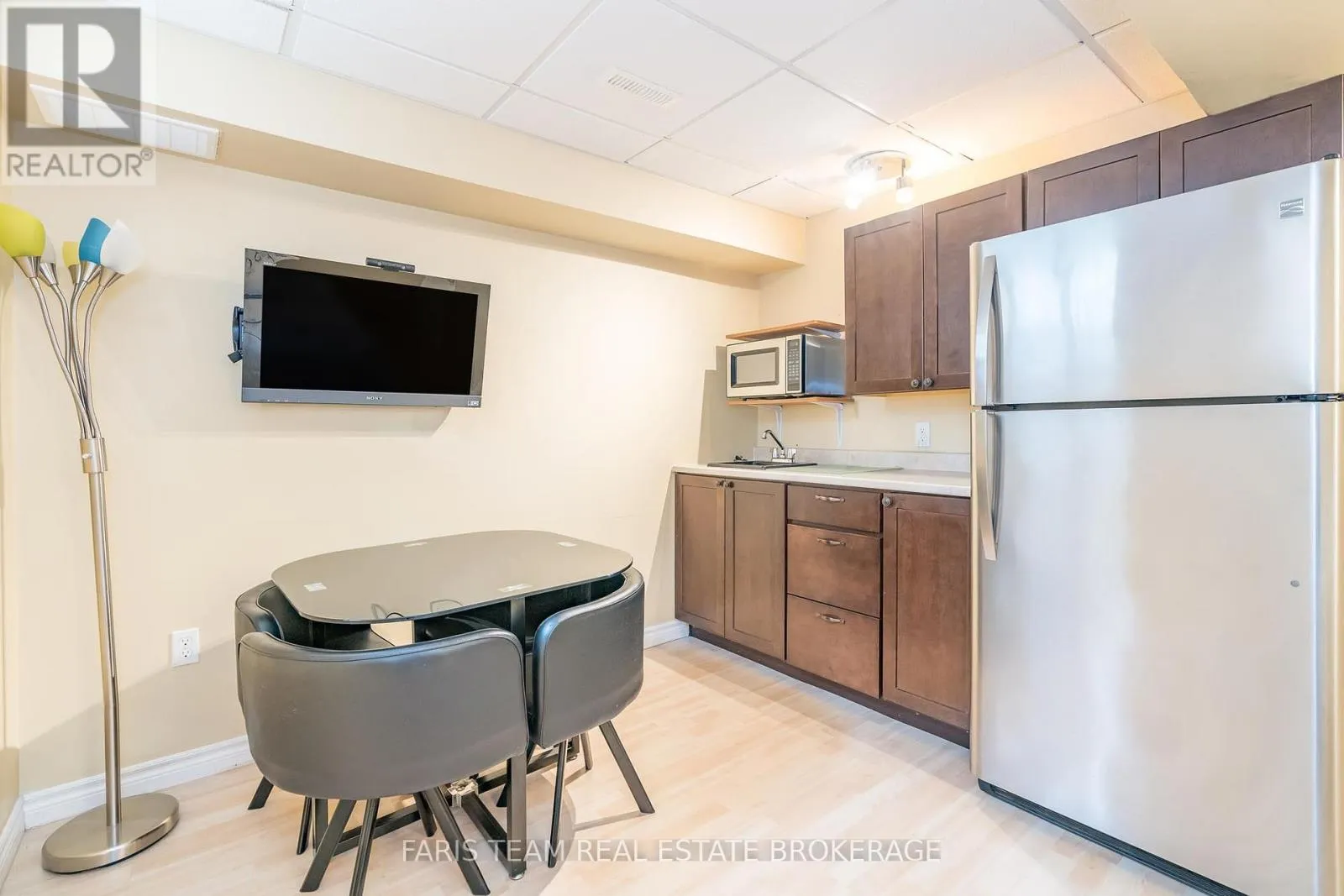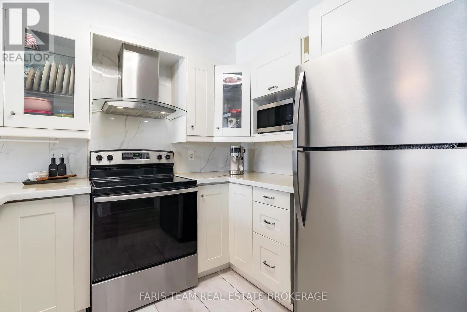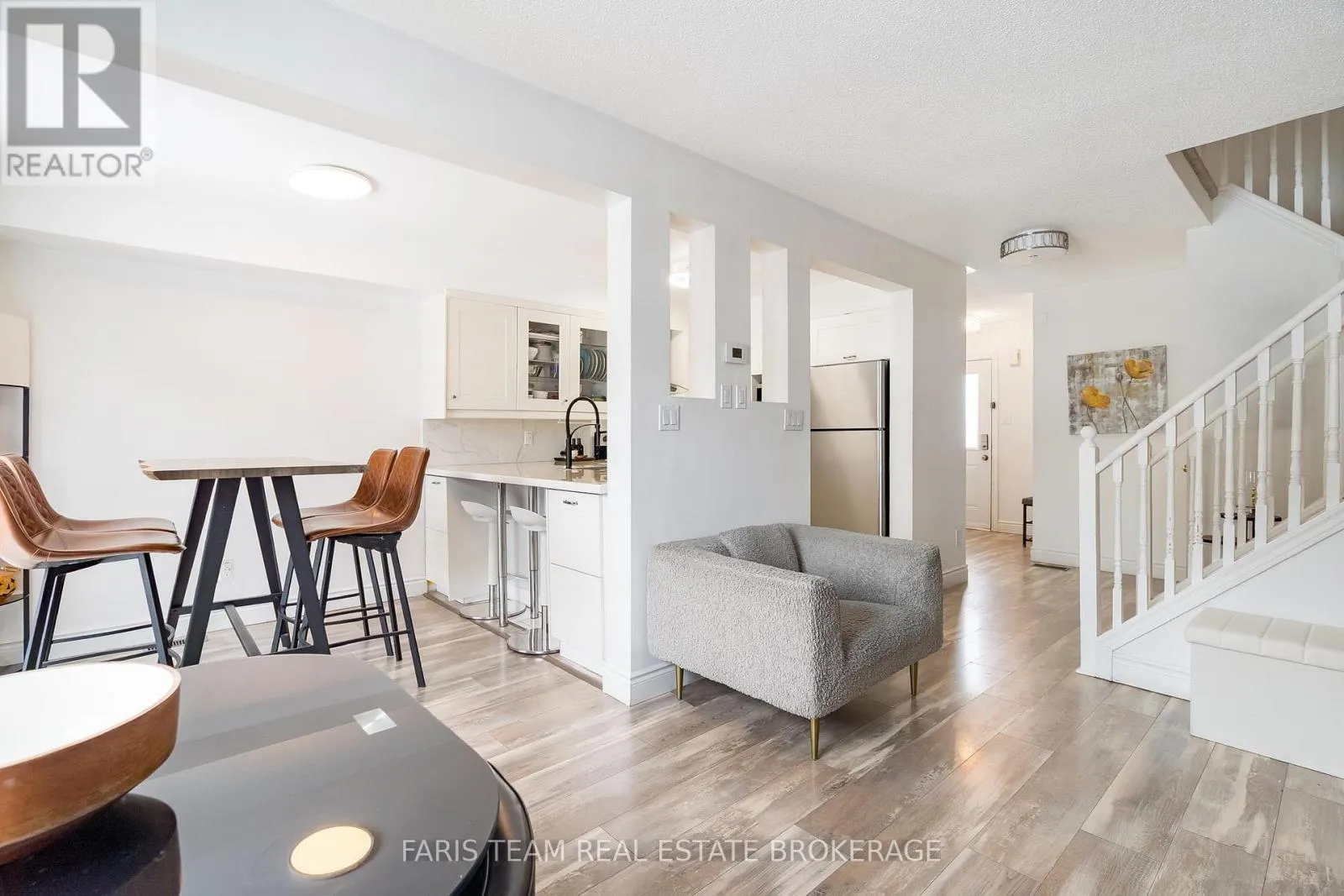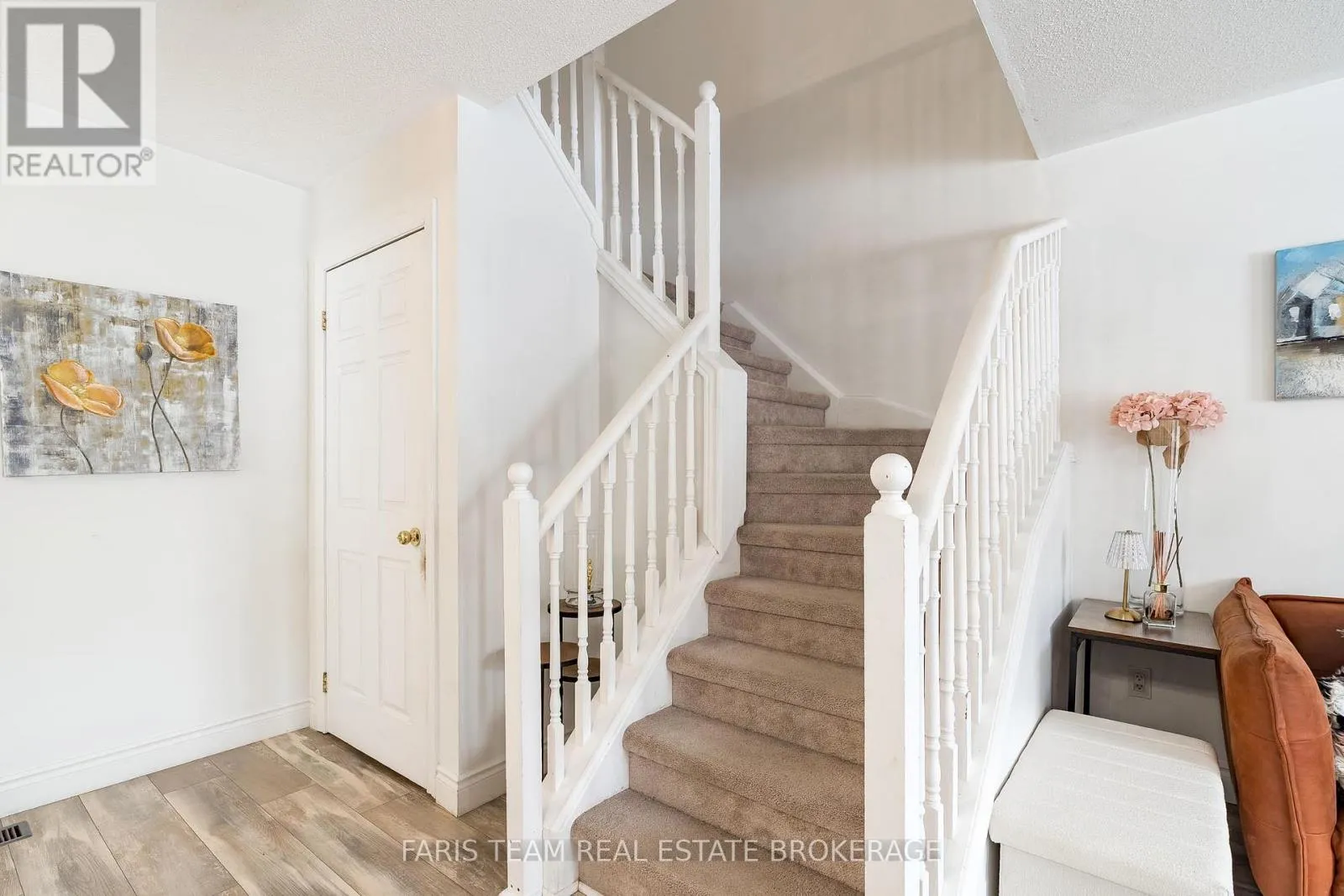 Livingstone St E/Stanley St Top 5 Reasons You Will Love This Home: 1) Ideally located directly across from East Bayfield Arena, offering access to an indoor pool, skating rink, gym, and more, and within walking distance to two highly rated public and Catholic schools, as well as a large park complete with a basketball court, ball diamond, and plenty of greenspace 2) Mindful updates throughout include a newer furnace and air conditioner (2020), updated flooring, and most windows replaced (2020), providing added comfort and peace of mind 3) Main level featuring a convenient powder room, a cozy gas fireplace, and an inside entry from the garage with direct access to the basement, while the upper level offers three generously sized bedrooms, including a primary retreat with a walk-in closet and semi-ensuite access 4) Step outside to a fully fenced backyard with a deck, creating a private setting for outdoor relaxation, summer barbeques, and outdoor entertaining 5) The finished basement adds excellent versatility with a kitchenette, a recreation room currently being used as a bedroom, and a full bathroom, ideal for extended family, guests, or additional living space. 1,206 above grade sq.ft. plus a finished basement. (id:27476)