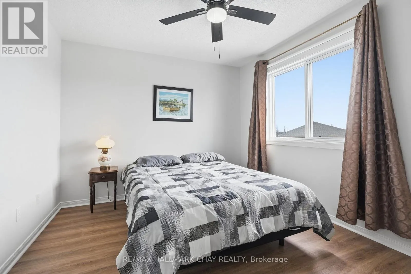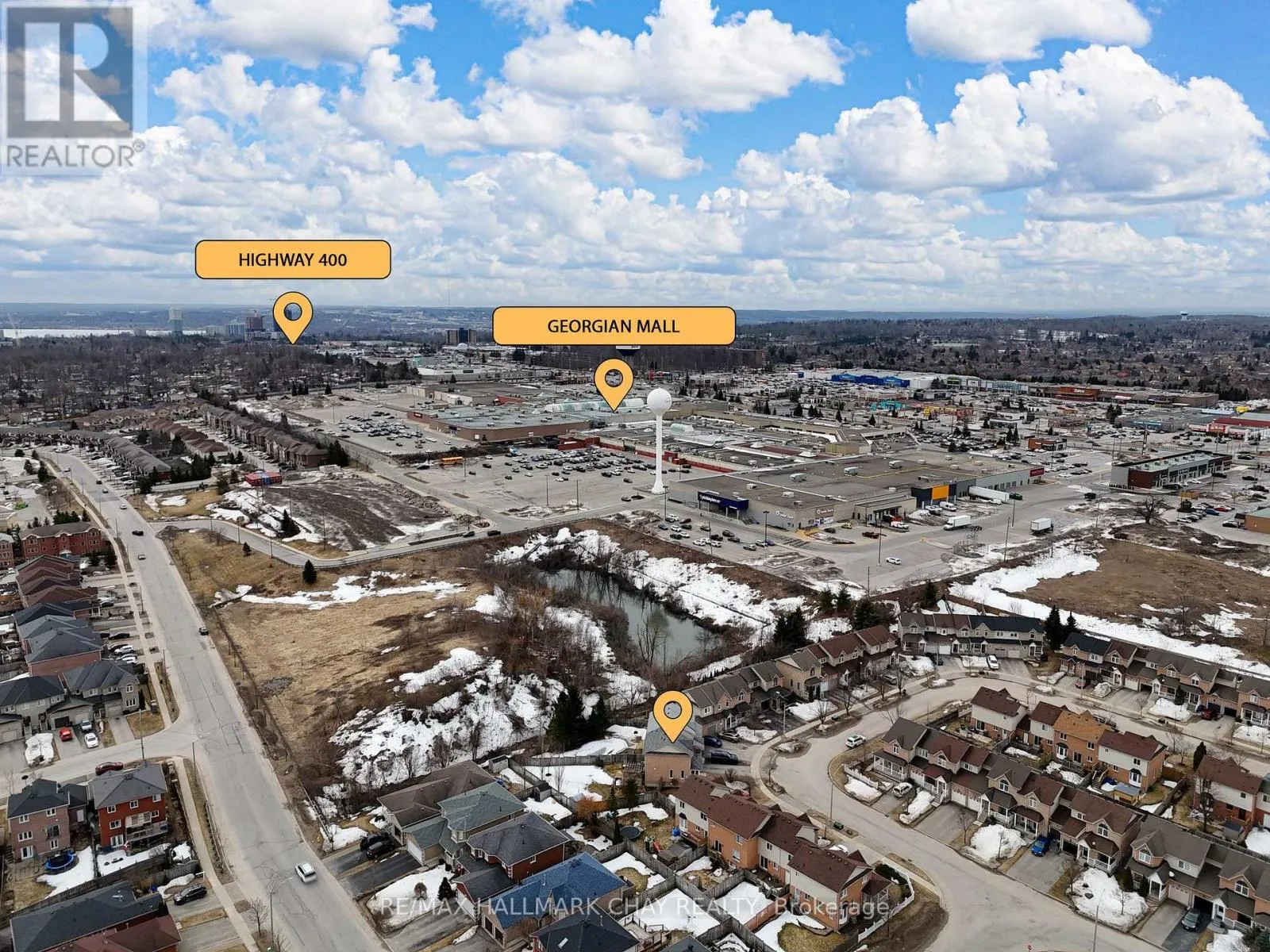Cross Streets: Bayfield St./ Hanmer St. E. ** Directions: HWY 400/ Bayfield St./ Hanmer St. E/ Stanley/Trevino Circ./ SOP. REMARKABLE END-UNIT TOWNHOME TUCKED AWAY ON A QUIET, NO-THROUGH-TRAFFIC STREET IN ONE OF BARRIE'S MOST FAMILY-FRIENDLY NEIGHBOURHOODS. Situated on a generous pie-shaped lot, this home offers exceptional outdoor space and privacy. The fully fenced backyard, surrounded by mature trees, creates a private retreat-perfect for relaxing or entertaining on the spacious deck with pergola during warm summer evenings. Inside, the home features a bright and functional layout with hardwood flooring in the living room, a cozy natural gas fireplace, and an inviting atmosphere throughout. The kitchen is equipped with updated appliances, double sink and a reverse osmosis water system. Major updates provide peace of mind, including A/C (2024), furnace (2023), windows (2023), & roof (2016). The home also offers inside garage entry and a standout feature, rare 9-foot basement ceilings with a bathroom rough-in, giving you incredible potential to create additional living space. Ideally located close to East Bayfield Community Centre, Schools & Parks. Don't miss your chance to own this rare find, delivering both space and privacy you wouldn't expect from a townhome! (id:27476)