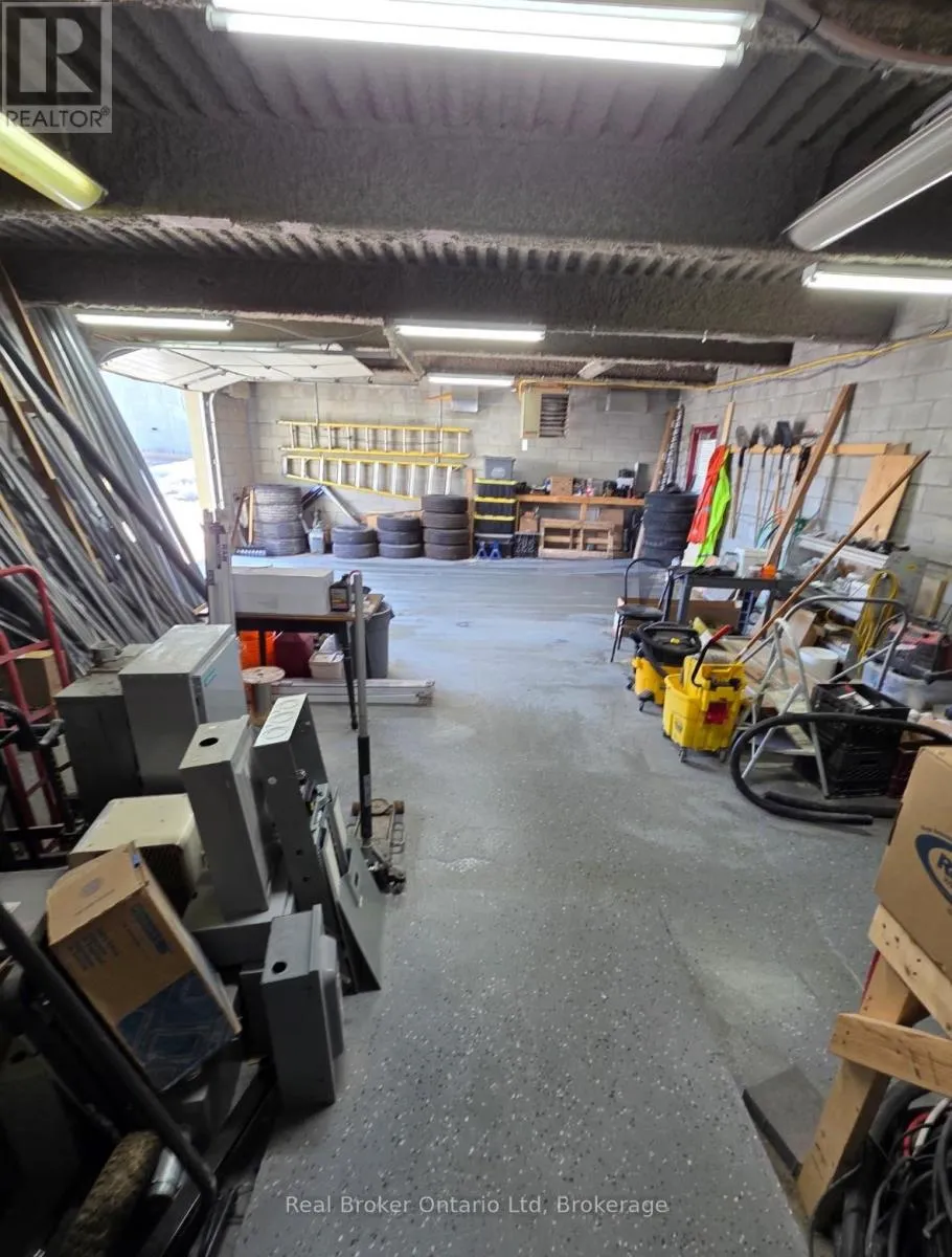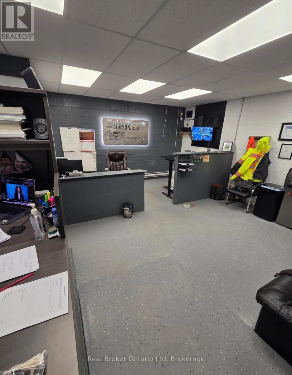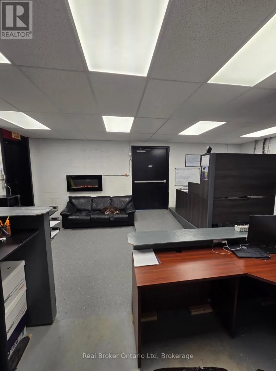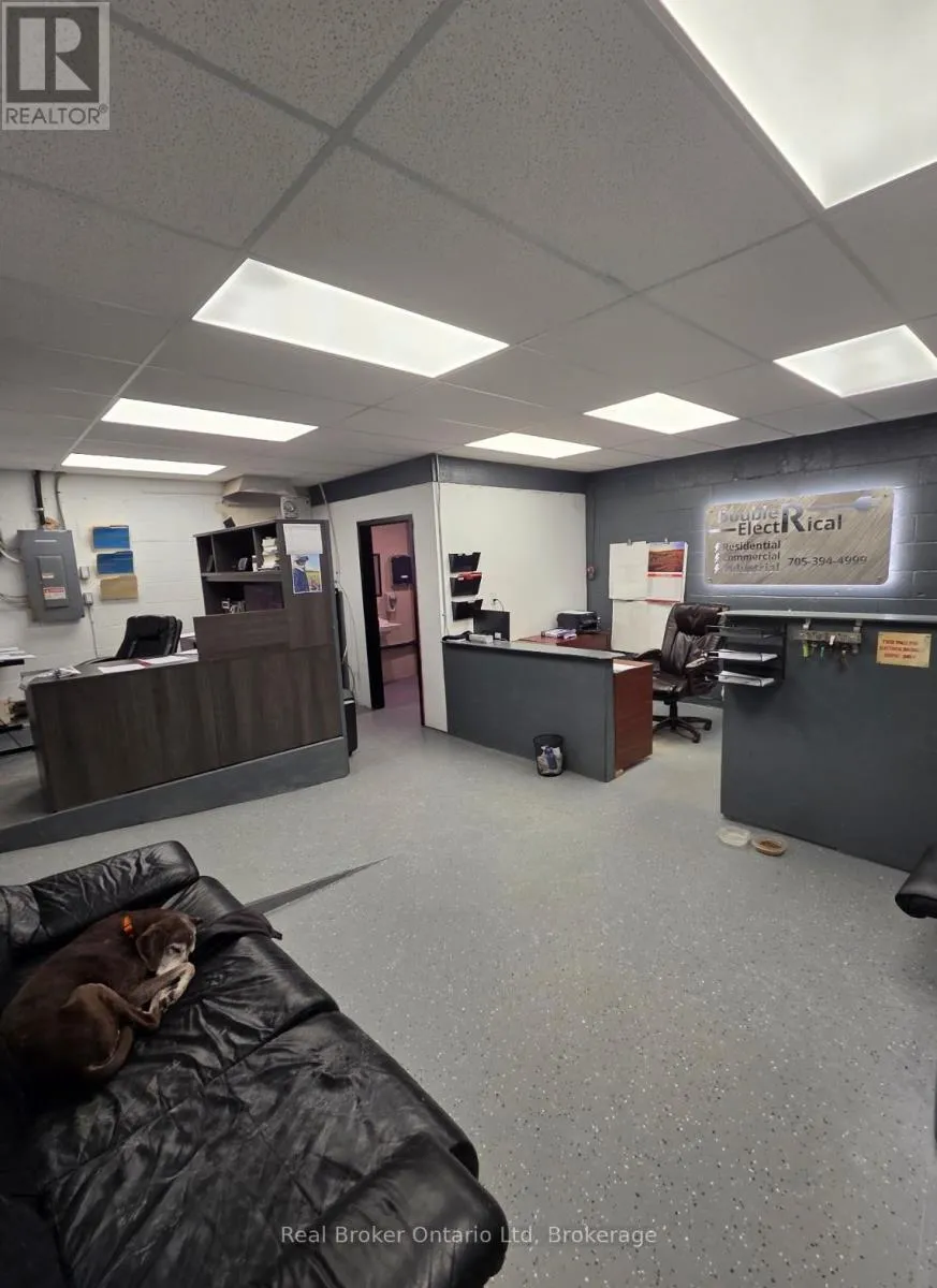 Anne Street & Dunlop Street This is the kind of space that grows with you. Offering 1,400 sq ft of total space, this versatile commercial unit is ideal for both new and expanding businesses looking for functionality without compromise. The 456 sq ft office area is thoughtfully designed with a drop ceiling, updated LED lighting, and a 2-piece bathroom complete with a hand dryer - creating a clean, professional environment for day-to-day operations. The open garage space features high ceilings, durable cement flooring, and a large overhead door, comfortably fitting a full-size 4-door Dodge Ram 2500 pickup. Equipped with 200 Amp (3-208-120V) electrical service, electric baseboard heating in the office and bath, plus natural gas forced-air heating in the garage, this space is built to perform. With average hydro around $250/month, it offers both efficiency and practicality - a rare opportunity for a business ready to level up. (id:27476)
