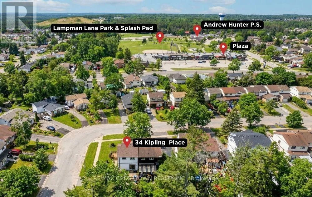 Cross Streets: Leacock and Letitia. ** Directions: Letitia St to Frost Tr to Kipling. Welcome to 34 Kipling Place in Barrie, a fantastic opportunity for first-time buyers, renovators, and investors looking to unlock potential in a desirable, family-friendly neighbourhood. Situated on a large, fully fenced corner lot, this semi-detached home offers incredible value with room to grow, personalize, and add equity. Bright and inviting, the home features a functional layout with 3+2 bedrooms and 2 bathrooms, complemented by large windows that fill the space with natural light. The spacious lot provides plenty of outdoor potential, while the private driveway offers convenient parking for two vehicles. Major updates have already been taken care of, including a furnace (2021), shingles (2024), newer owned hot water heater, upgraded attic insulation, and a new fridge, giving peace of mind while you focus on adding your own finishing touches. Ideally located just steps to Lampman Lane Park and Community Centre, featuring a playground, splash pad, tennis courts, and skateboard park. Enjoy easy access to Lampman Plaza, schools, RVH, public and GO transit, Highway 400, and all essential amenities. A rare chance to get into the market or invest in a high-demand area with strong upside. (id:27476)