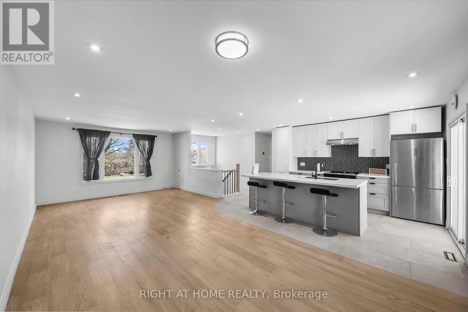 Cross Streets: Heather\\ Kozlov\\Bayfield. ** Directions: Bayfield St to Heather St to Sign. This beautifully updated, fully finished family home where modern design meets exceptional craftsmanship is situated in beautiful North Barrie just steps away from all conveniences. This bright, open-concept residence showcases premium finishes throughout, including sleek quartz countertops, stainless steel appliances, and high-end white oak hardwood flooring. The main level is filled with natural light thanks to large, newer energy efficient windows that offer clear sightlines from the front of the home straight through to the backyard. The gourmet kitchen seamlessly connects to the dining and living areas, creating an ideal space for everyday living and entertaining. Step outside to a spacious deck with a gas BBQ hook-up, overlooking a large, fully fenced backyard. The primary bedroom features a luxurious semi ensuite complete with modern porcelain tile and a double vanity. The lower level offers a contemporary family room with oversized windows, a striking stone feature wall, and a stunning 50" linear gas fireplace. A convenient on grade walkout through the laundry room leads directly to the deep 1.5 car garage. This home has been extensively upgraded for long-term comfort and peace of mind, including: Lifetime premium steel roof, Modern board and batten exterior front, Upgraded electrical with new panel, New high efficiency furnace and A/C, (2022) Attic insulation topped up (2018), new water softener (2022), new garage door (2021) and opener (2022) Updated central vacuum lines, Natural stone front steps and newly paved asphalt driveway (2024) with ample parking. Move-in ready and meticulously maintained, this turn-key property offers modern family living at its finest. (id:27476)