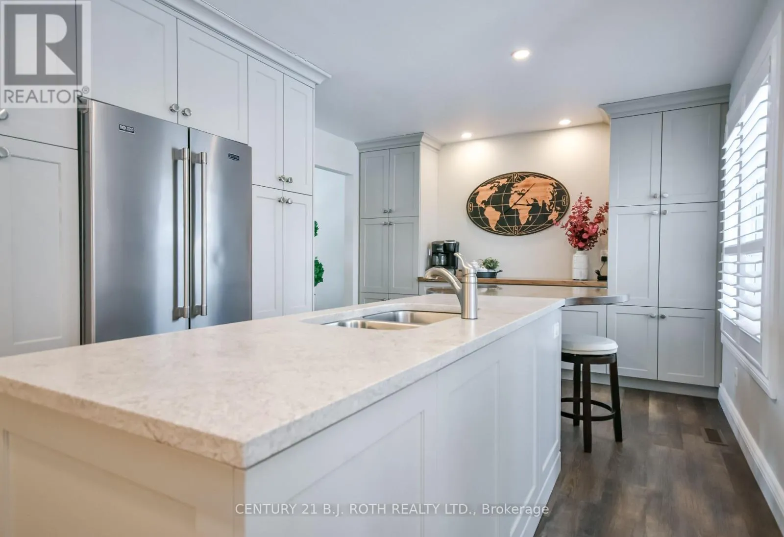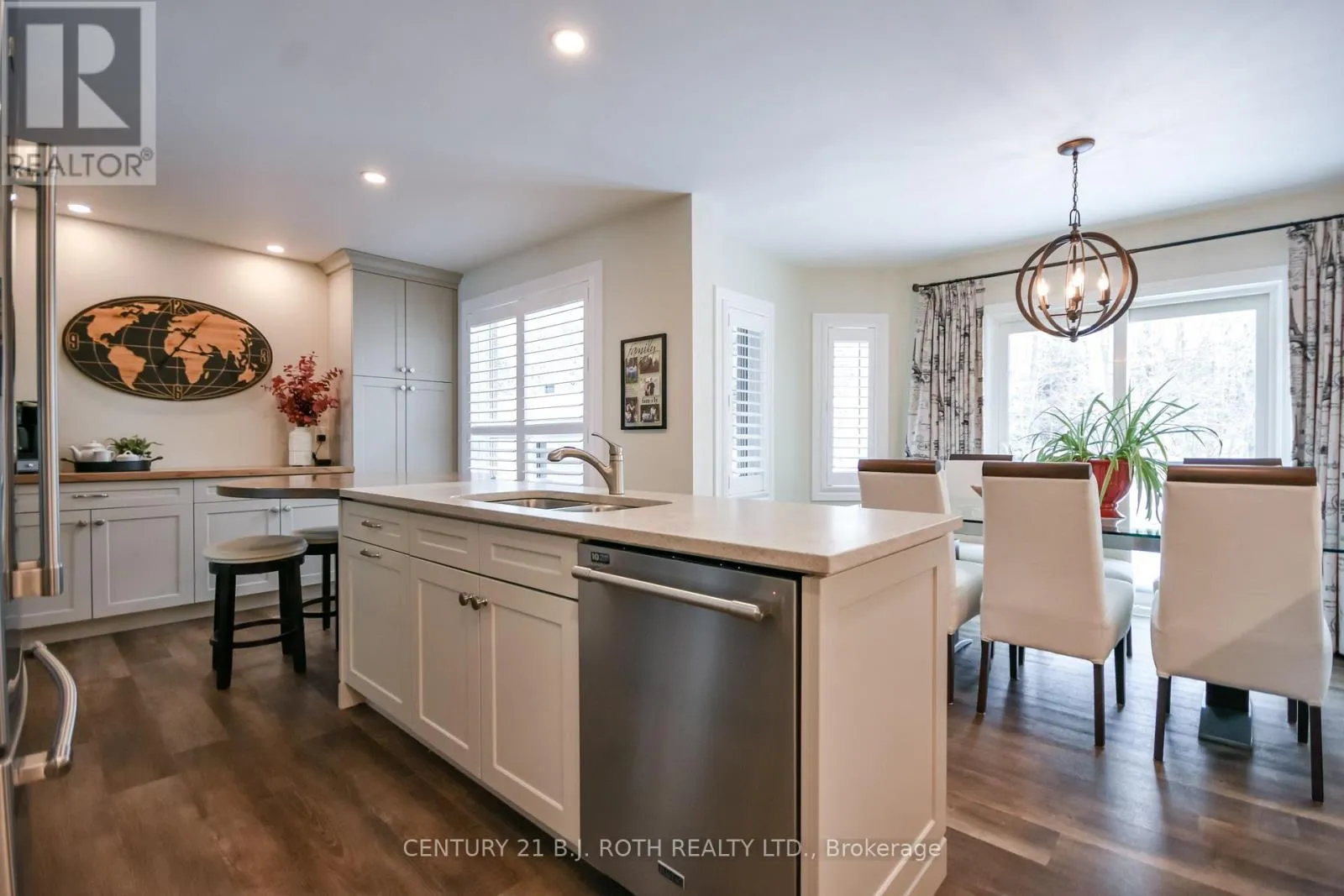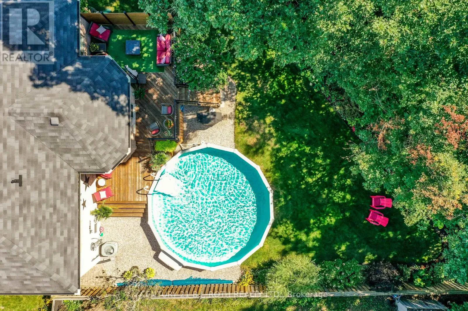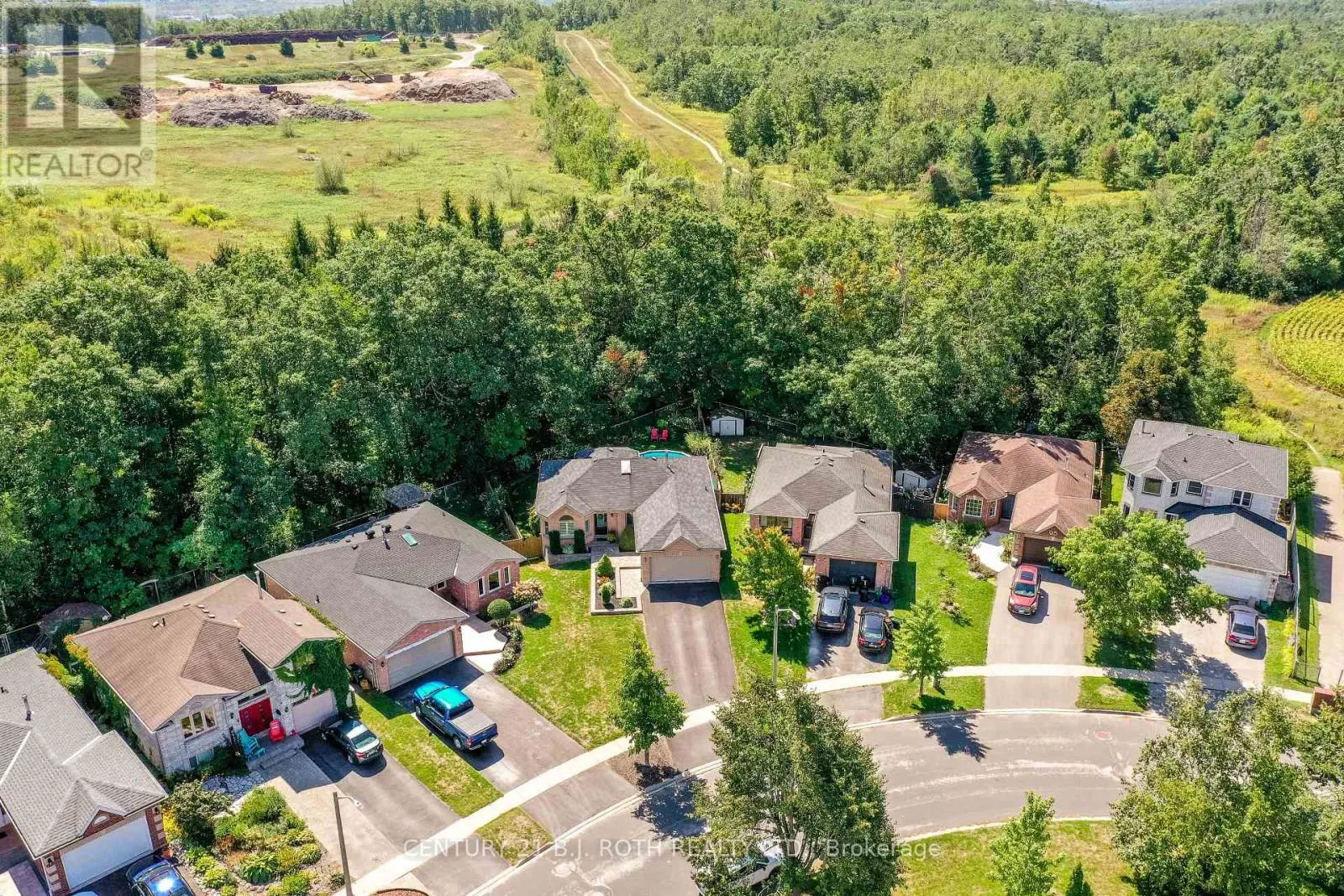 Cross Streets: Ferndale Drive. ** Directions: Ferndale Drive to Benson Drive. Welcome to 91 Benson Drive, an impeccably updated 3-bedroom bungalow set on a stunning, private, landscaped lot with no neighbours behind! Nestled in a sought-after, family-friendly neighbourhood in Barrie, this home is within walking distance to highly regarded schools and offers easy highway access for commuters. Lovingly maintained and presented in pristine condition, this home welcomes you with a bright foyer that opens into a spacious, light-filled living room. At the heart of the home is a professionally designed custom eat-in kitchen (2019), featuring a large island with quartz countertops, abundant cabinetry, a built-in custom table, and quality finishes throughout. The dining area offers a walkout to a newer custom deck overlooking the fully fenced backyard, backing onto peaceful green space and complete with an above-ground pool, perfect for relaxing or entertaining. The main level includes a generous primary bedroom with a private ensuite, along with two additional well-sized bedrooms and a stylish, updated 4-piece bathroom. Downstairs, the open-concept great room with a cozy fireplace provides the perfect space for family time or entertaining, along with a convenient 3-piece bathroom and a versatile murphy bed-ideal for guests or maximizing space. Extensive updates offer peace of mind, including furnace (2015), roof (2016), renovated lower bathroom (2017), and a full main floor and kitchen renovation (2019). Exterior upgrades include new eavestroughs, fascia, and leaf guards (2020), a new front door and garage doors (2021), and a beautifully updated ensuite (2021). Additional improvements include new windows and patio door (2022) and a new water softener (2022). This move-in-ready home seamlessly blends modern updates, thoughtful design, and exceptional value. (id:27476)