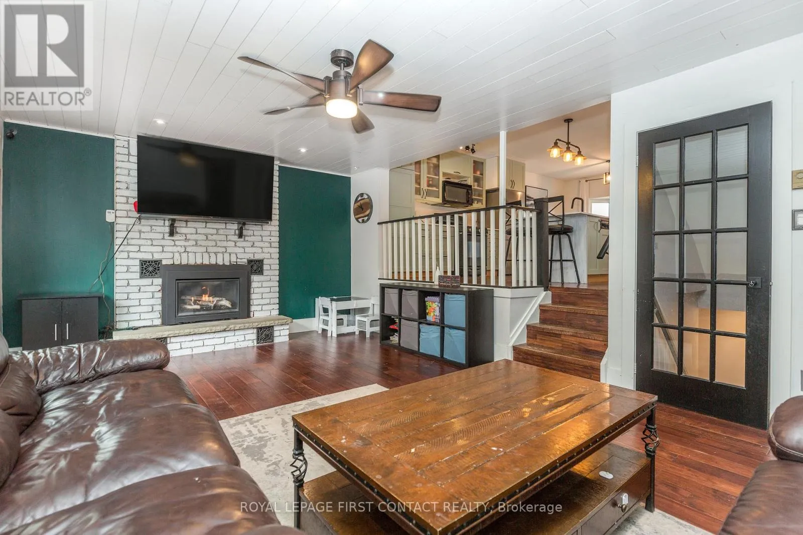 Huronia Road / Little Avenue Discover this gorgeous 4-level back-split, perfectly situated in Barrie's sought-after Allandale neighbourhood. Featuring four bedrooms and two bathrooms, this home offers abundant space for the whole family. Custom acacia hardwood floors flow throughout the main and lower levels, complementing the updated kitchen with an impressive quartz waterfall island ideal for cooking and entertaining. The living room opens to a private, fenced backyard with a stone patio and mature perennial gardens, a firepit and backing onto a tranquil ravine with no neighbors behind. Just steps from scenic walking trails and the natural beauty of Lackies Bush, this home blends privacy with lifestyle. Additional highlights include a main-floor laundry with direct access to a double-car garage and a rare six-car driveway. Conveniently located close to top schools, shopping, public transit, and with easy access to Hwy 400 for commuters and cottage-goers alike. Spacious, stylish, and ideally situated-this exceptional home is truly not to be missed! (id:27476)