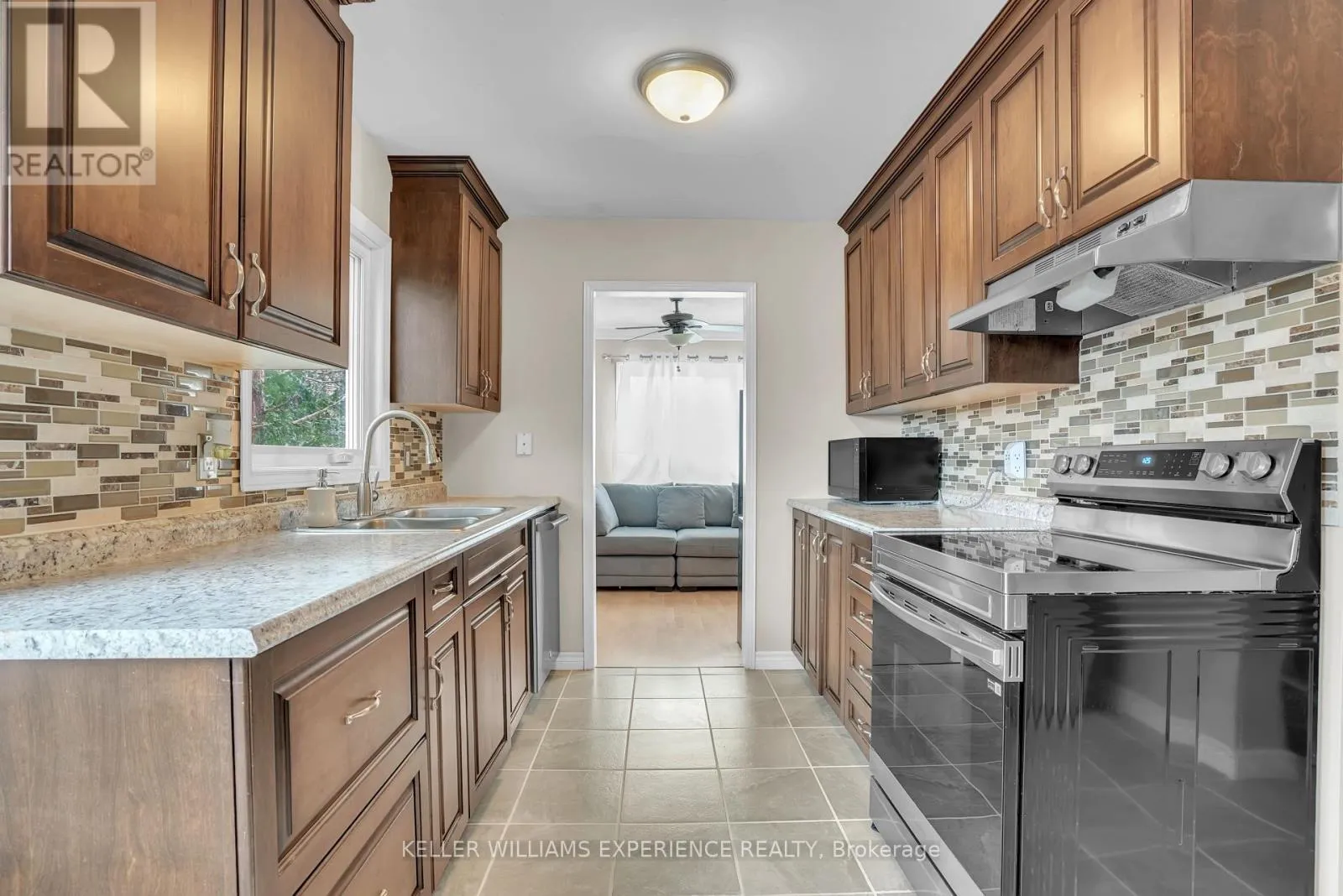Cross Streets: Cundles Road E / St. Vincent Street. ** Directions: Cundles Road E / St. Vincent Street / Cartwright Drive / Cardinal Street / Lindsay Court. Welcome to this turnkey home located in Barrie's desirable north end. This 3+1 bedroom property features a main floor with laminate flooring throughout, an eat-in kitchen, and a walkout to a fully fenced backyard. Convenient inside access from the garage adds everyday functionality. Upstairs offers three well-sized bedrooms and a 4-piece bathroom, providing comfortable space for families. The lower level includes a separate entrance and an in-law suite with a kitchenette-ideal for extended family or added income potential. The backyard is designed for easy enjoyment with a concrete patio, garden beds, and a fire pit. Conveniently located close to East Bayfield Community Centre, Georgian Mall, Highway 400, restaurants, and top rated schools. (id:27476)