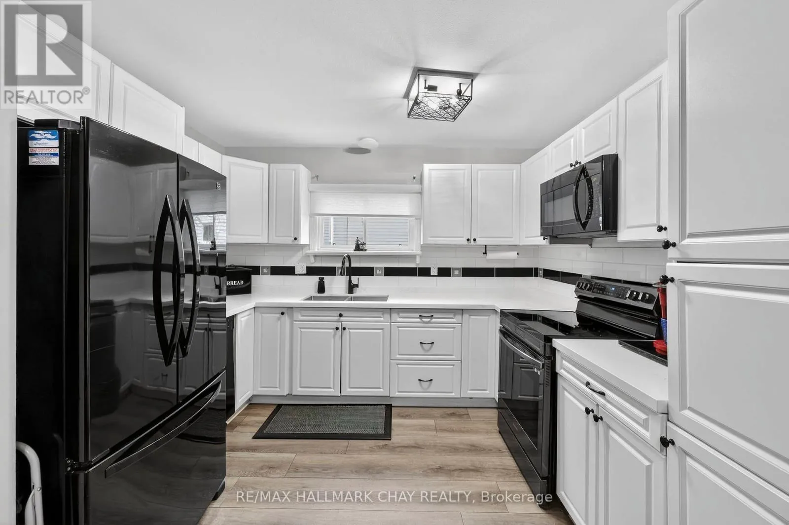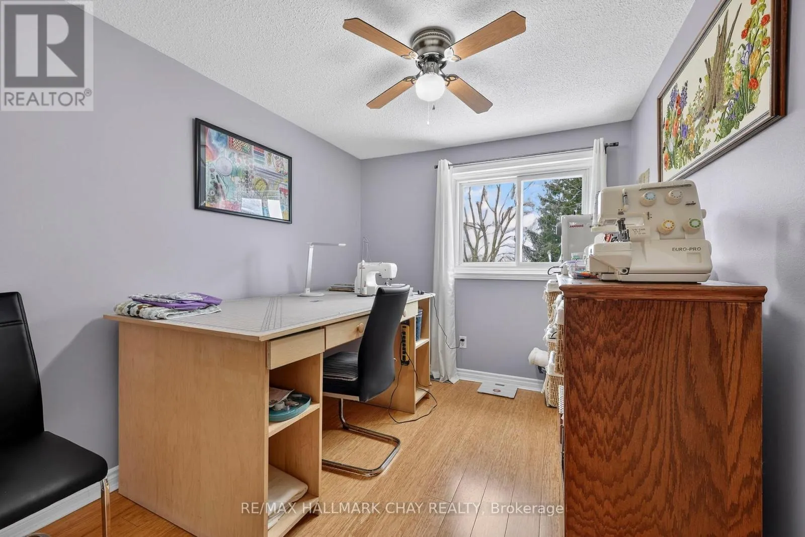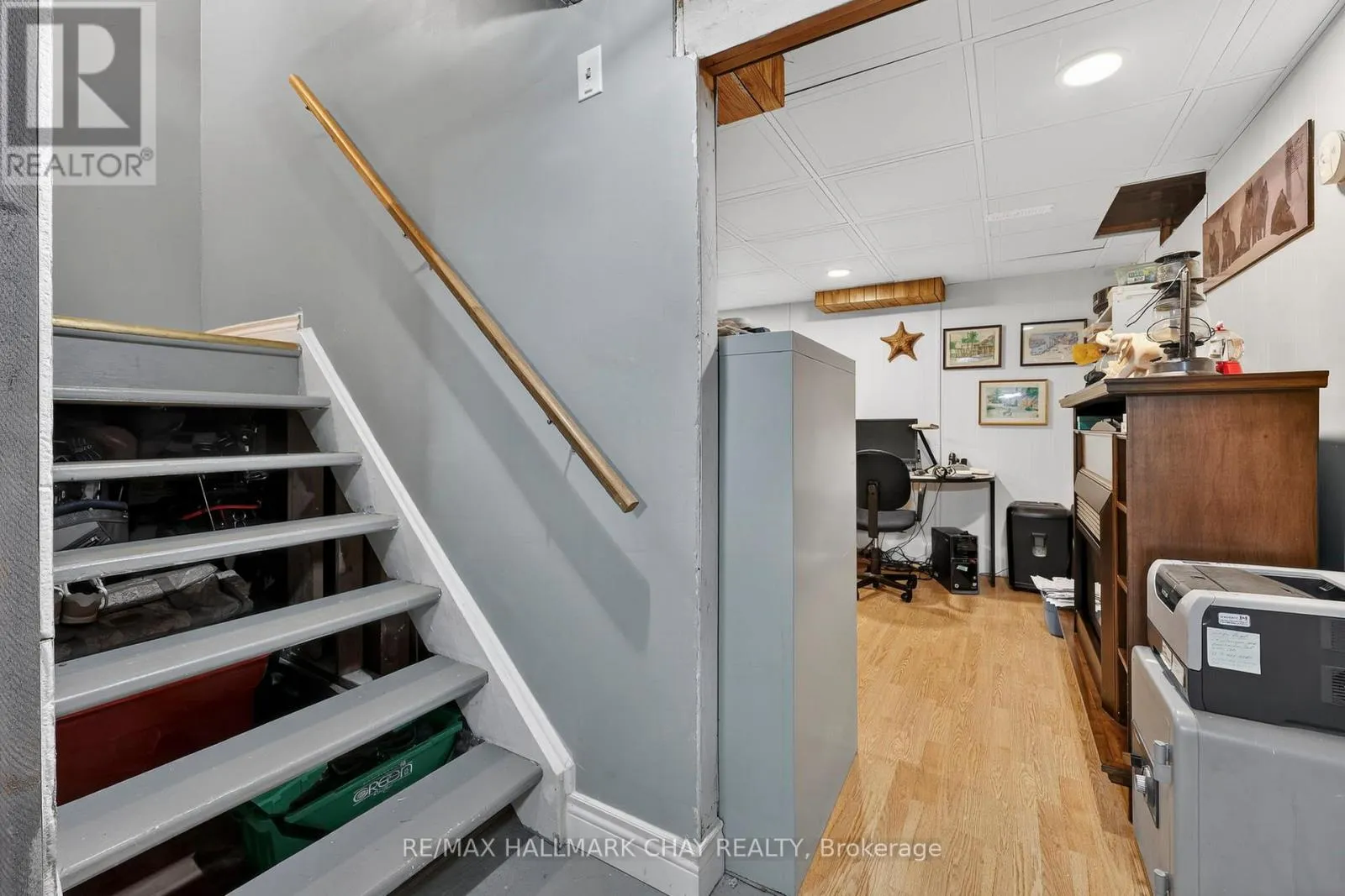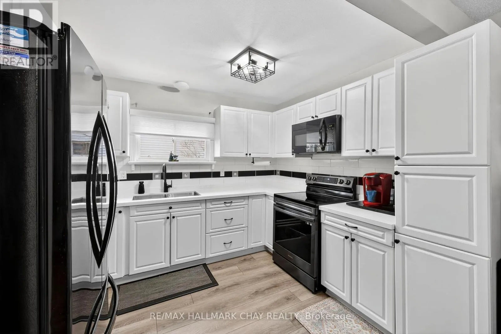 Cross Streets: Anne/Shelley. ** Directions: Anne/Shelley/Frost/Kippling/Wilde. The bright and inviting main floor of this semi-detached home is filled with natural light, creating a warm and welcoming atmosphere throughout. Enjoy peaceful moments in the covered screened porch-an ideal space to unwind, watch the birds, or gather with family for card and board games.The eat-in kitchen is both stylish and functional, featuring a quartz countertop and updated flooring. Upstairs, all bedrooms offer laminate hardwood flooring, providing a clean, carpet-free living environment.The basement adds versatility with ample storage space and a private office, which can easily be converted into a recreation or exercise room to suit your needs.Notable updates include air conditioning (2024), refrigerator (2022), and washer and dryer (2025), offering added comfort and peace of mind. (id:27476)