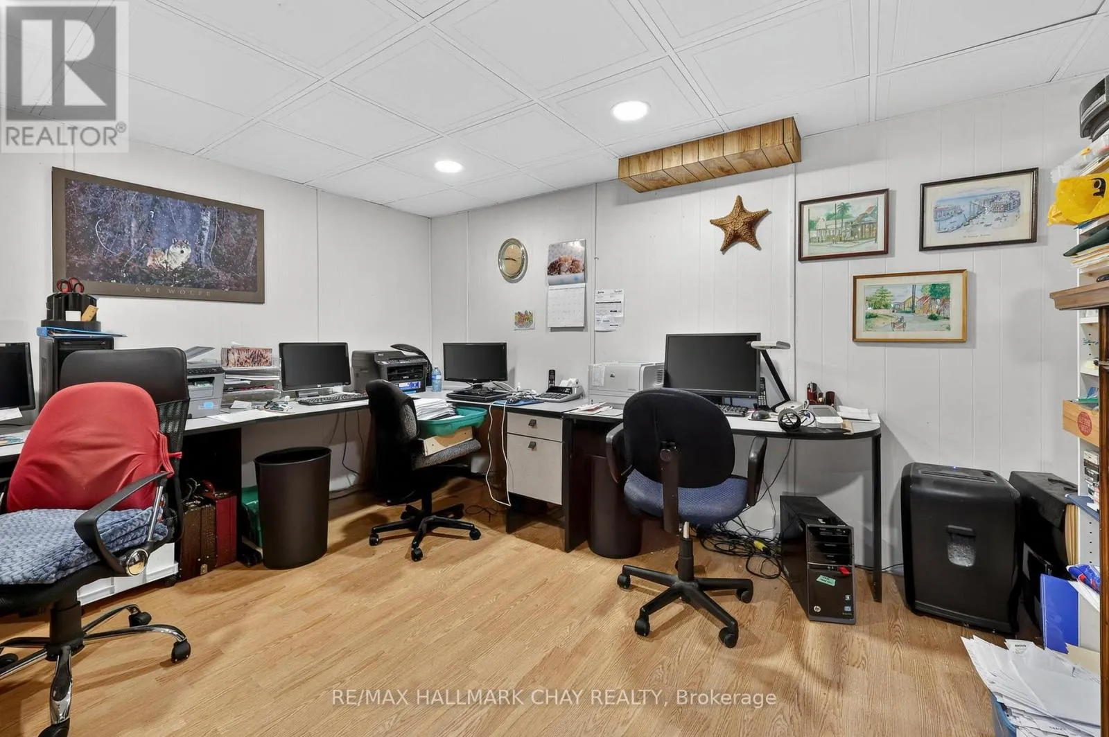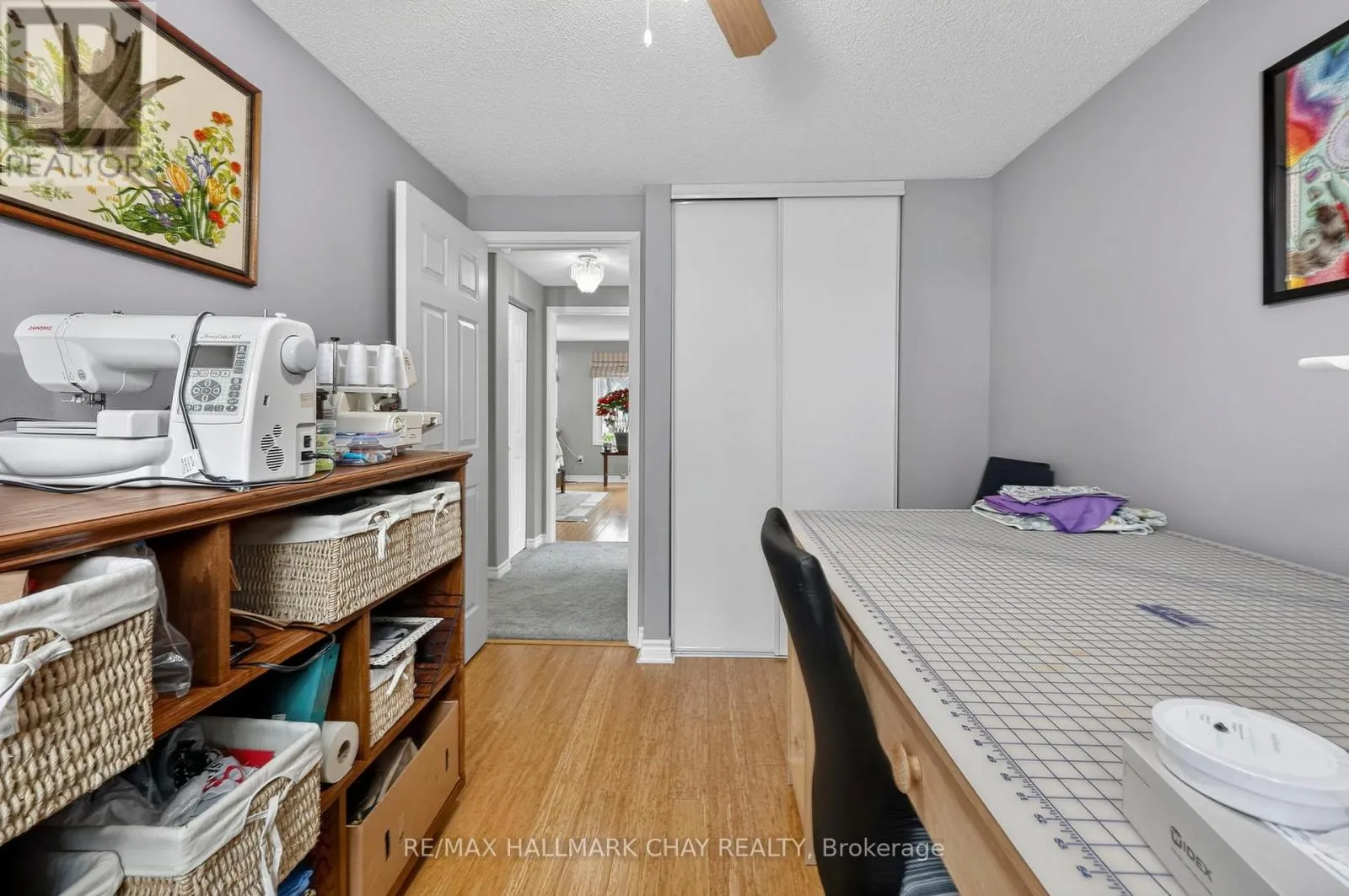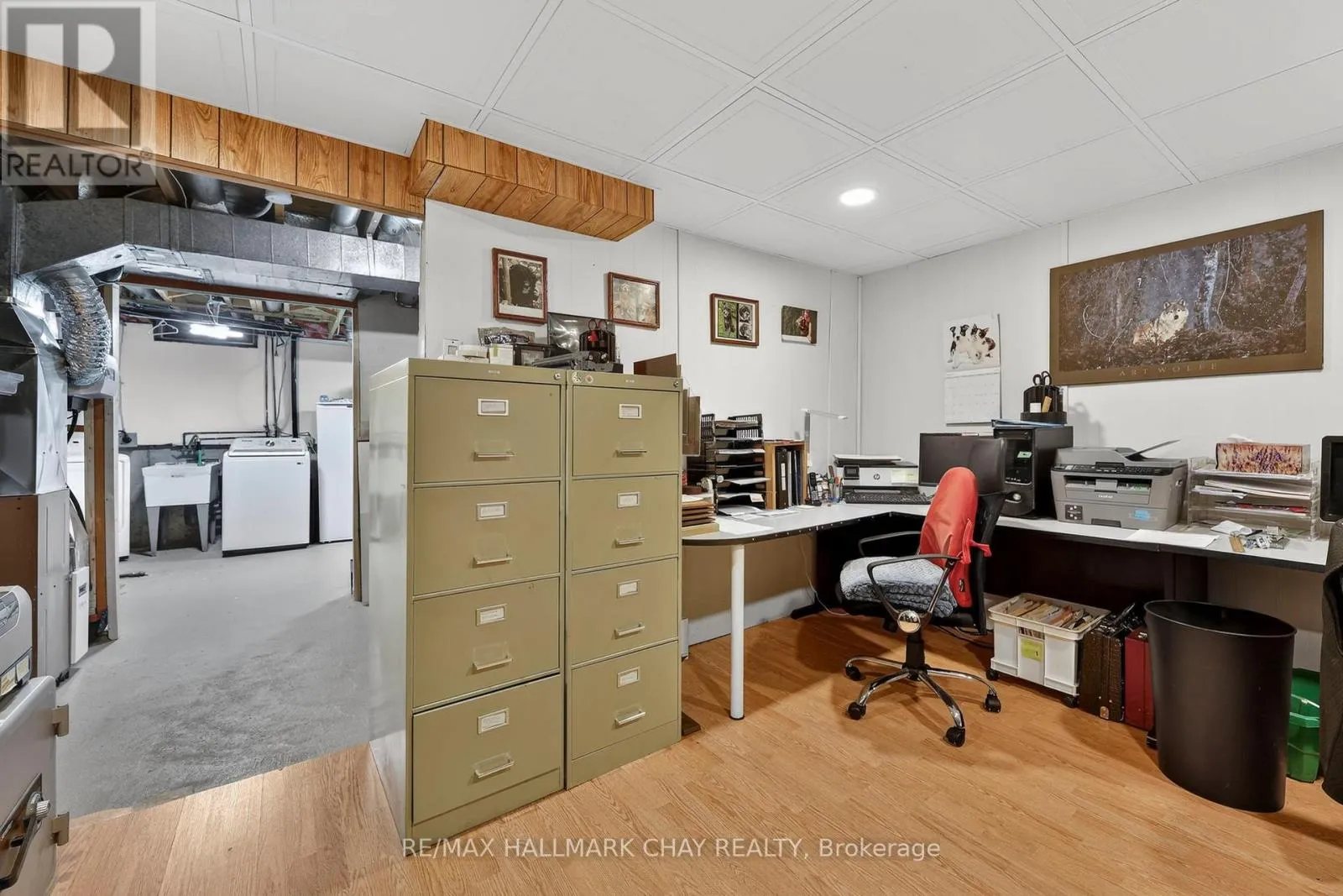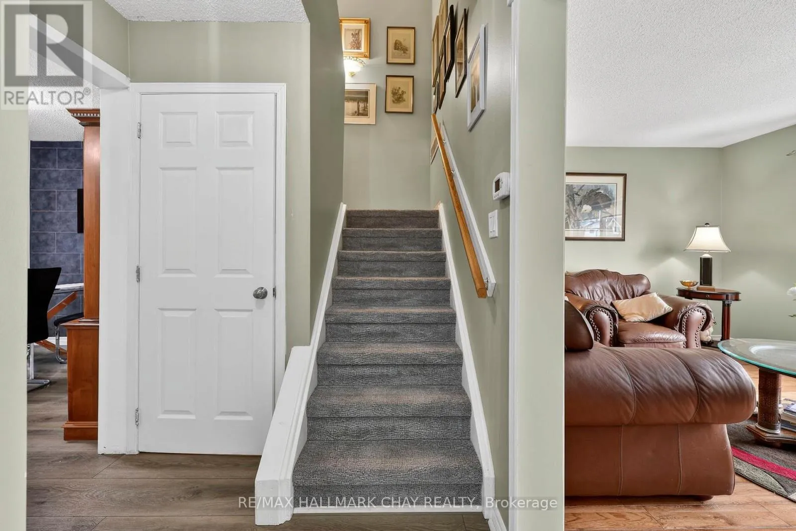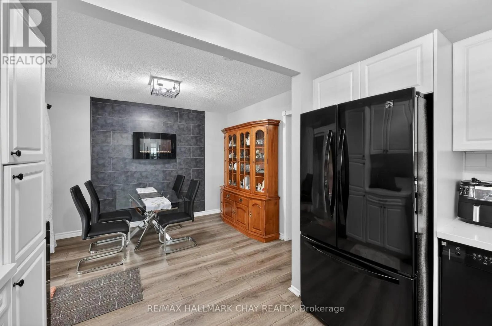 Cross Streets: Anne/Shelley. ** Directions: Anne/Shelley/Frost/Kippling/Wilde. The bright and inviting main floor of this semi-detached home is filled with natural light, creating a warm and welcoming atmosphere throughout. Enjoy peaceful moments in the covered screened porch-an ideal space to unwind, watch the birds, or gather with family for card and board games.The eat-in kitchen is both stylish and functional, featuring a quartz countertop and updated flooring. Upstairs, all bedrooms offer laminate hardwood flooring, providing a clean, carpet-free living environment.The basement adds versatility with ample storage space and a private office, which can easily be converted into a recreation or exercise room to suit your needs.Notable updates include air conditioning (2024), refrigerator (2022), and washer and dryer (2025), offering added comfort and peace of mind. (id:27476)